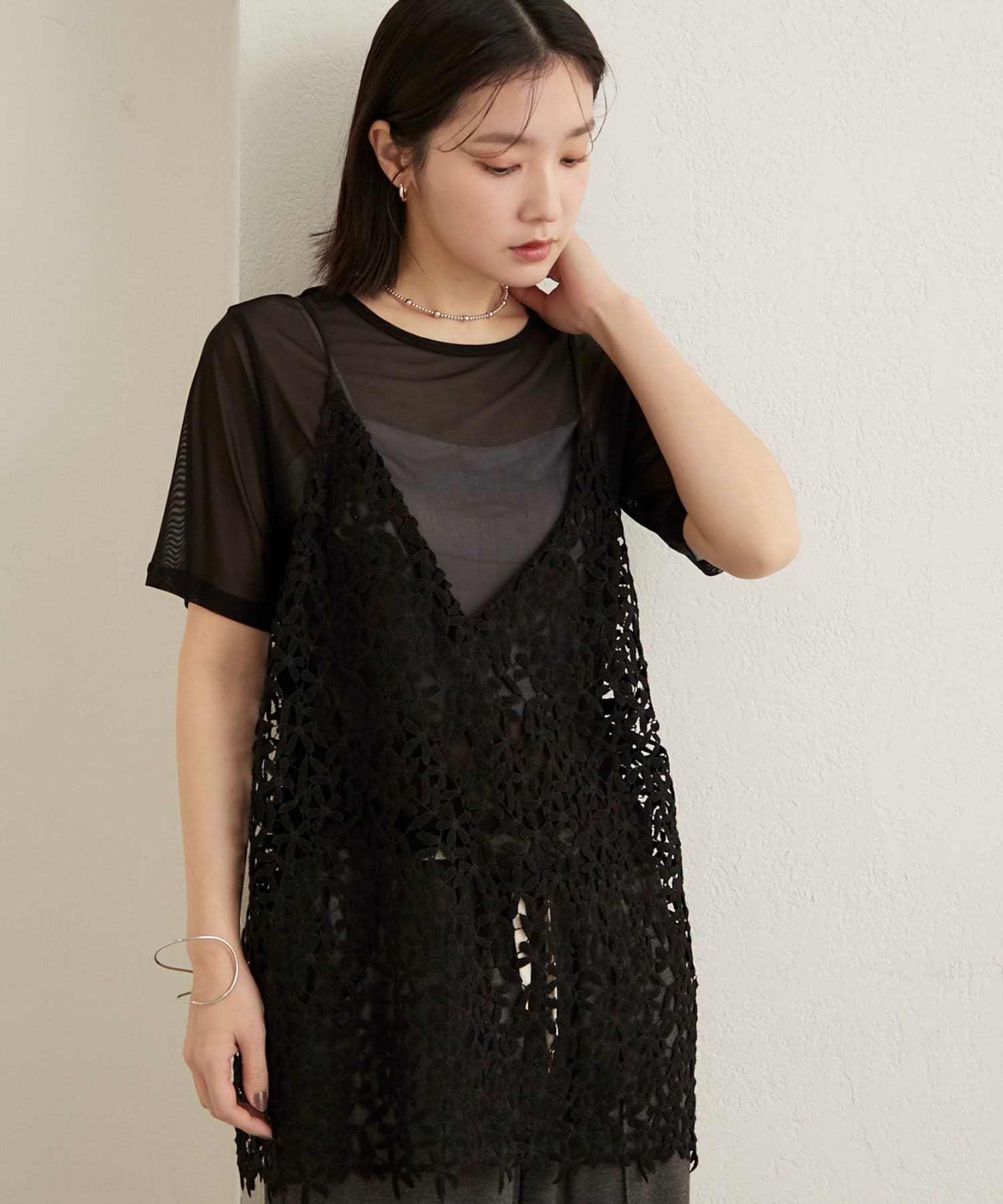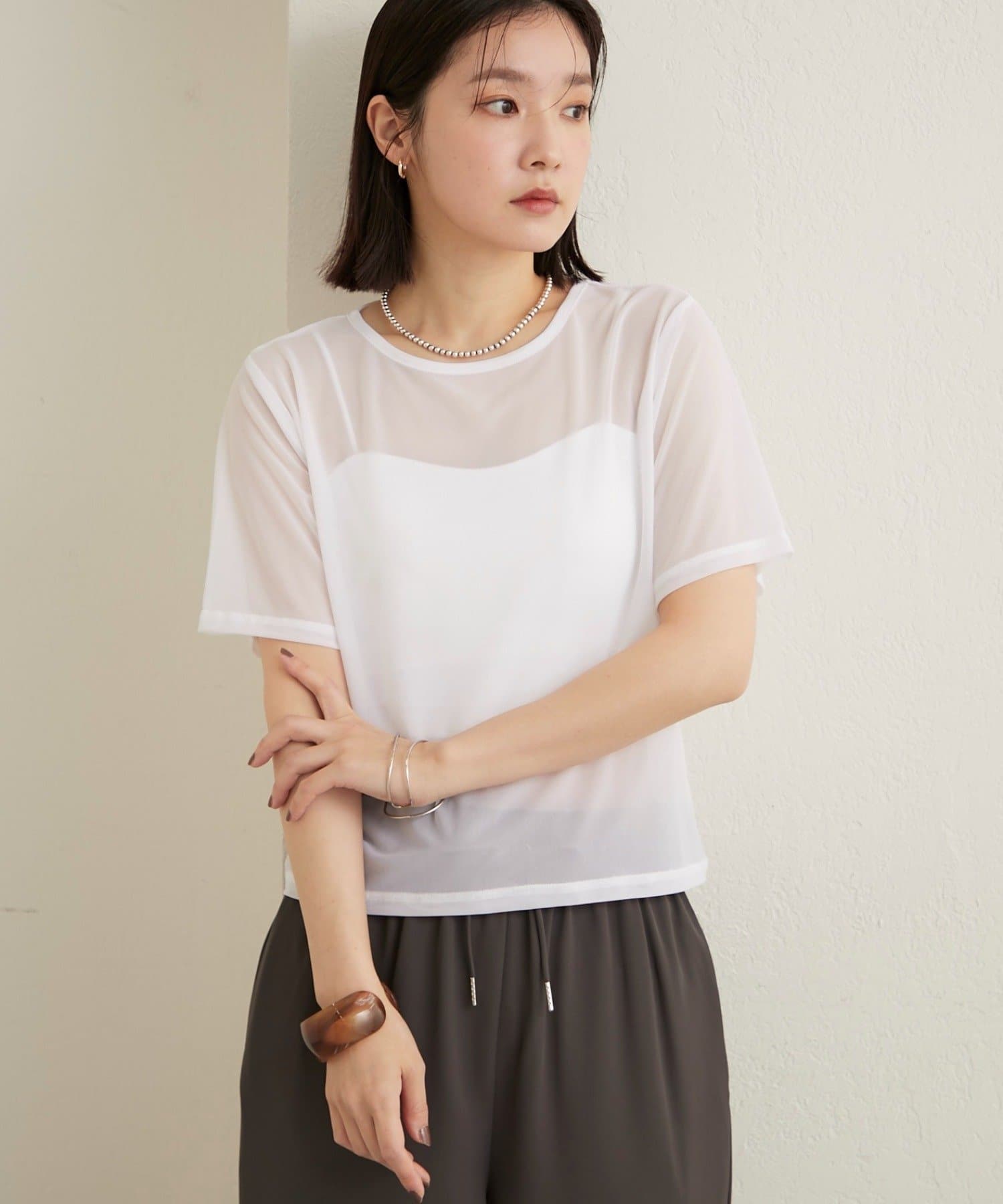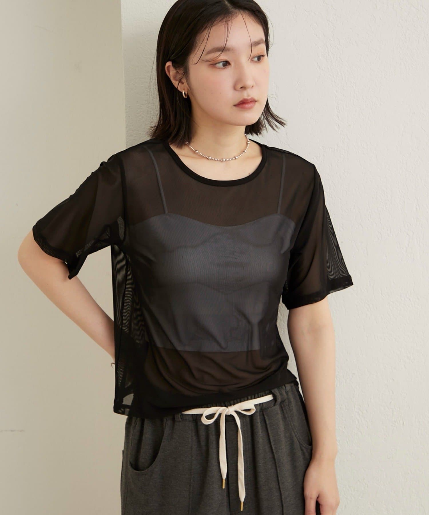・チュール素材が程よい透け具合で、抜け感のある着こなしが叶います◎