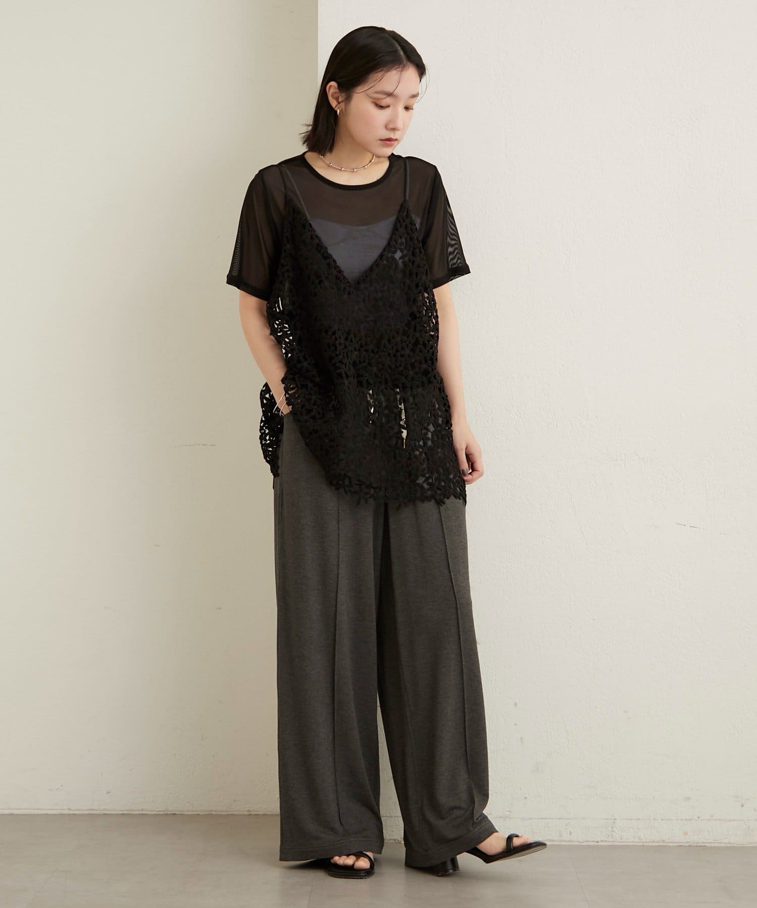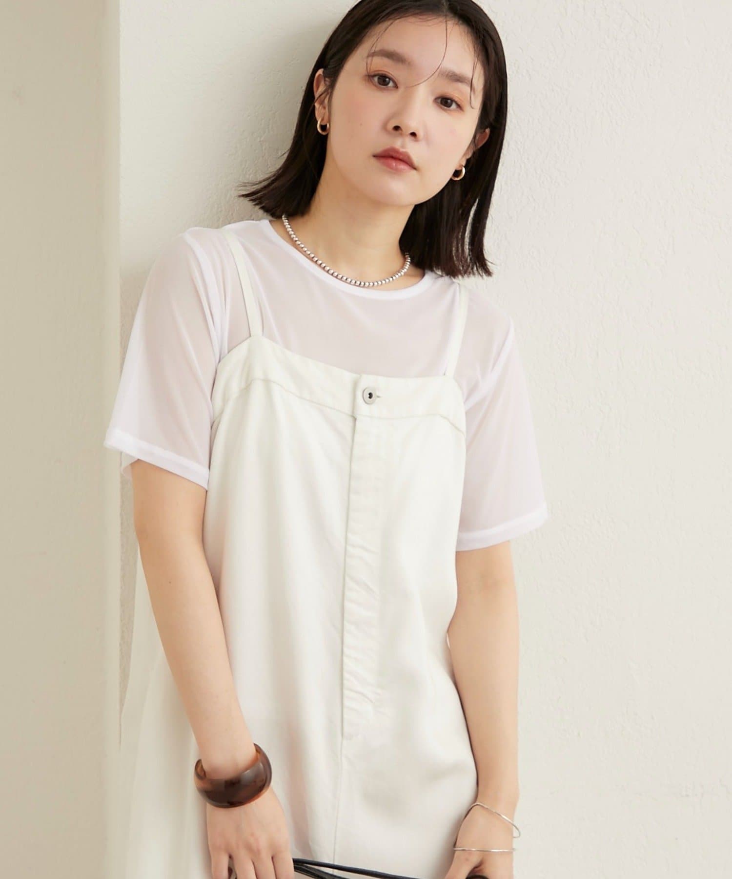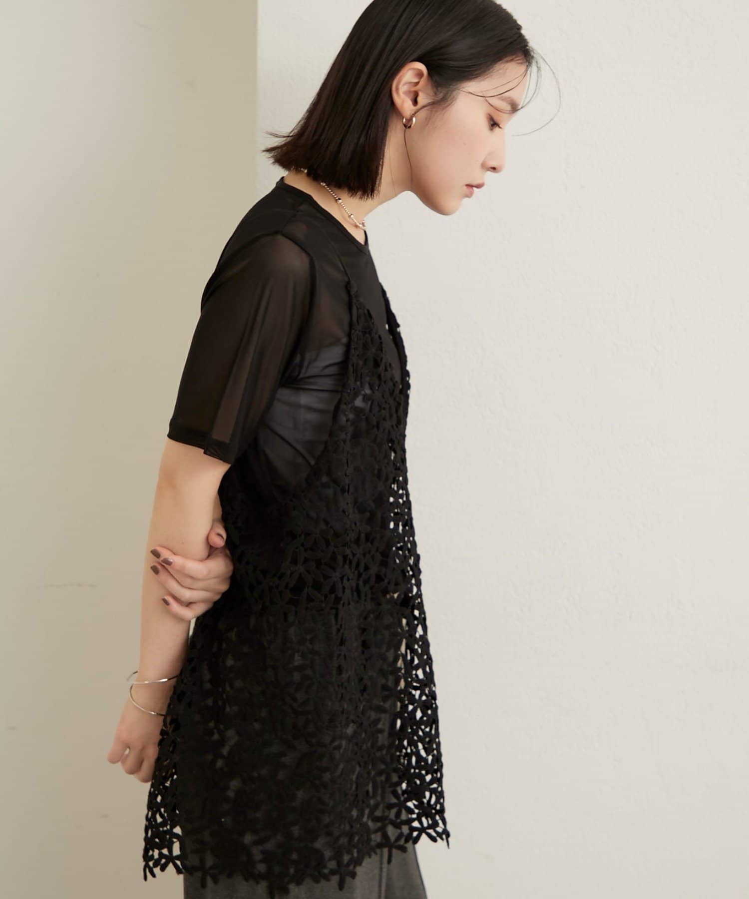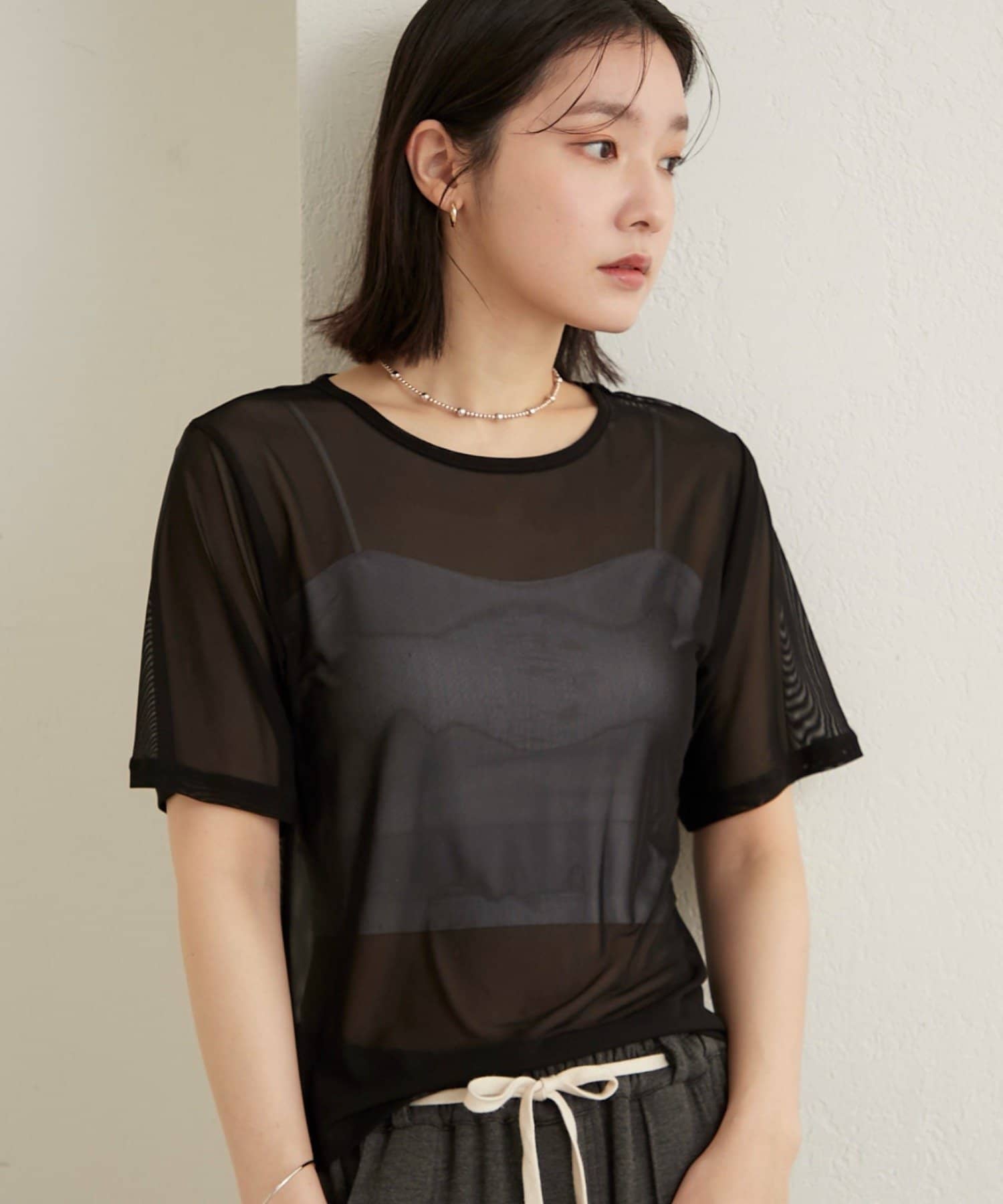・チュール素材が程よい透け具合で、抜け感のある着こなしが叶います◎