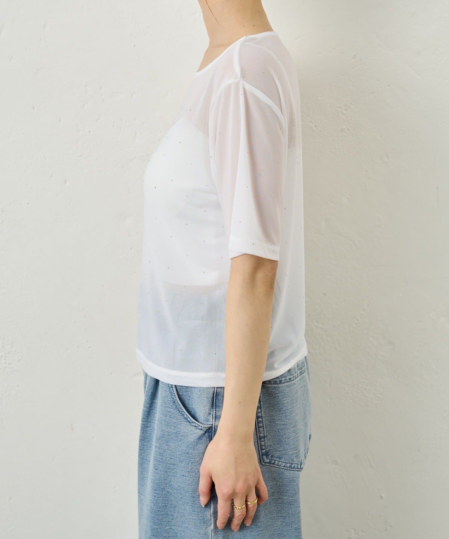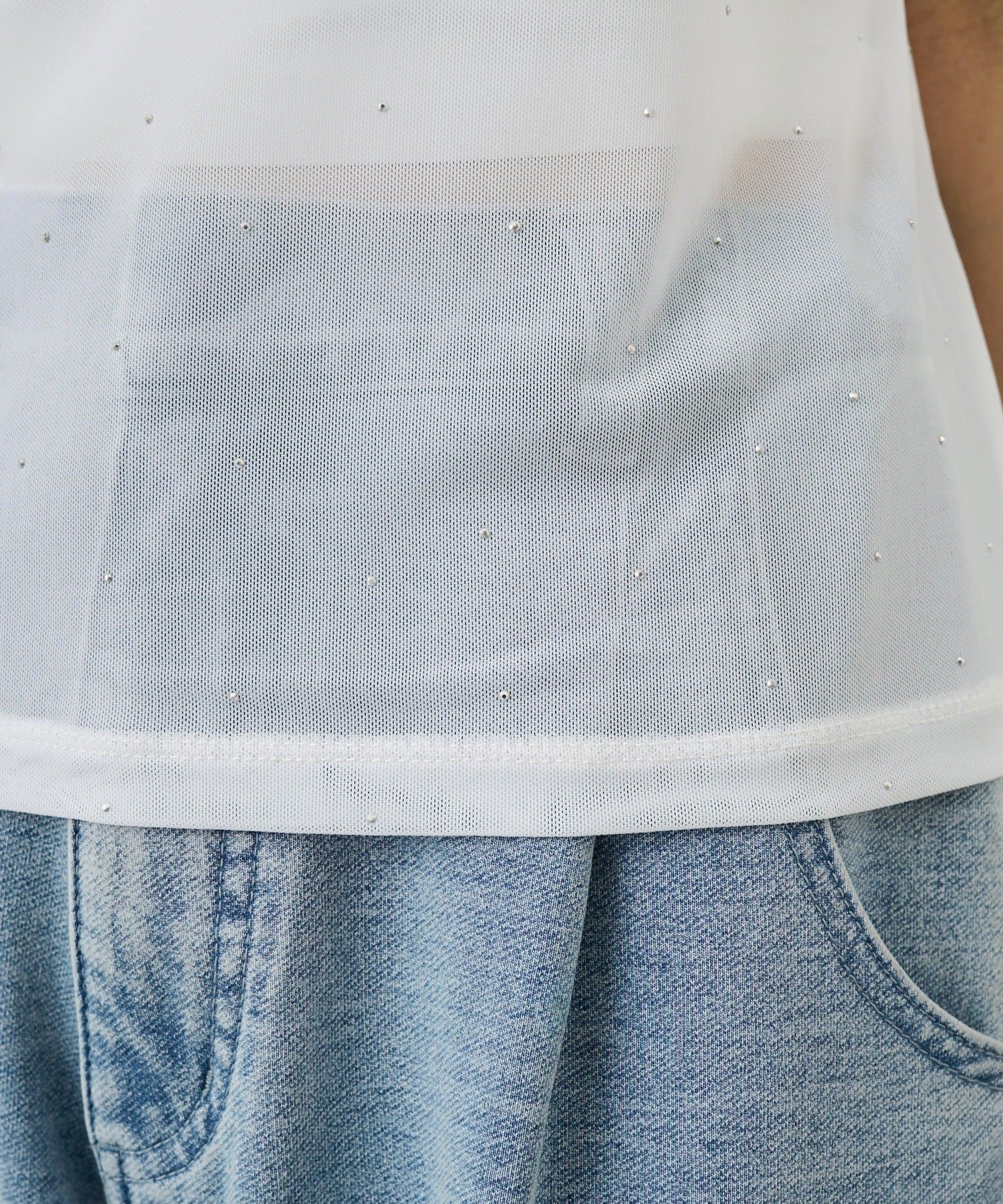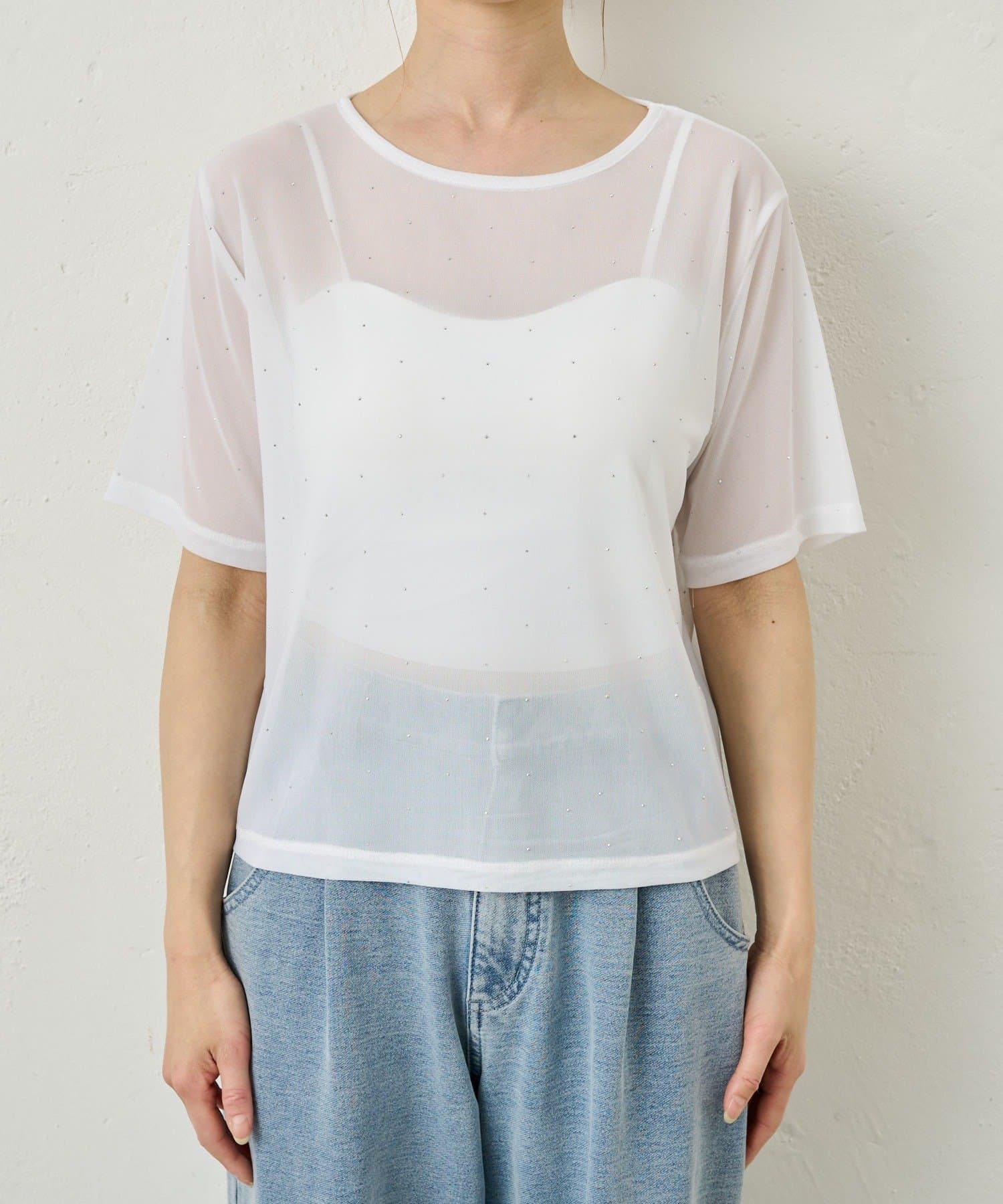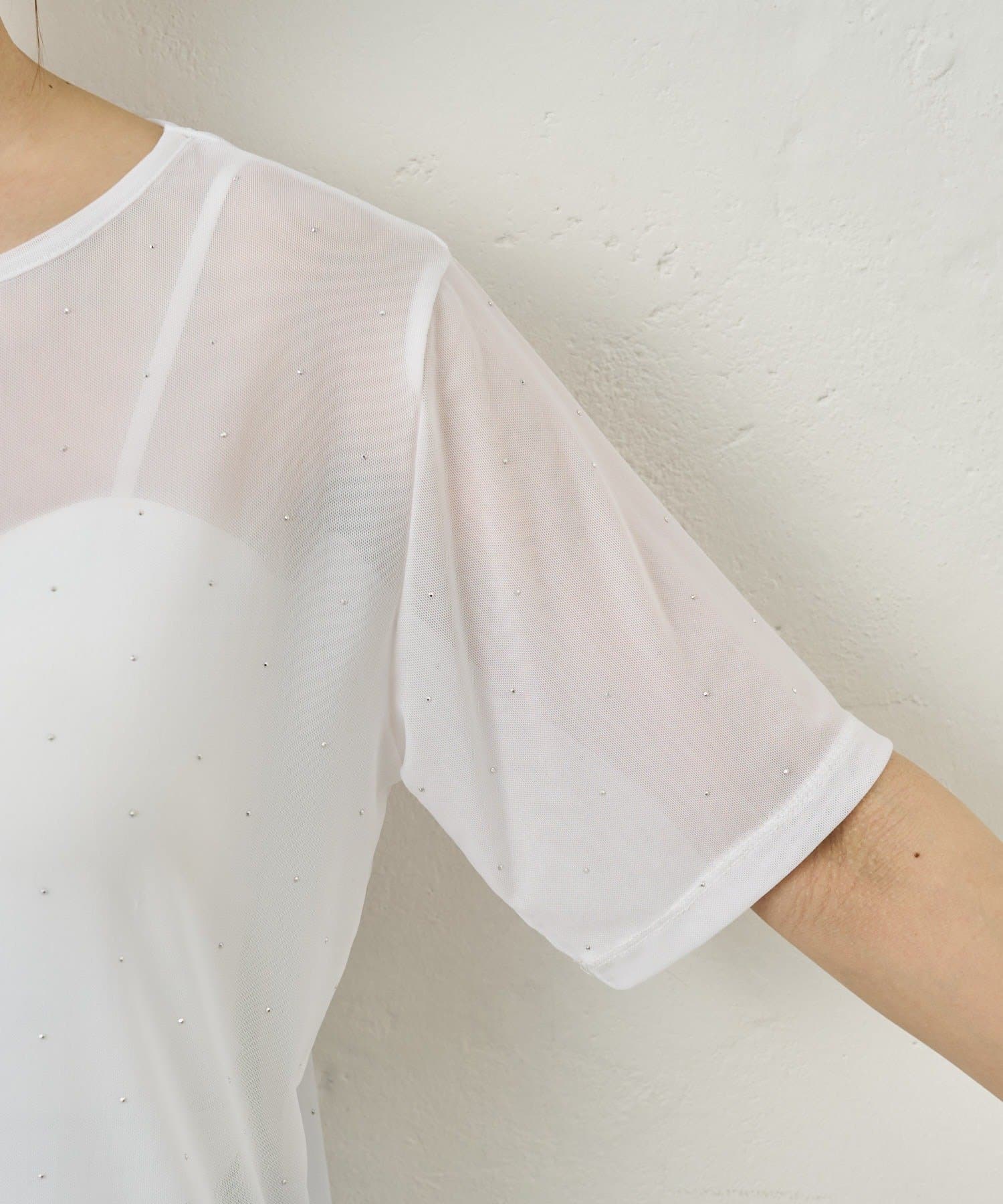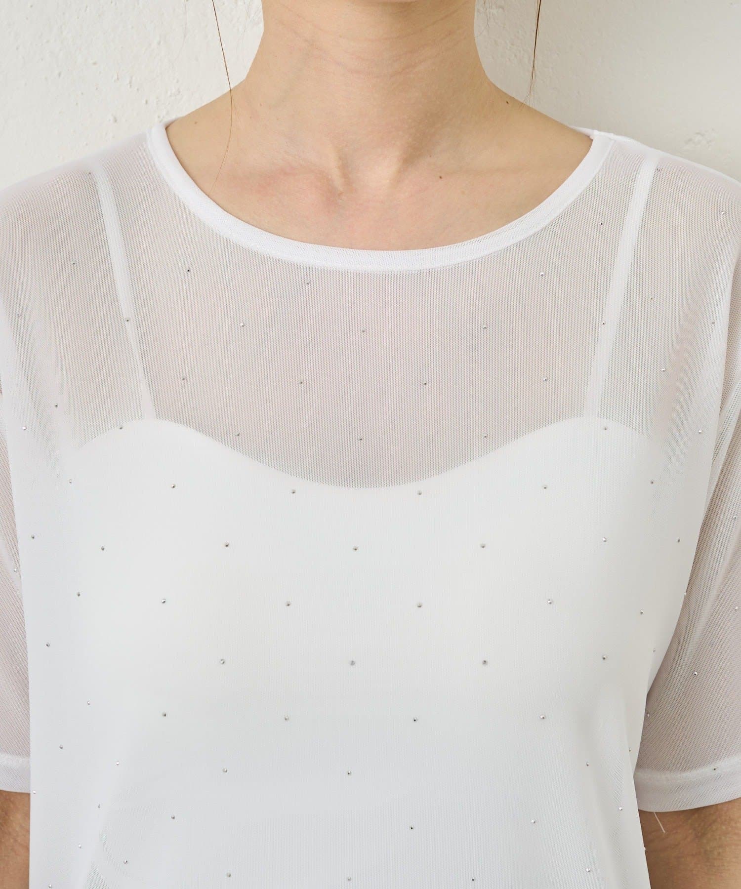 さりげないラメが華やぐビジューチュールT