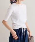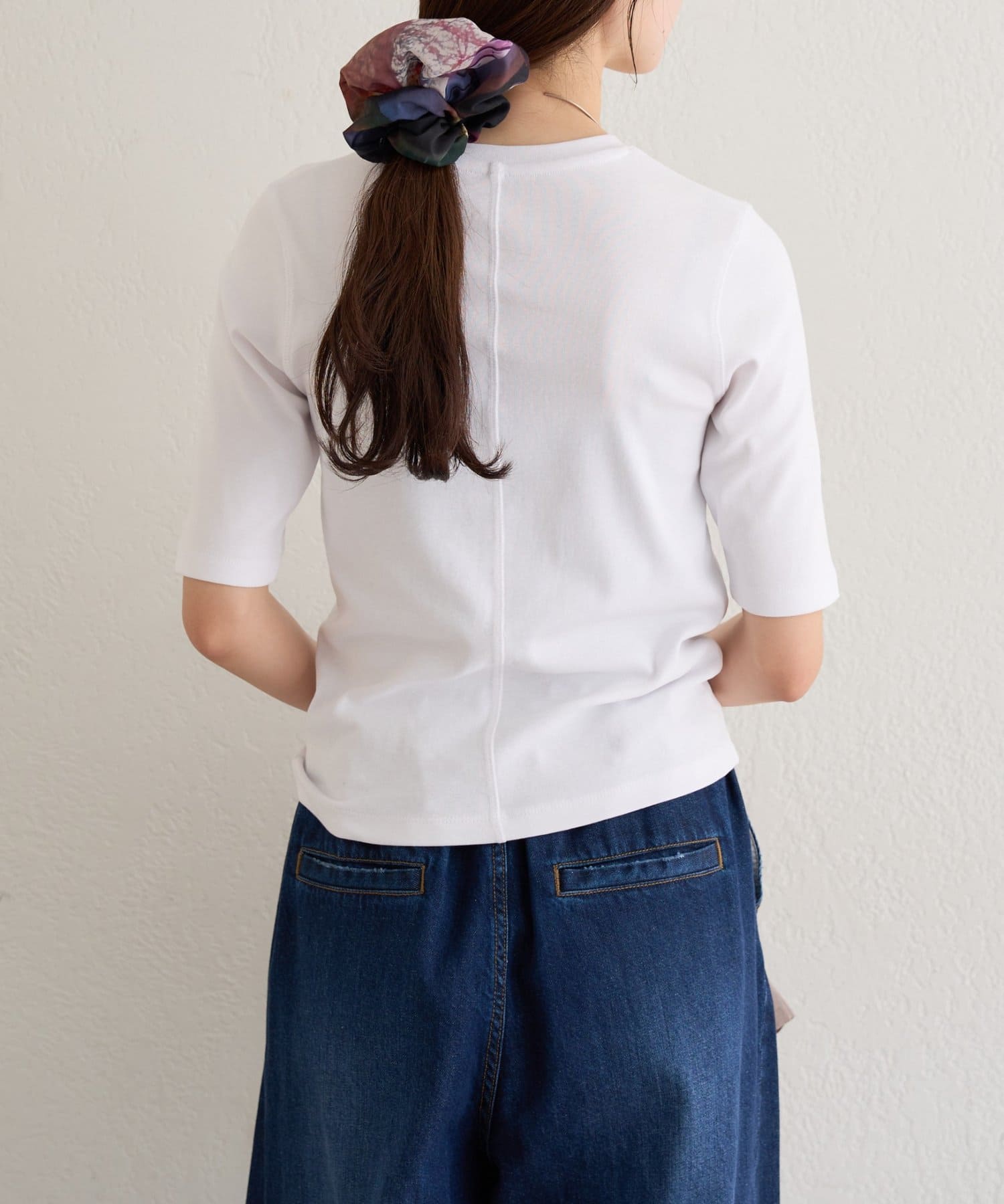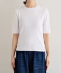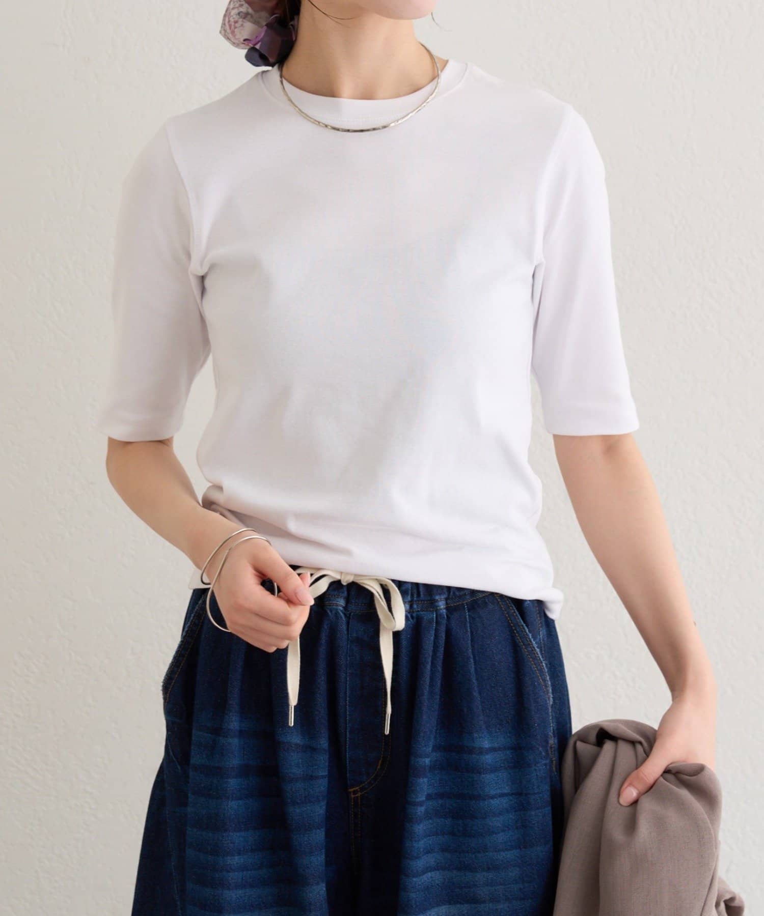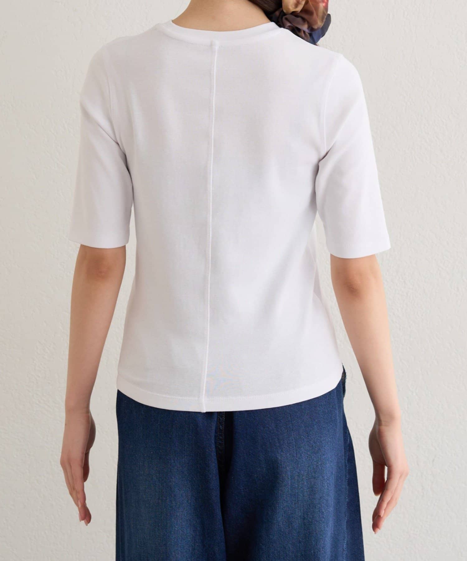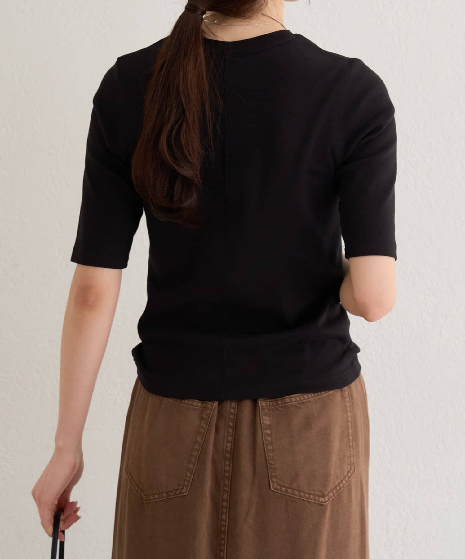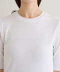 ・ややコンパクトなサイジングが女性らしい5分袖丈のTシャツ。