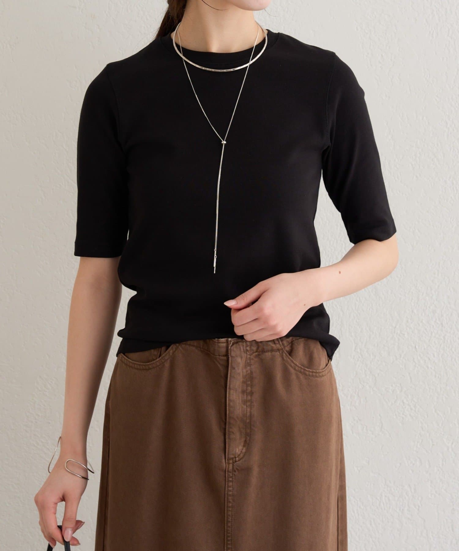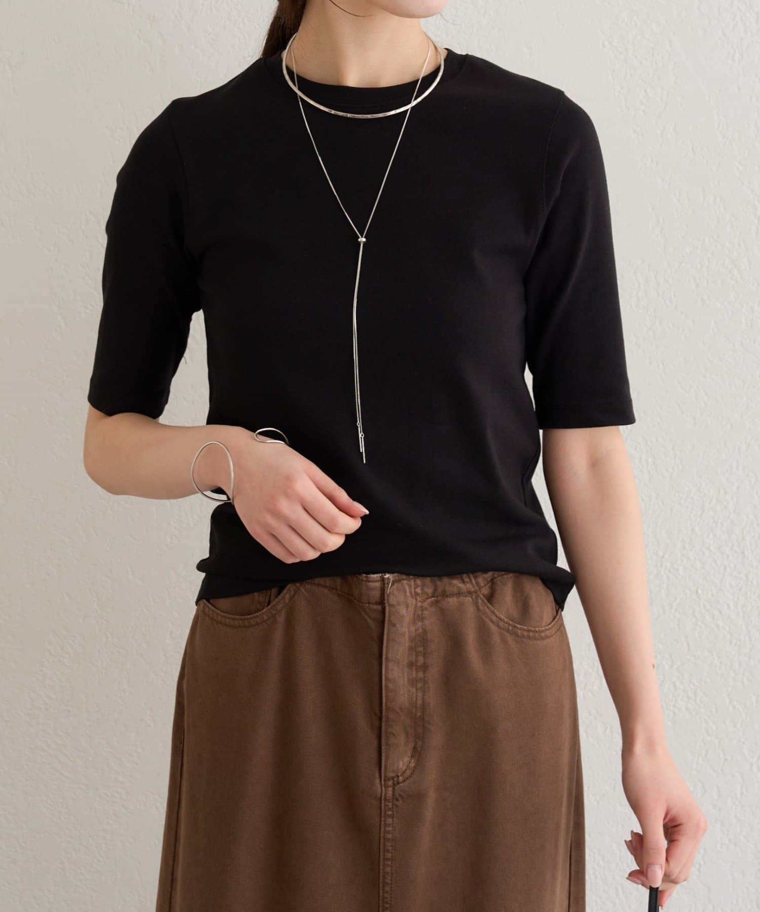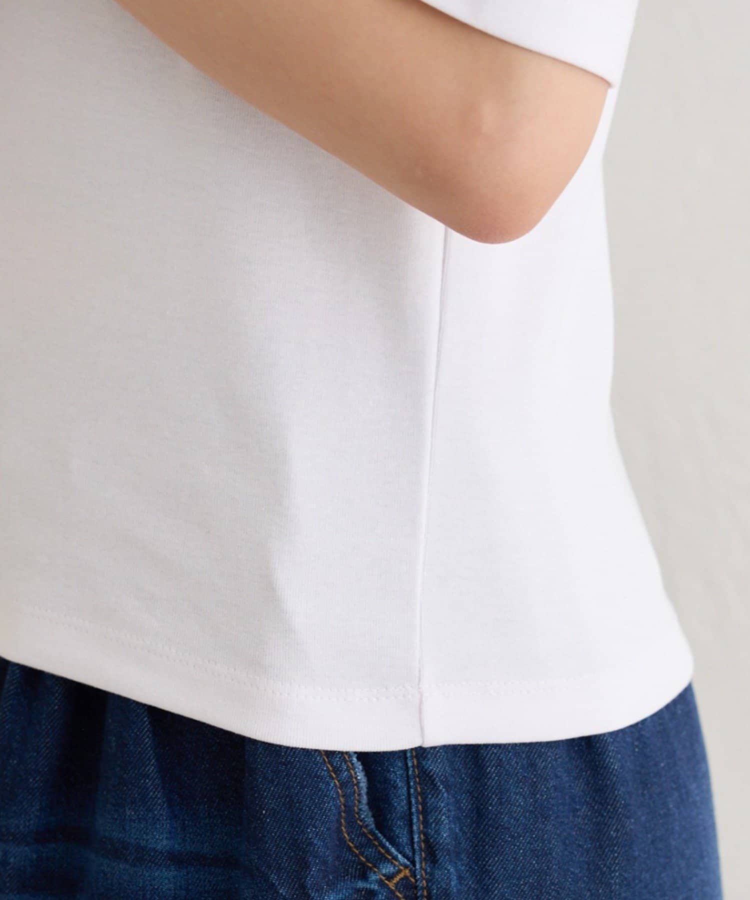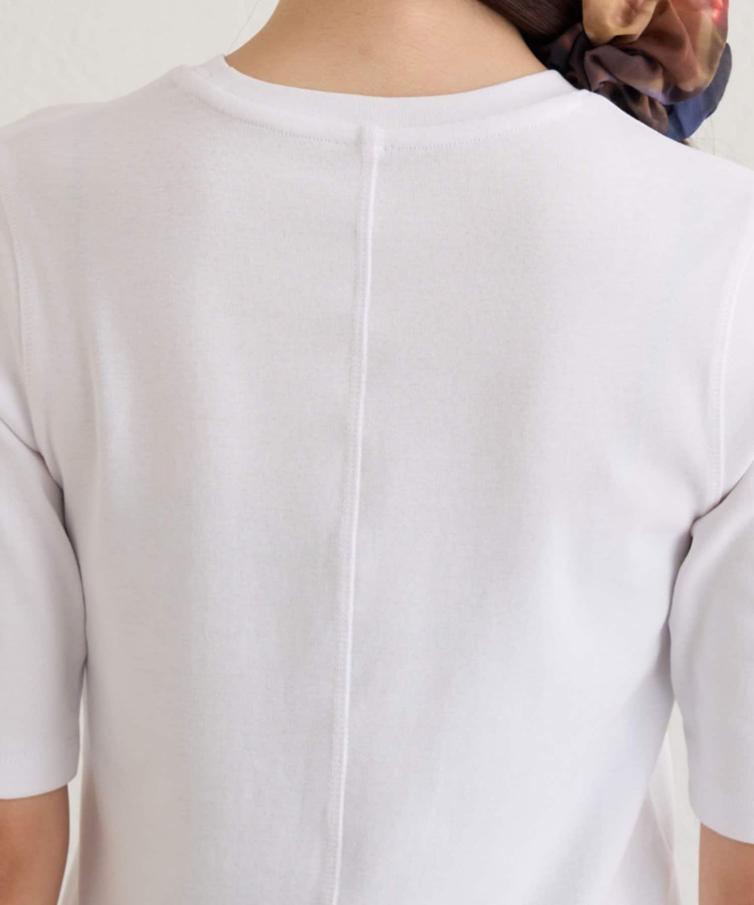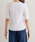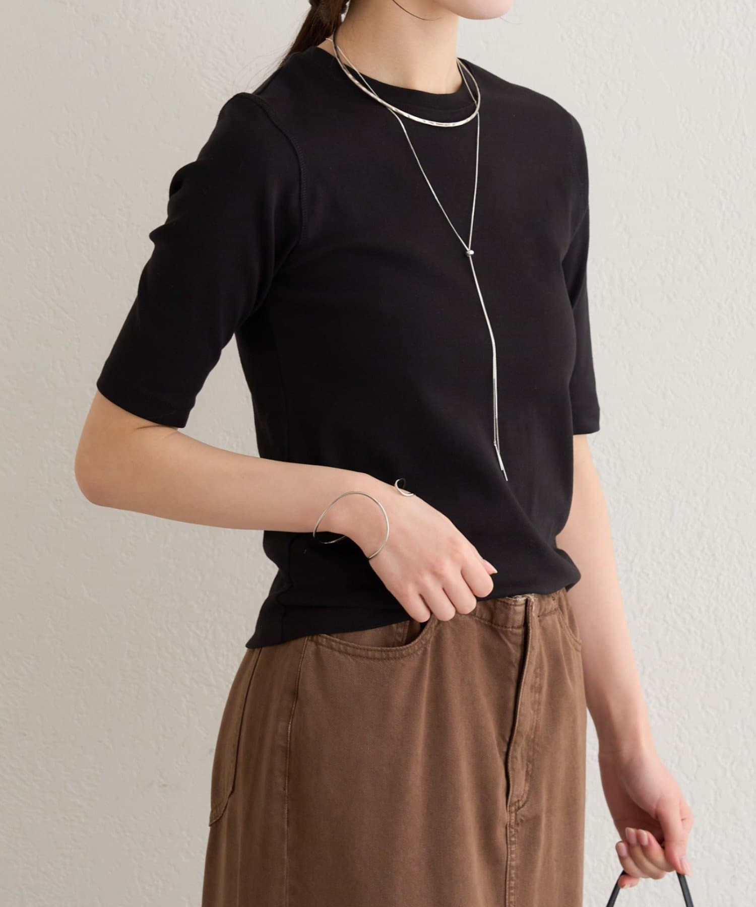 ・ややコンパクトなサイジングが女性らしい5分袖丈のTシャツ。