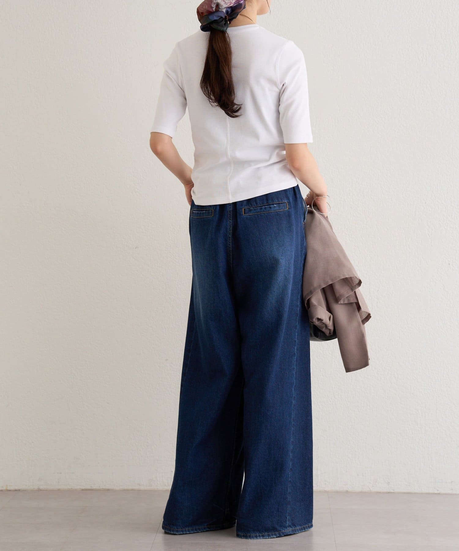 ・やや長めの5分袖丈が縦長のシルエットで細見え効果も◎