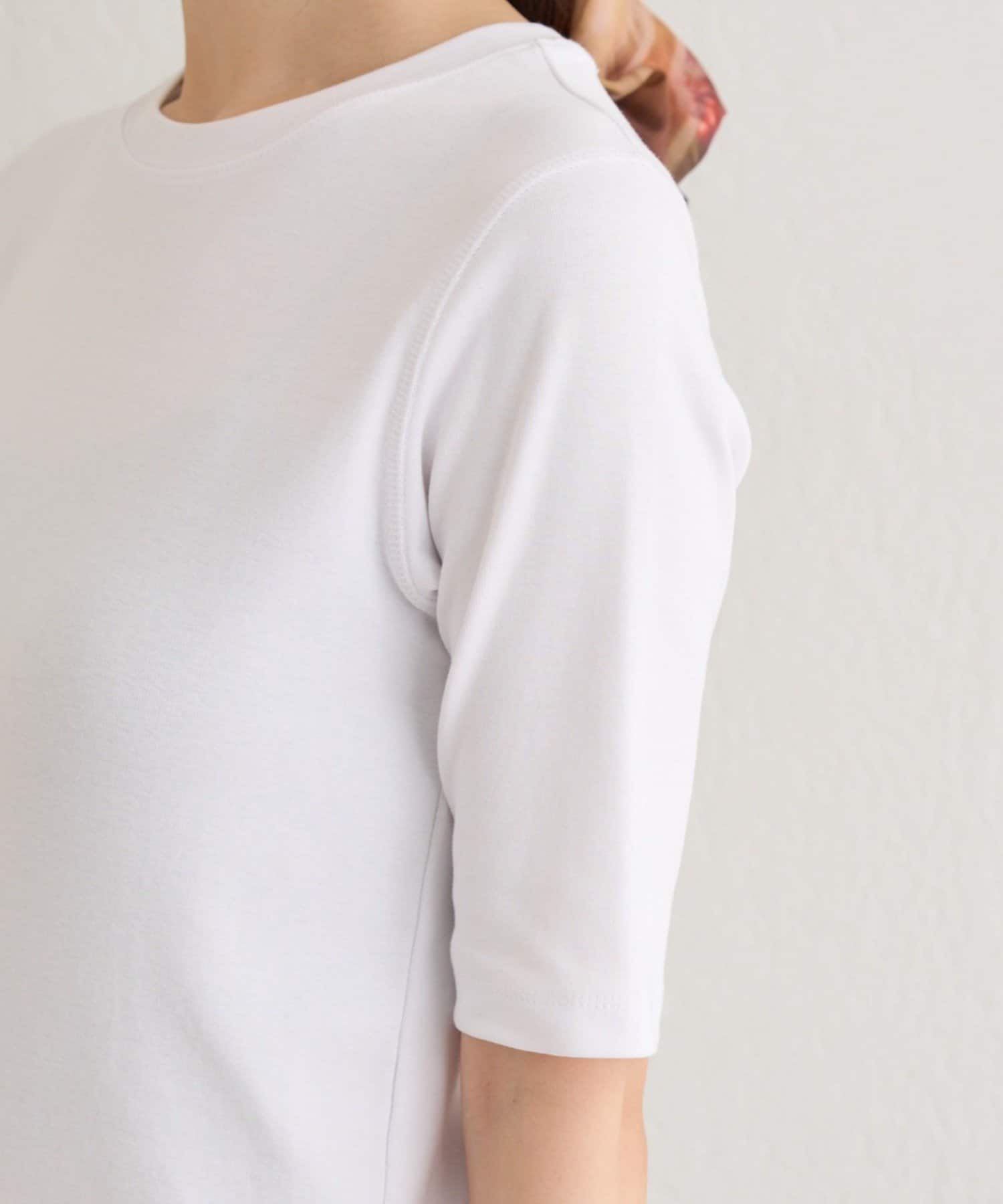 ・ややコンパクトなサイジングが女性らしい5分袖丈のTシャツ。