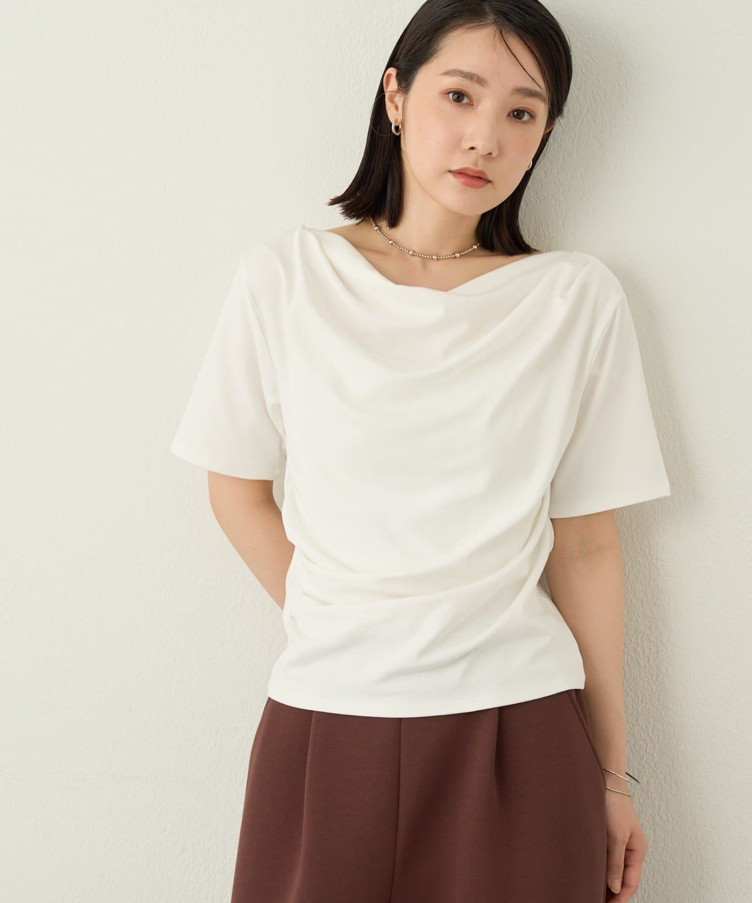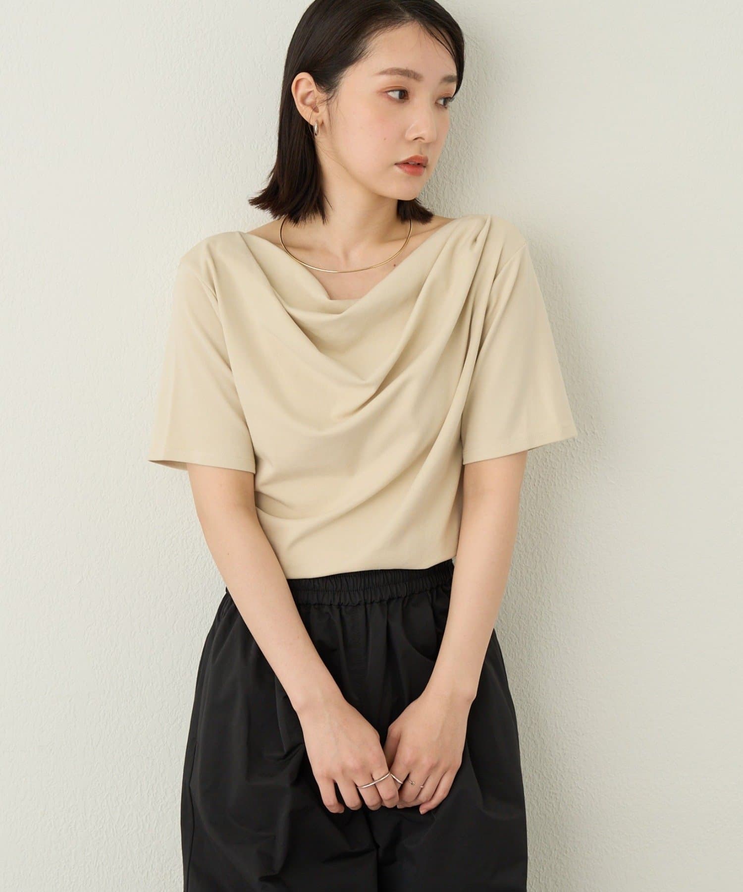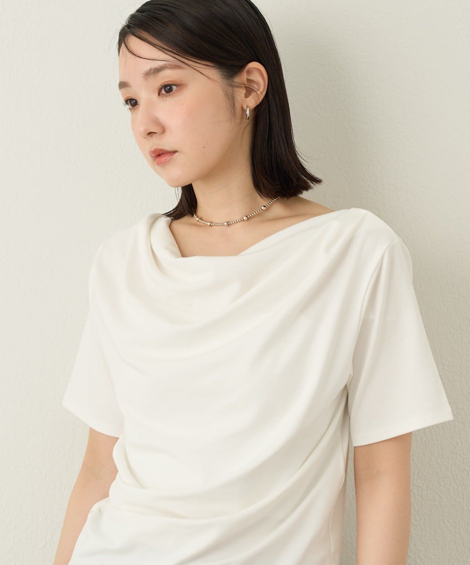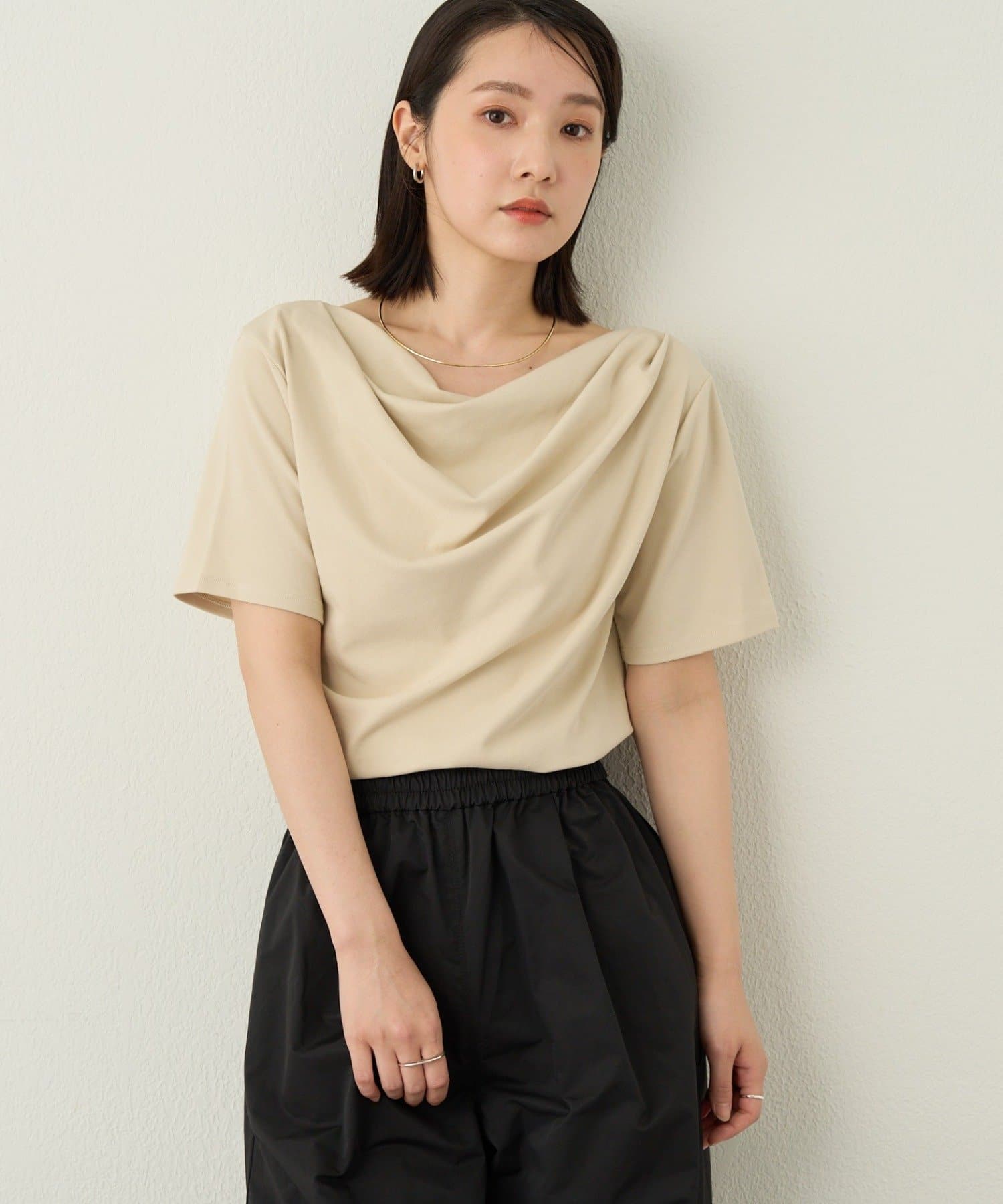 一枚で女性らしさを引き立たせるドレープT