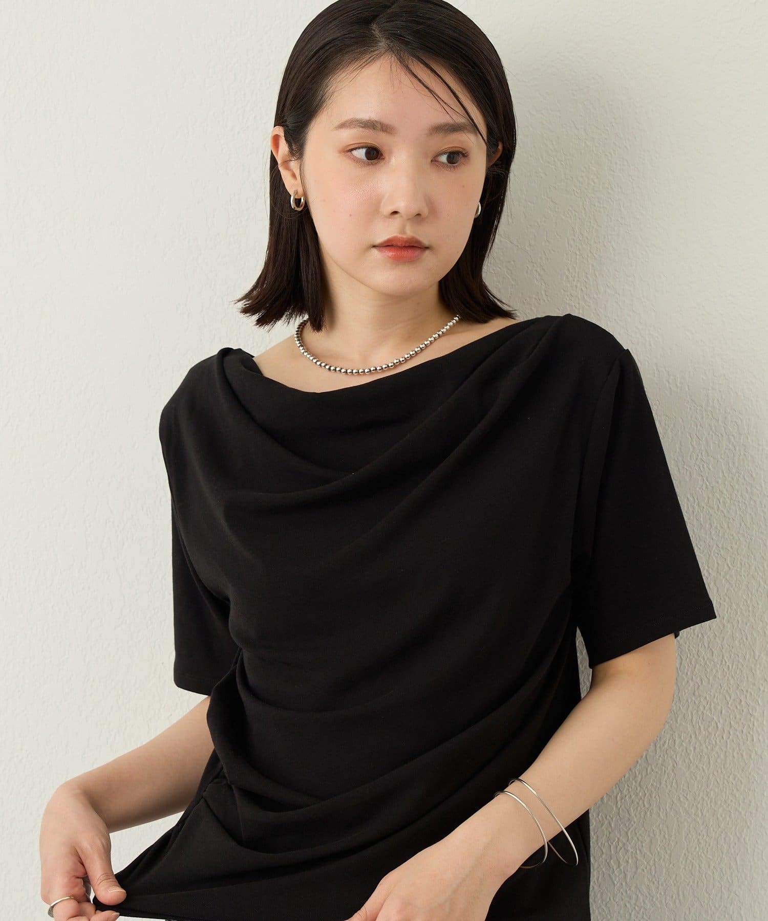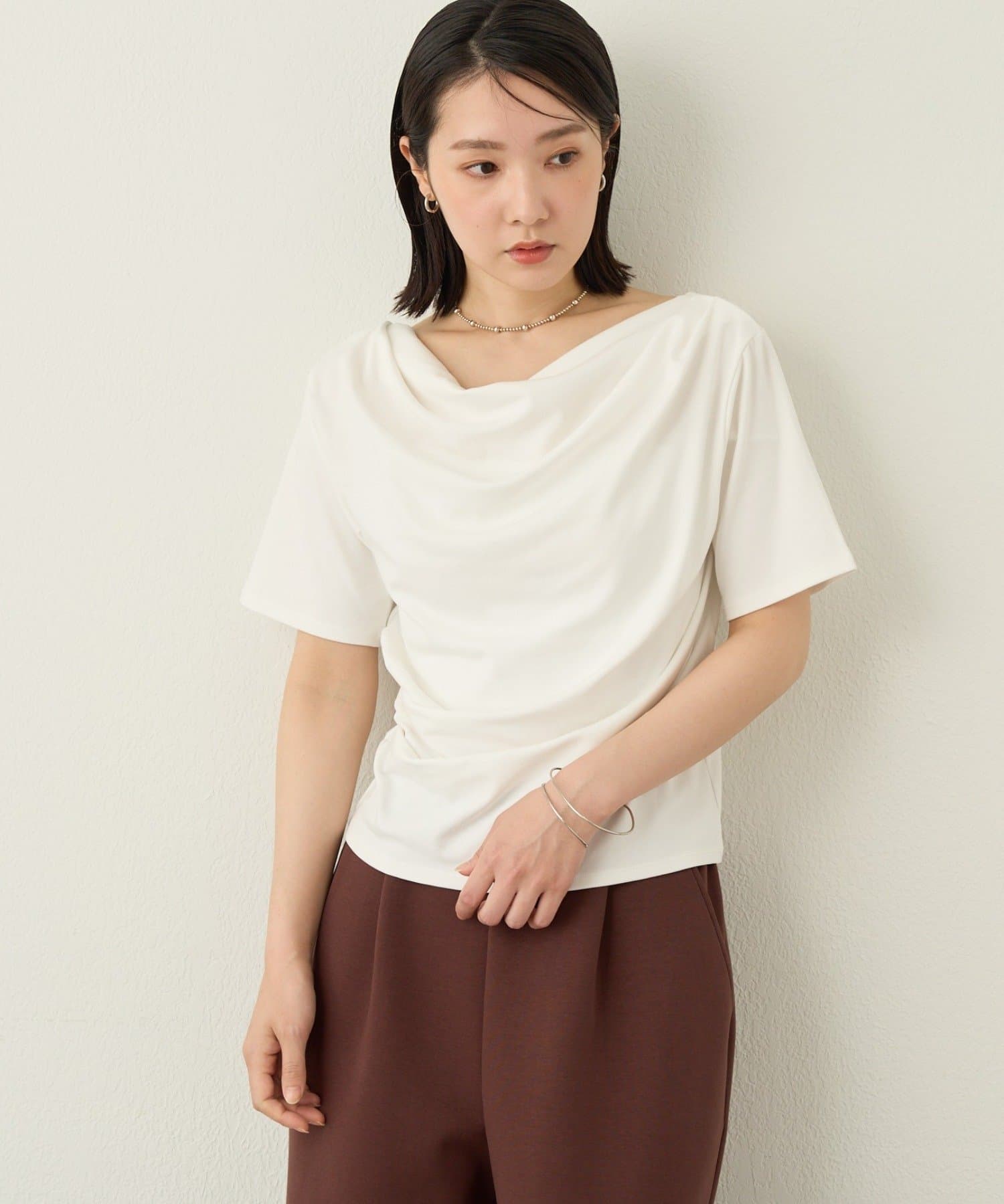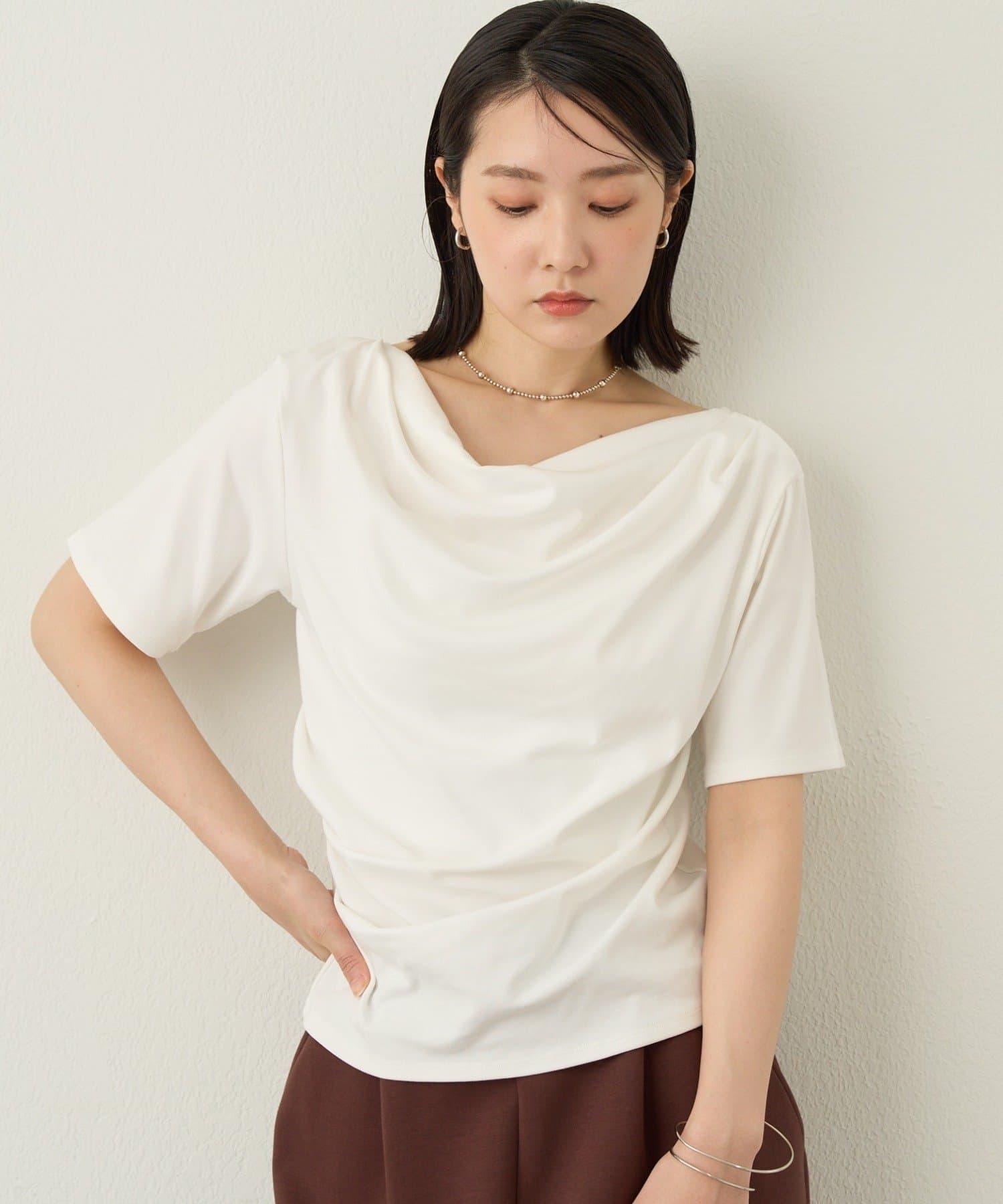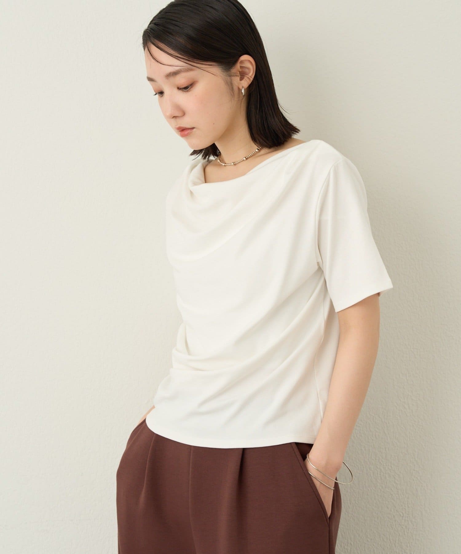 一枚で女性らしさを引き立たせるドレープT