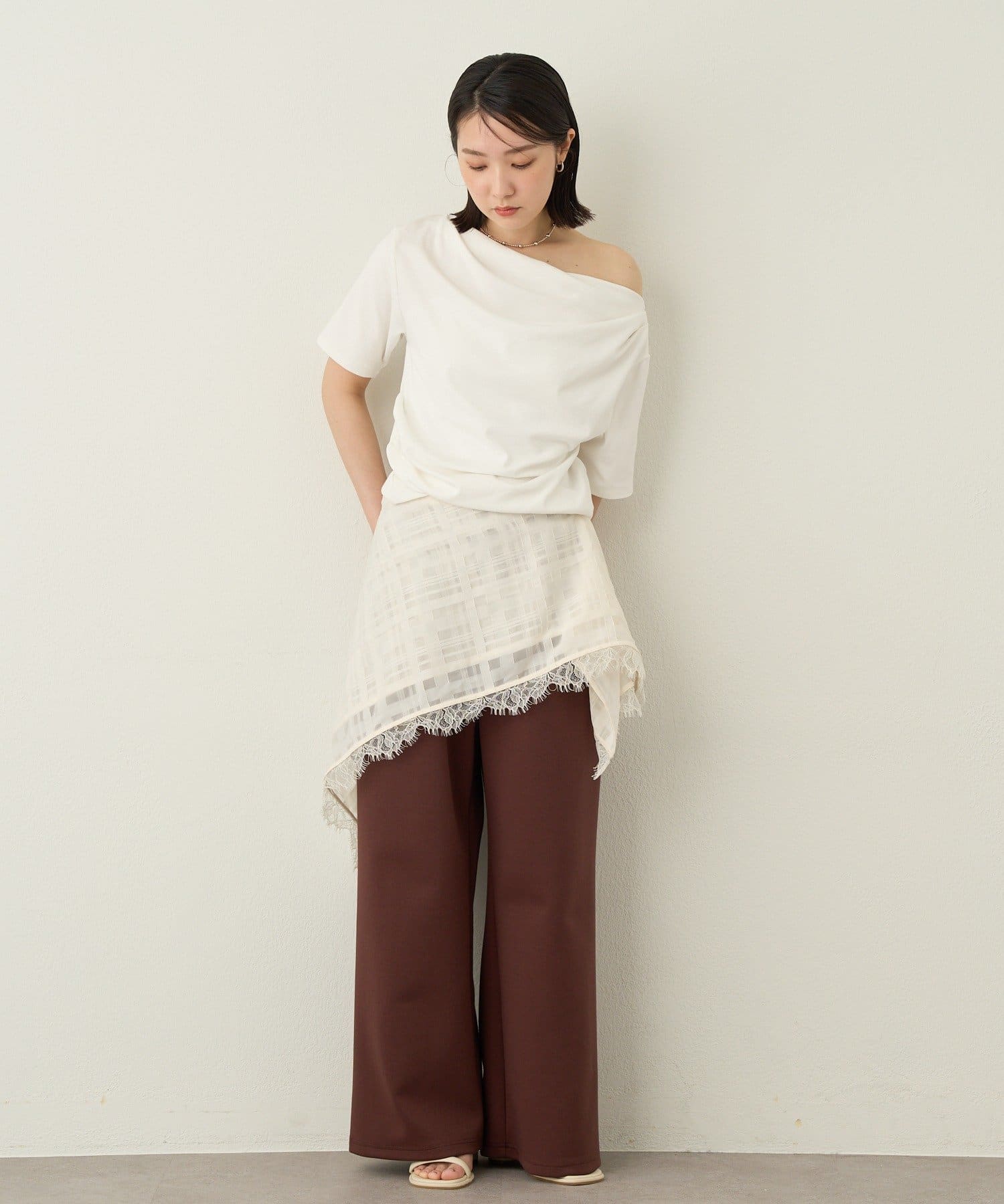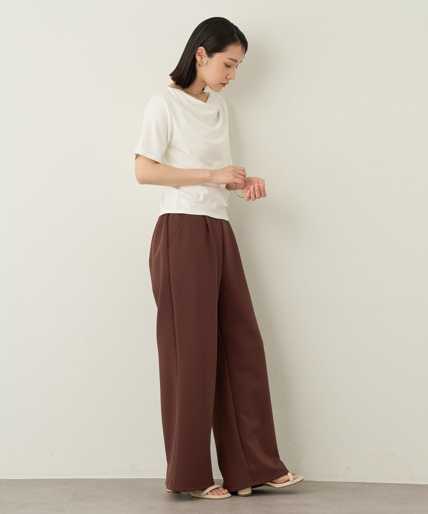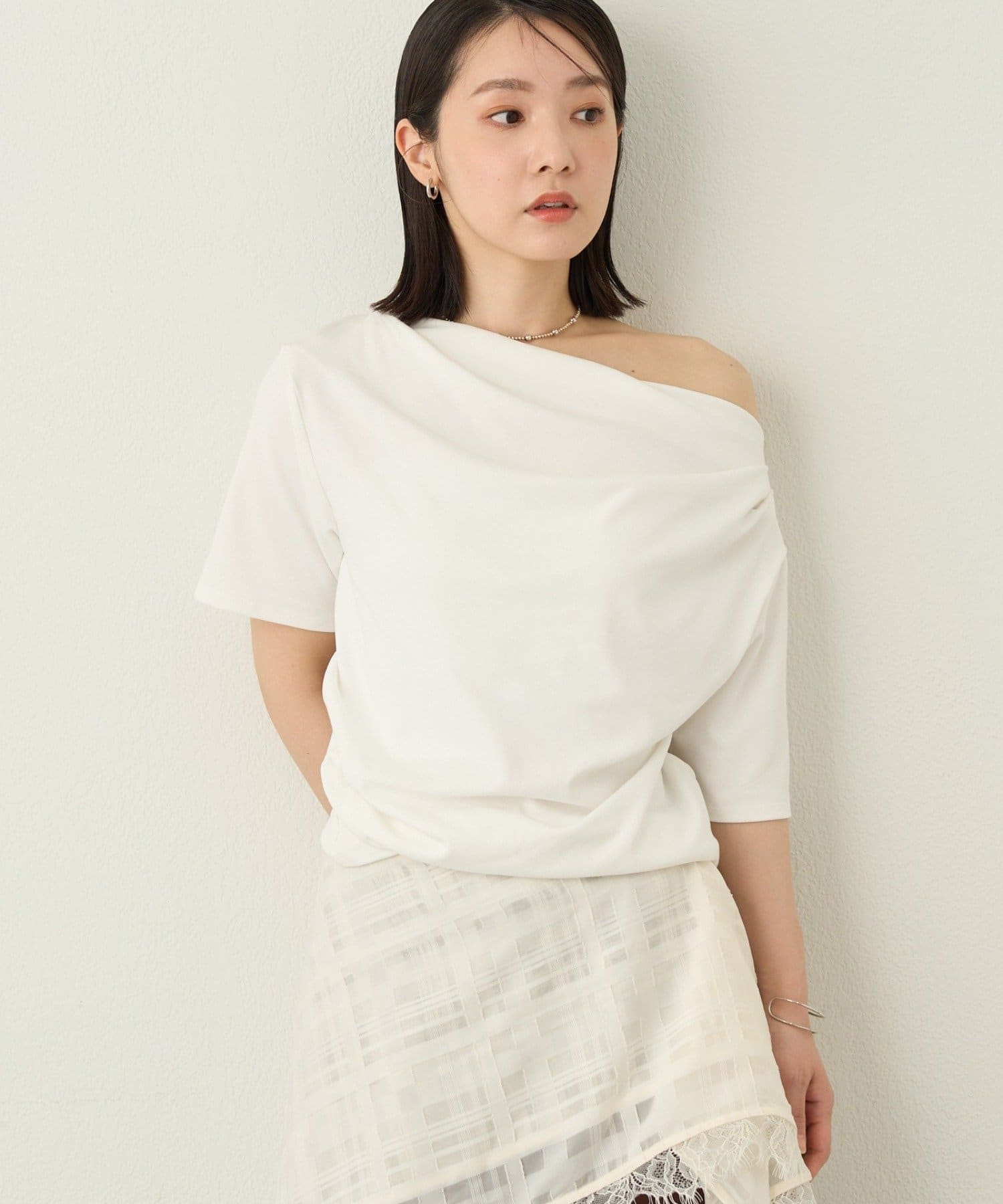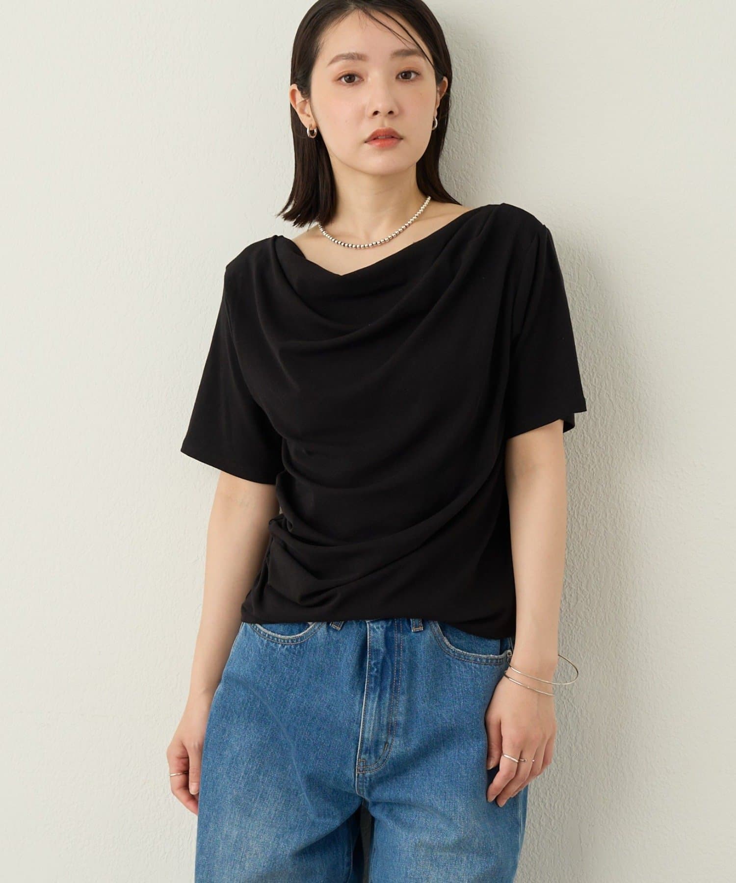 一枚で女性らしさを引き立たせるドレープT