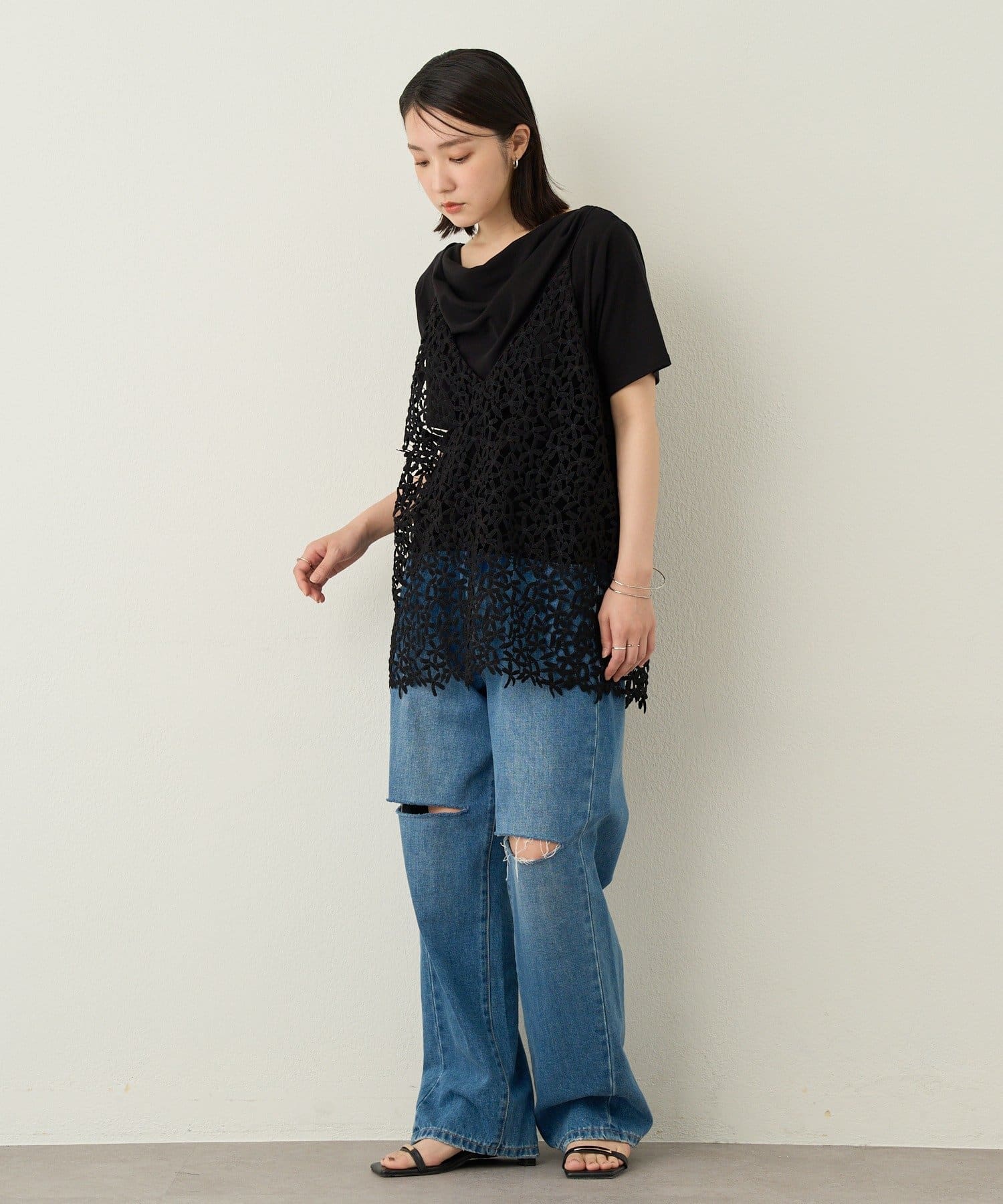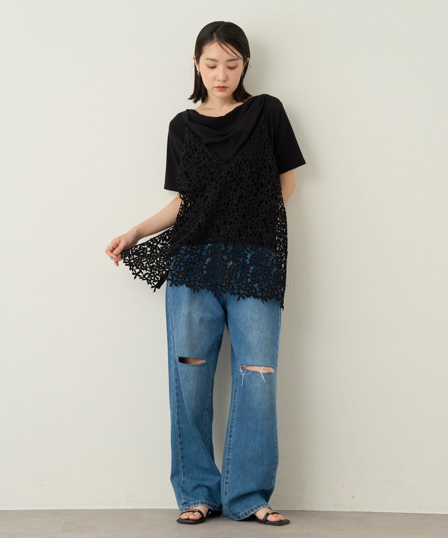 2way半袖ドレープTシャツ