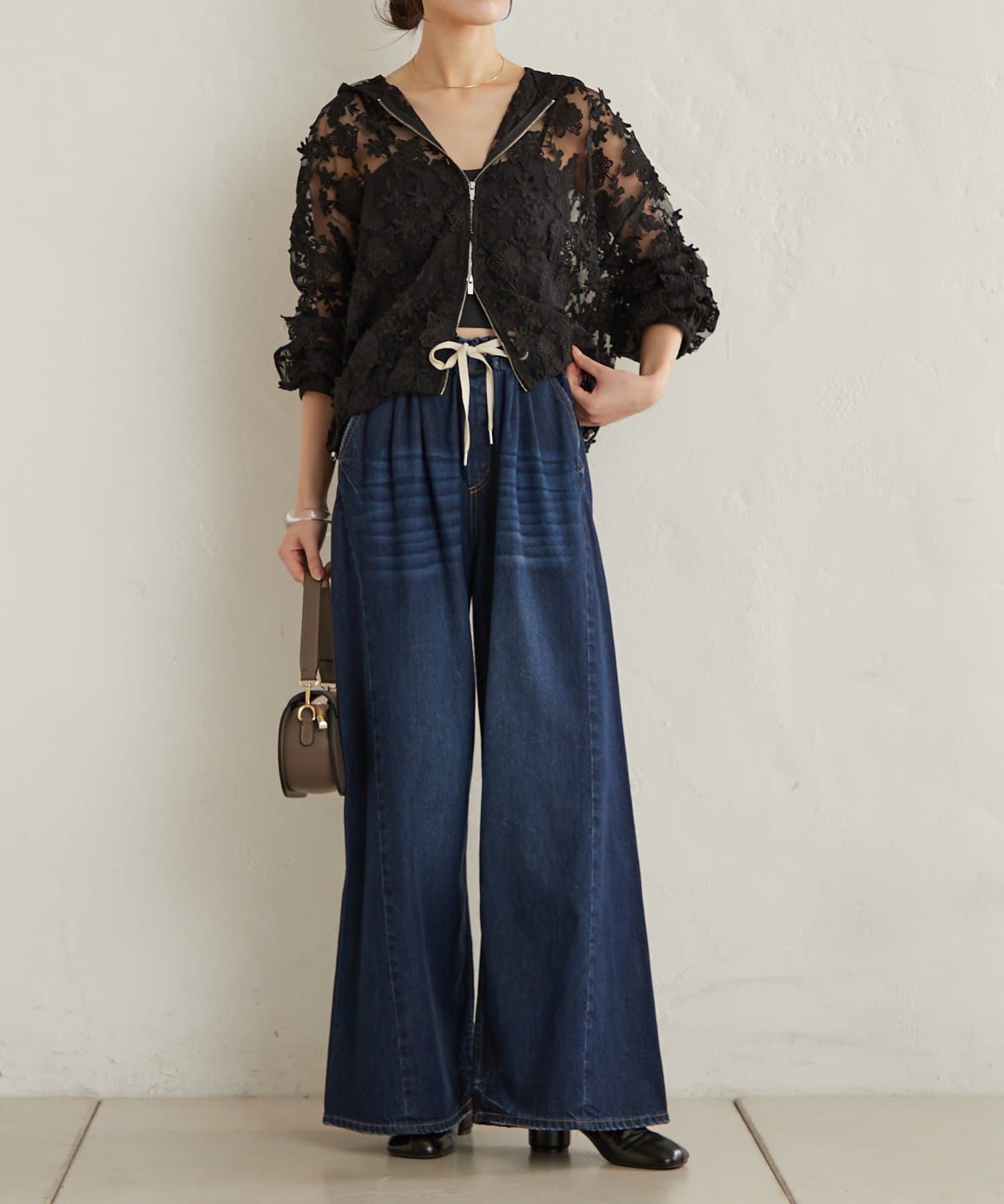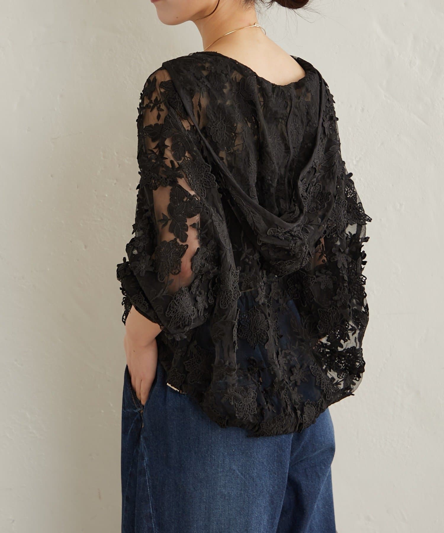羽織るだけでおしゃれに決まるレースフーディ
