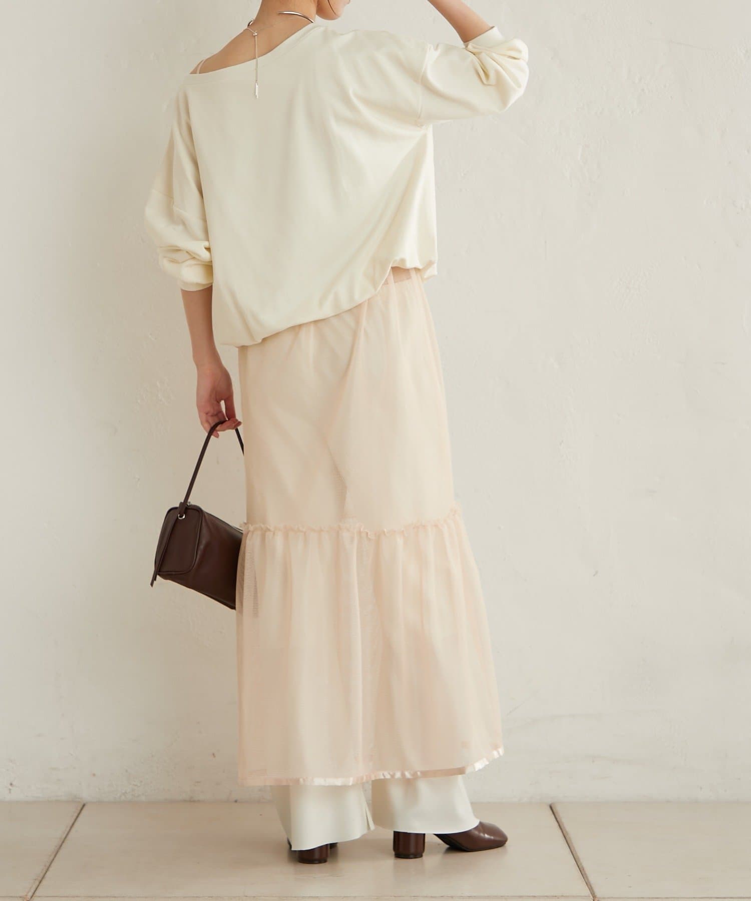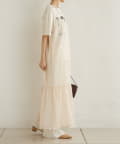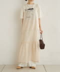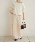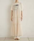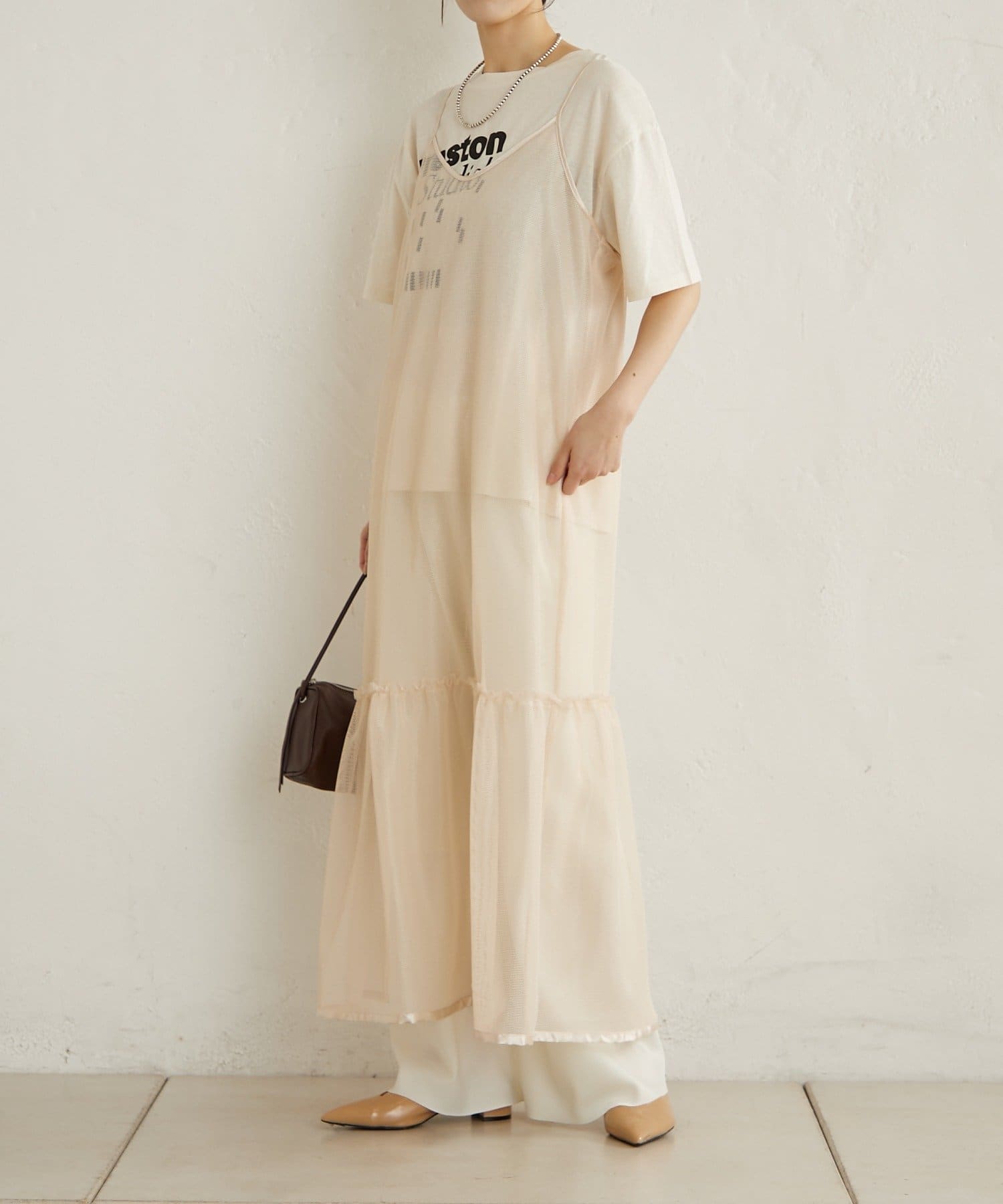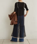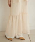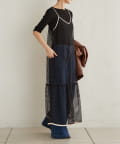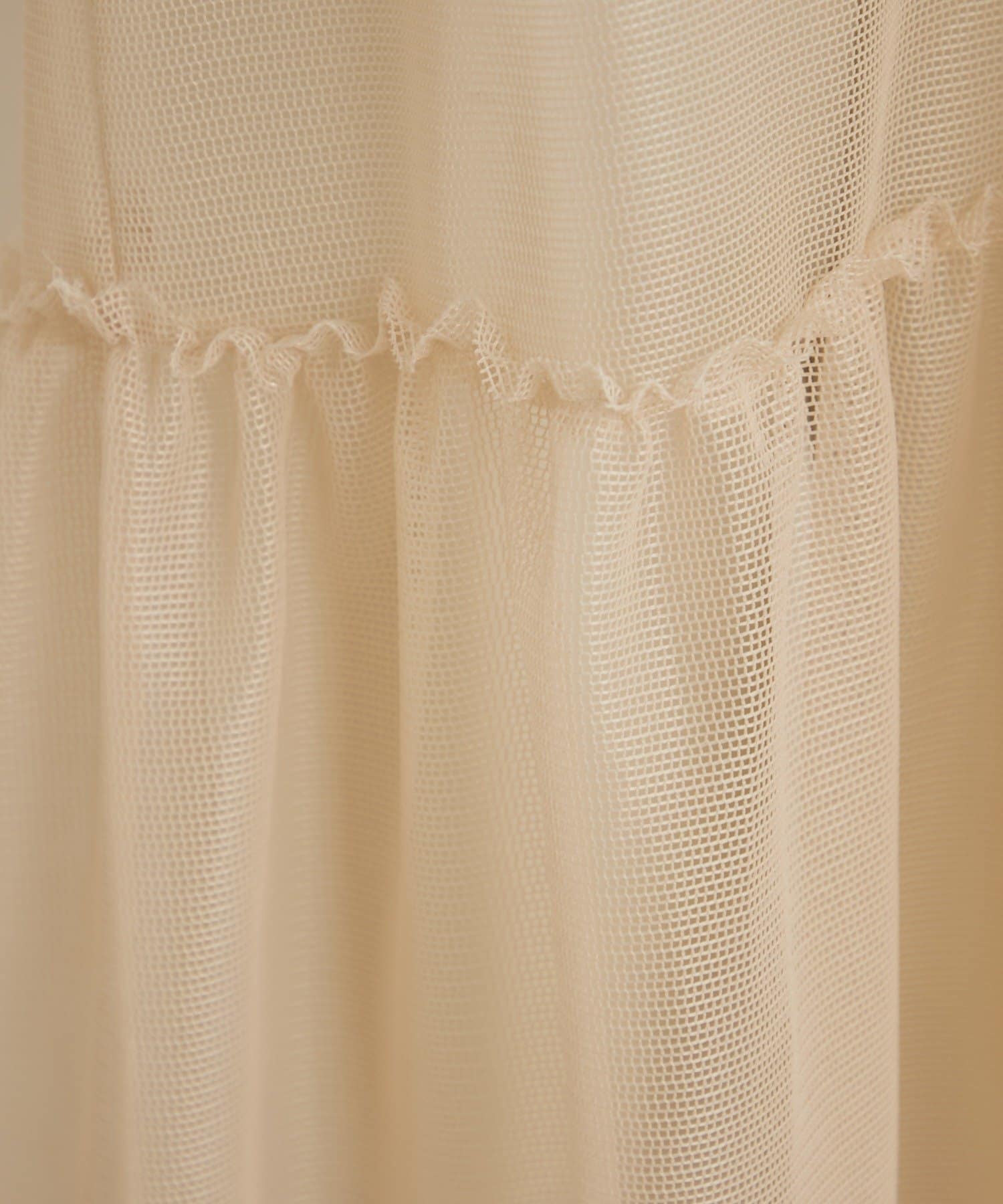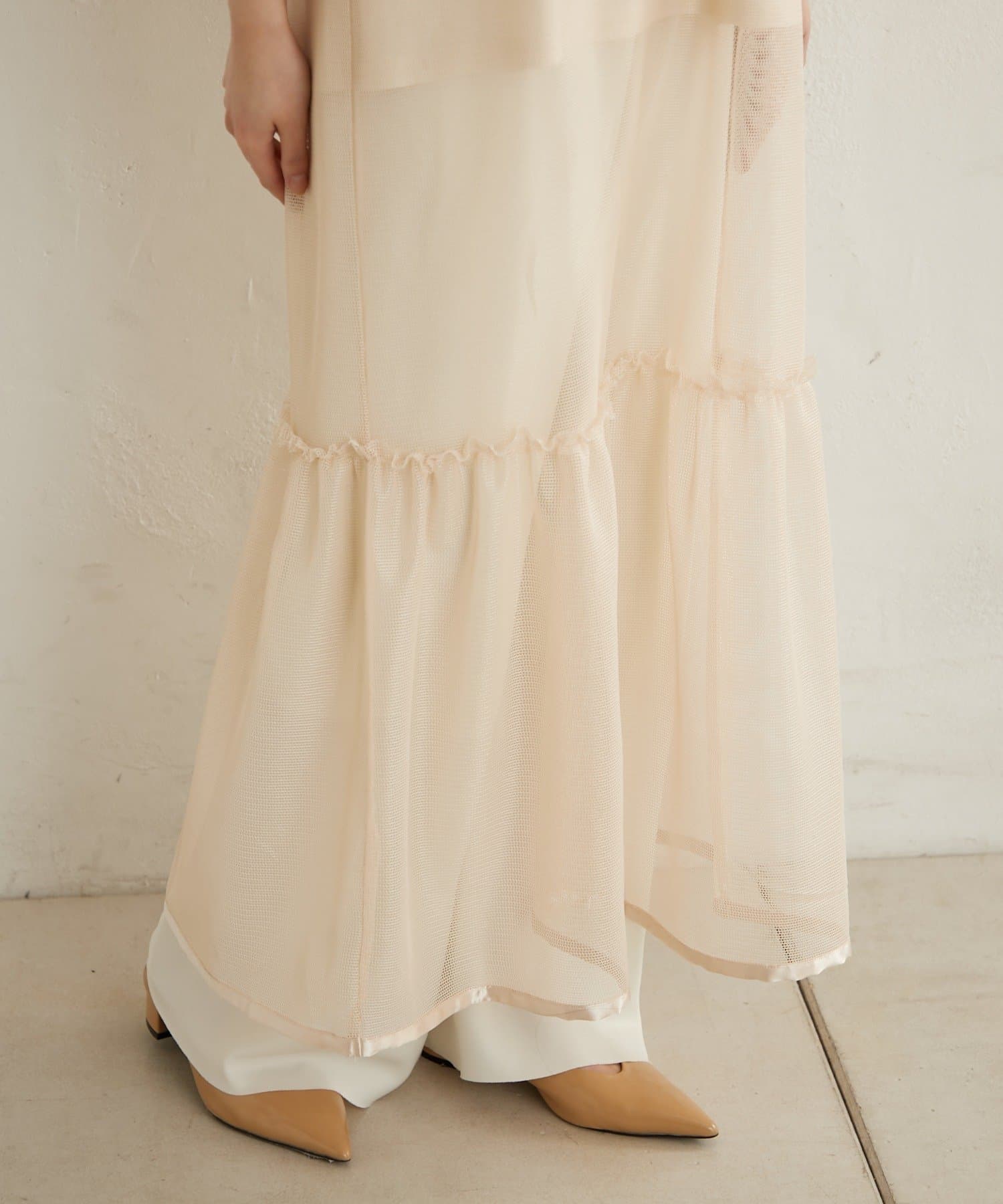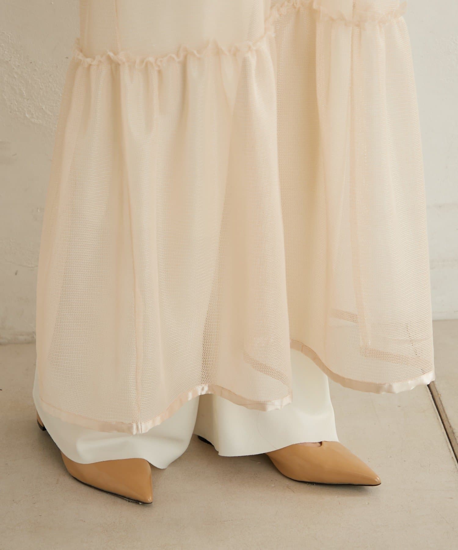 ・カジュアルなメッシュ素材ながら、裾に向かって広がるティアードデザインが女性らしい一枚。