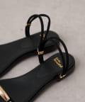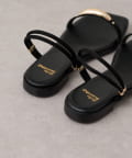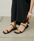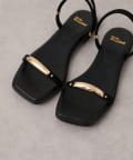 メタルプレートがアクセントになるスクエアサンダル