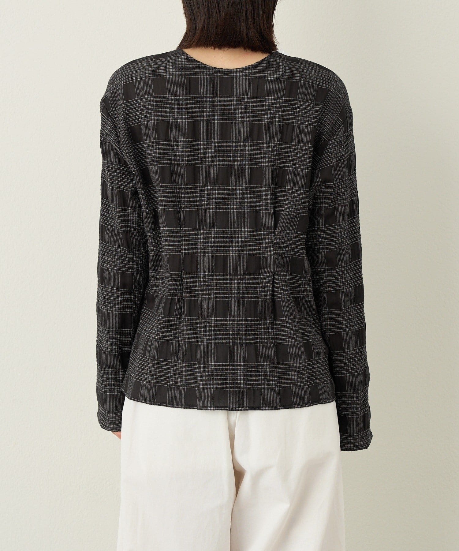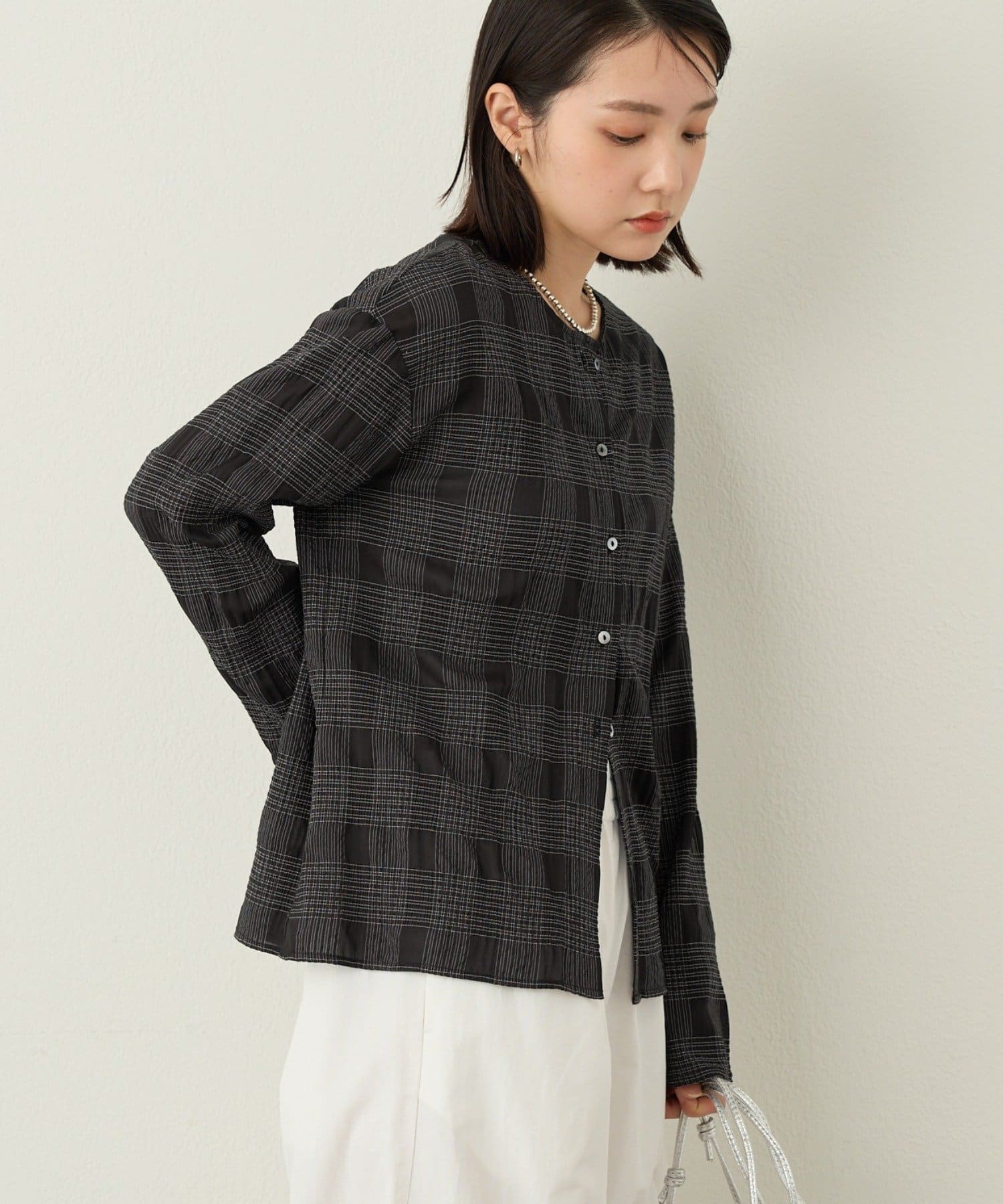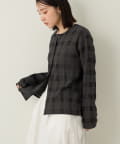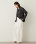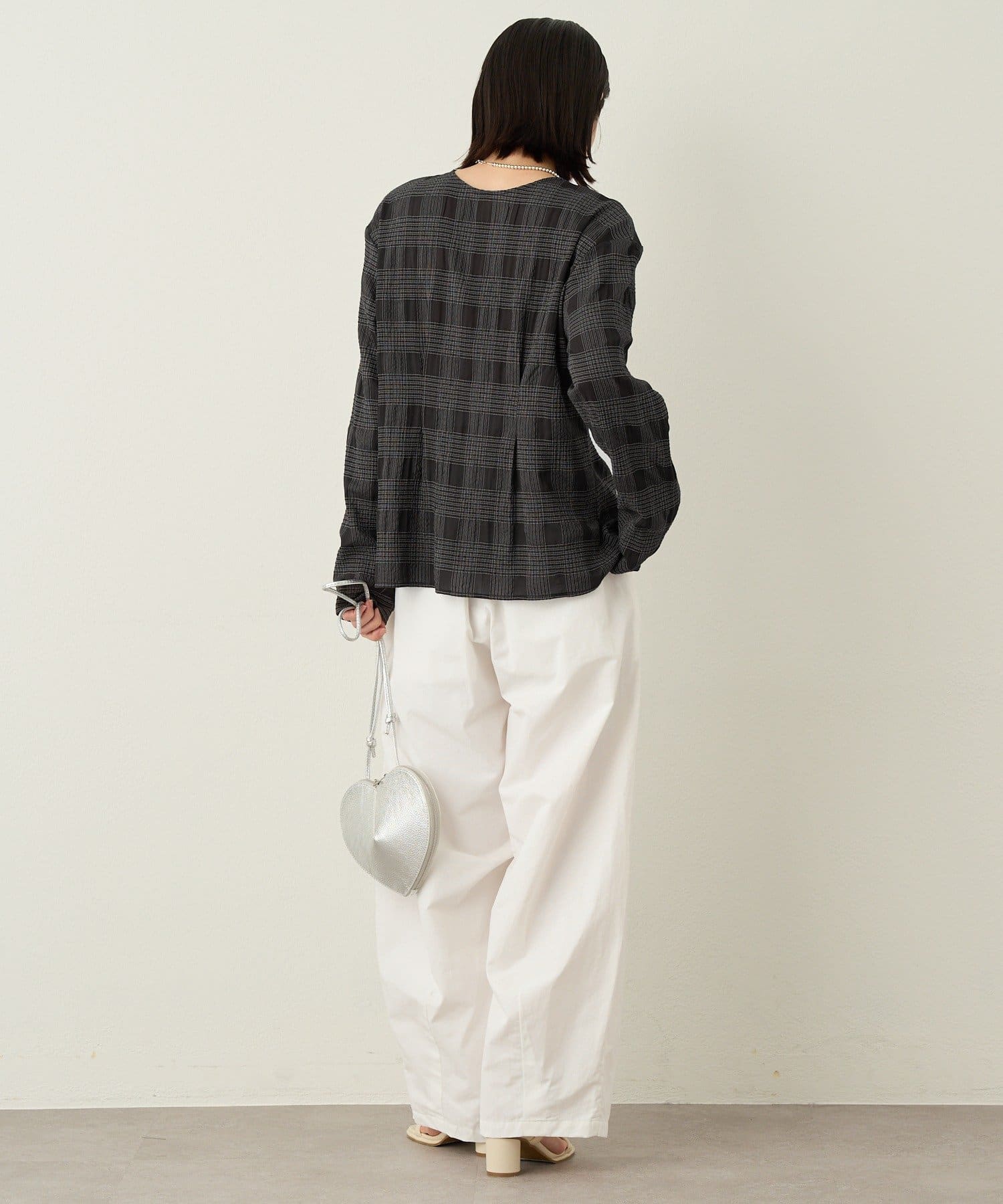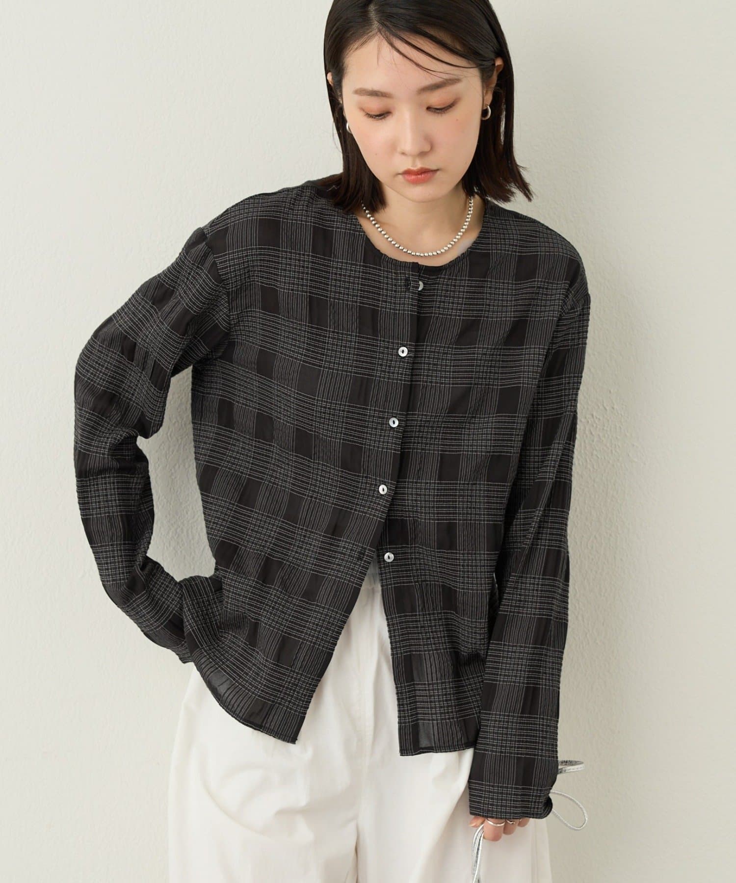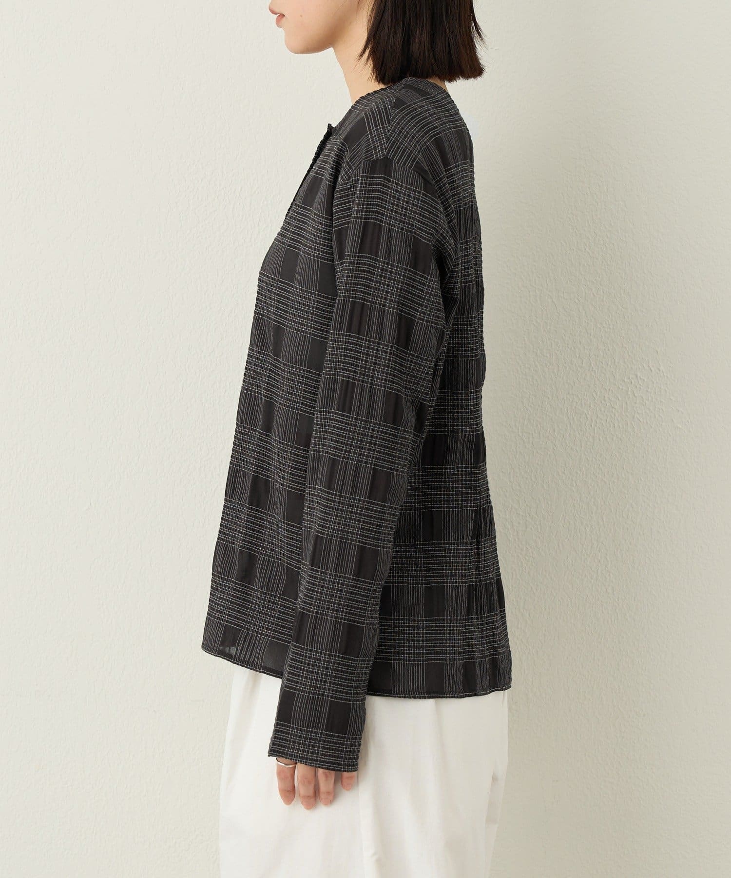 チェック柄がスタイリングのアクセントになるシアーカーディガン