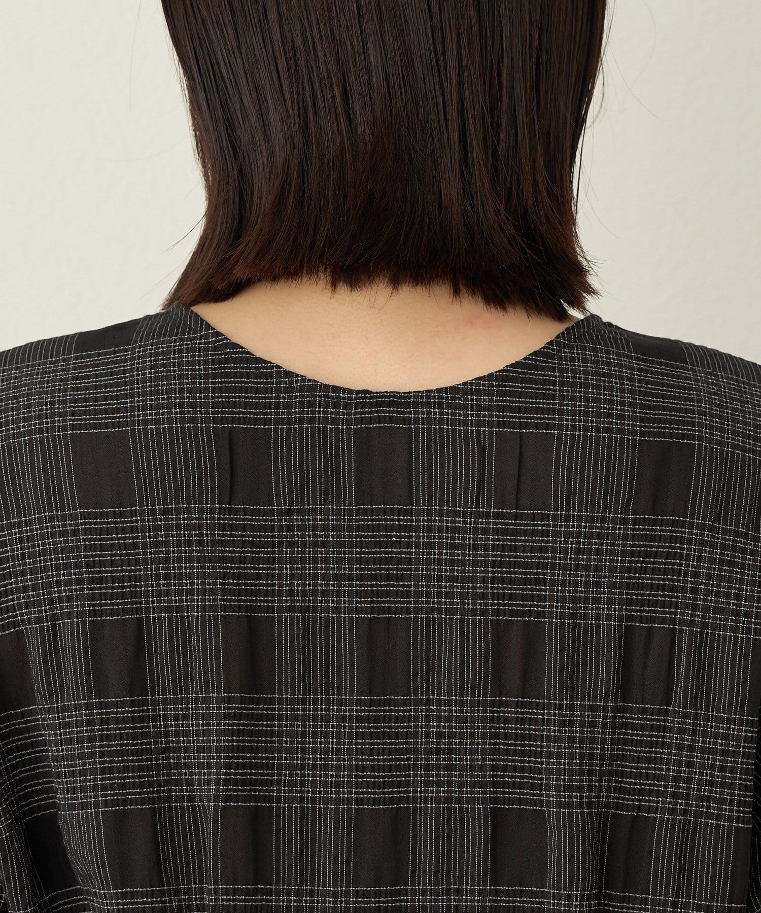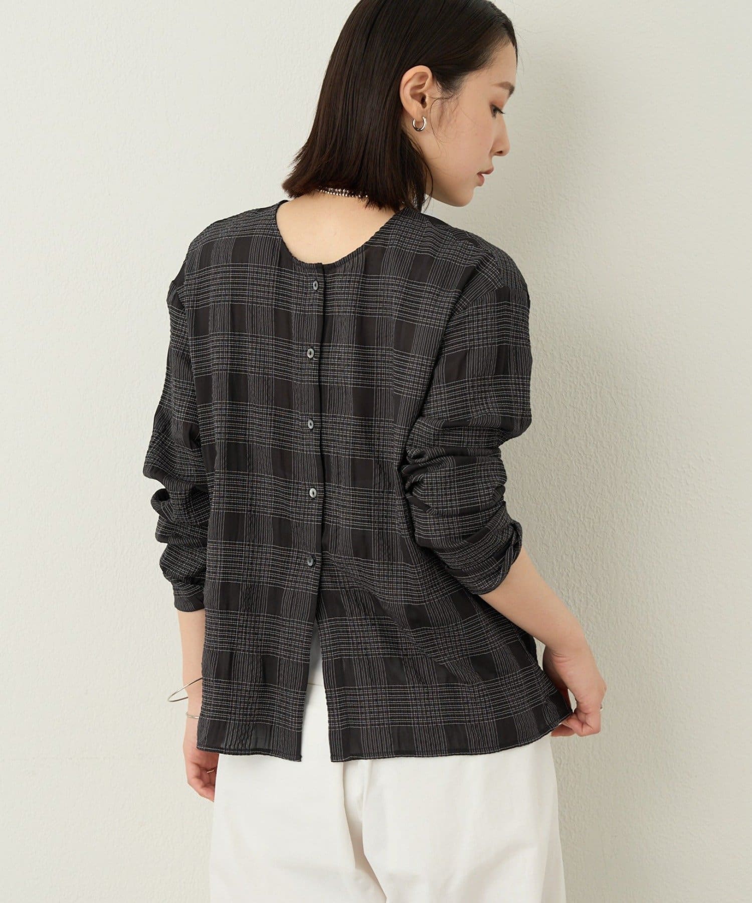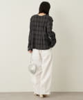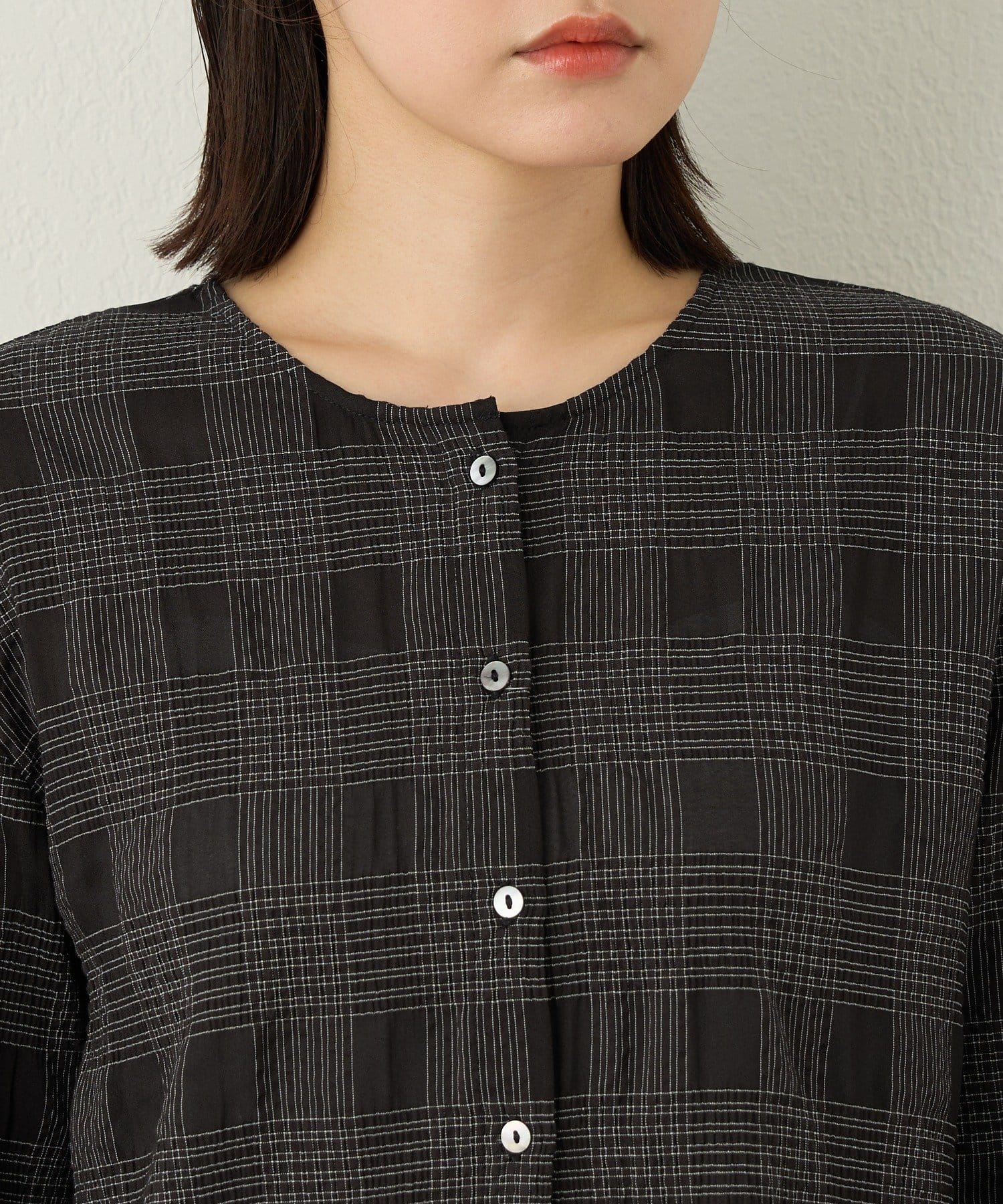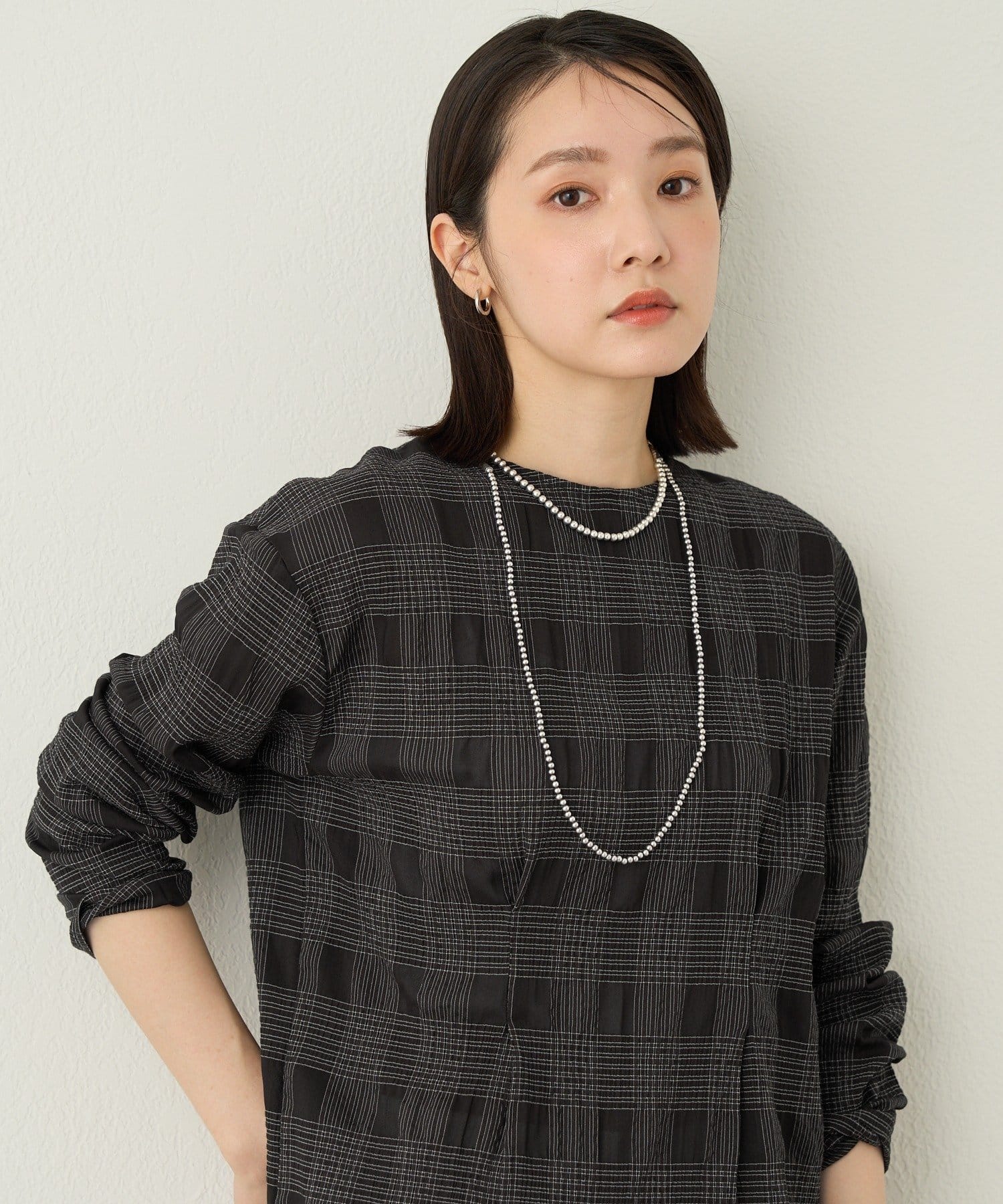 チェック柄がスタイリングのアクセントになるシアーカーディガン