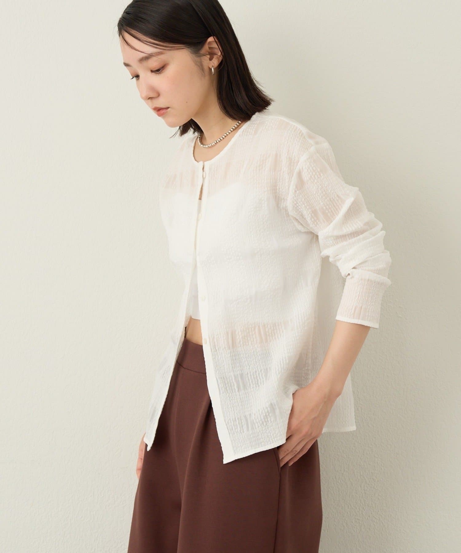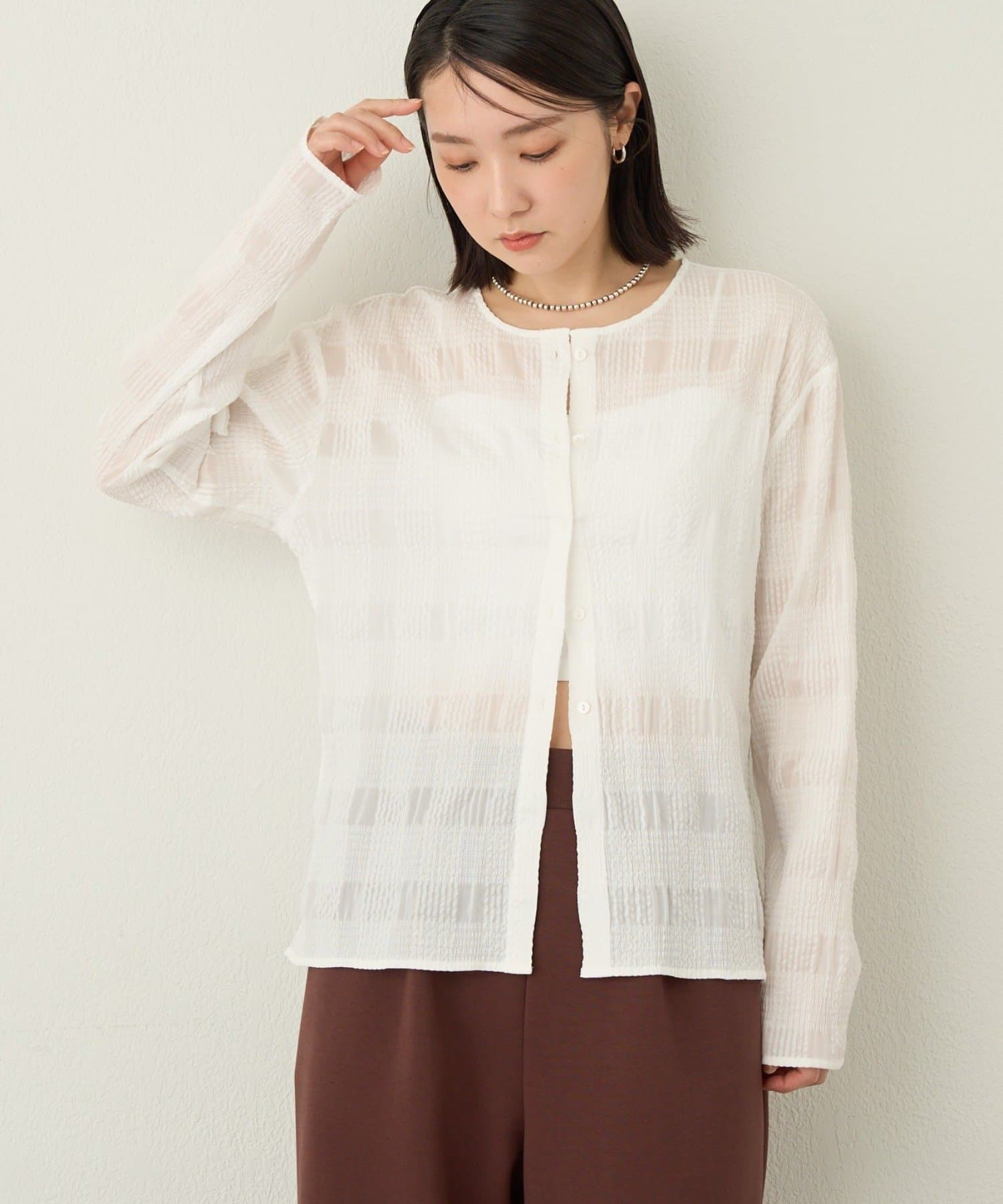 ・スタイリングにフェミニンな印象をプラスしてくれるシアーカーディガン