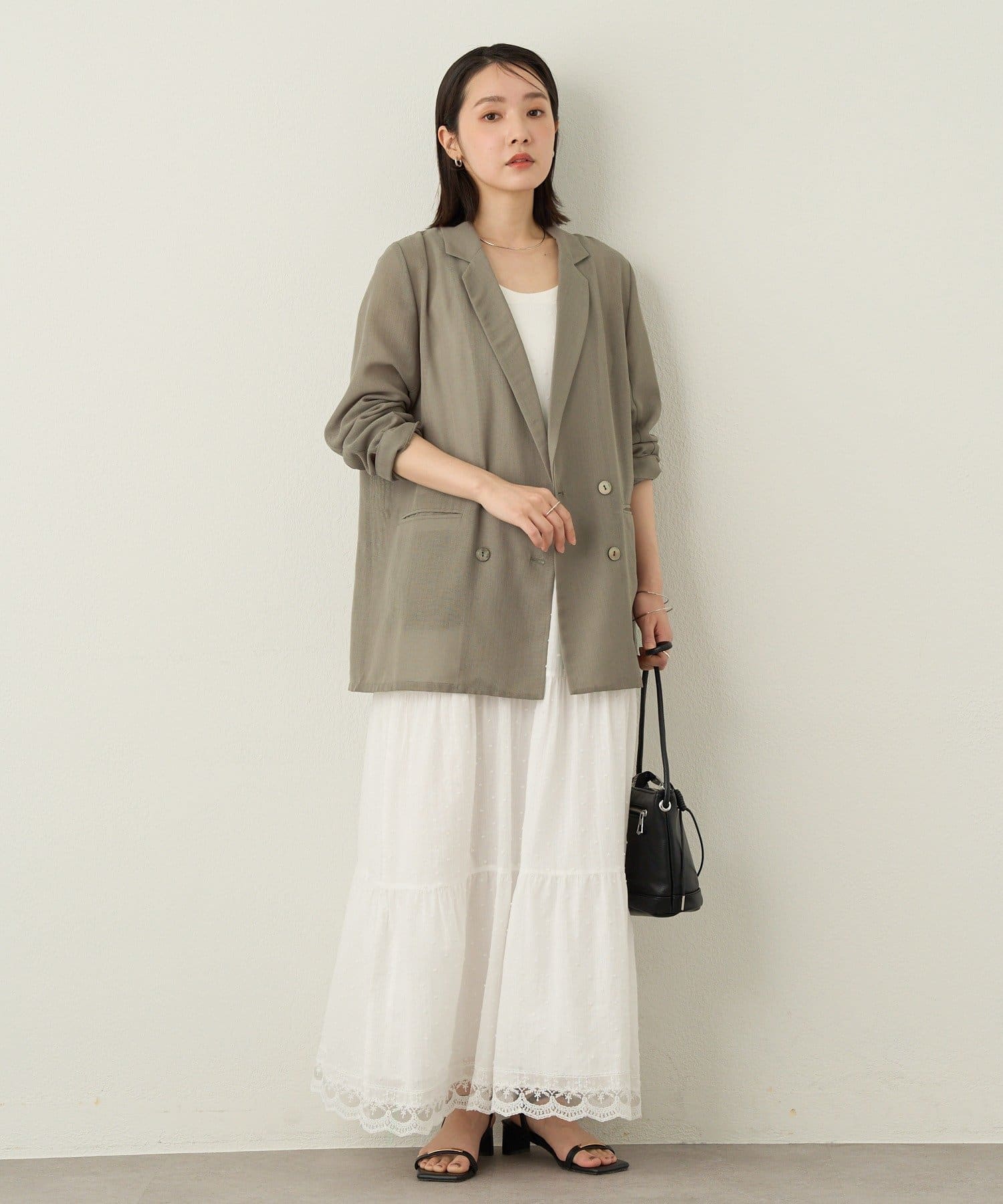 ・さり気ないドット柄と裾のフリルが程よい甘さをプラスしてくれます。