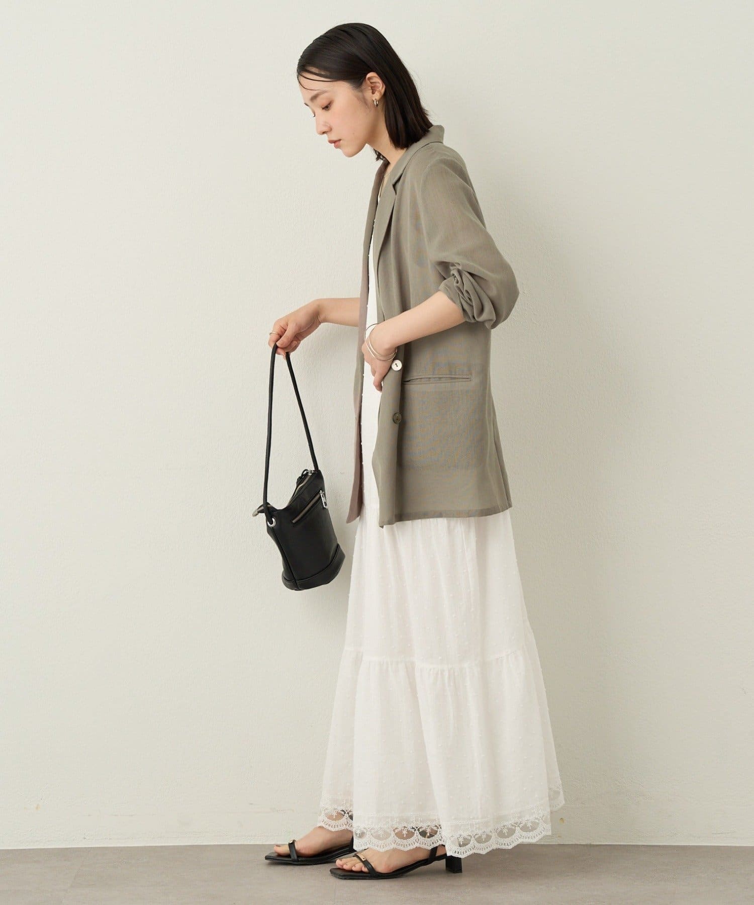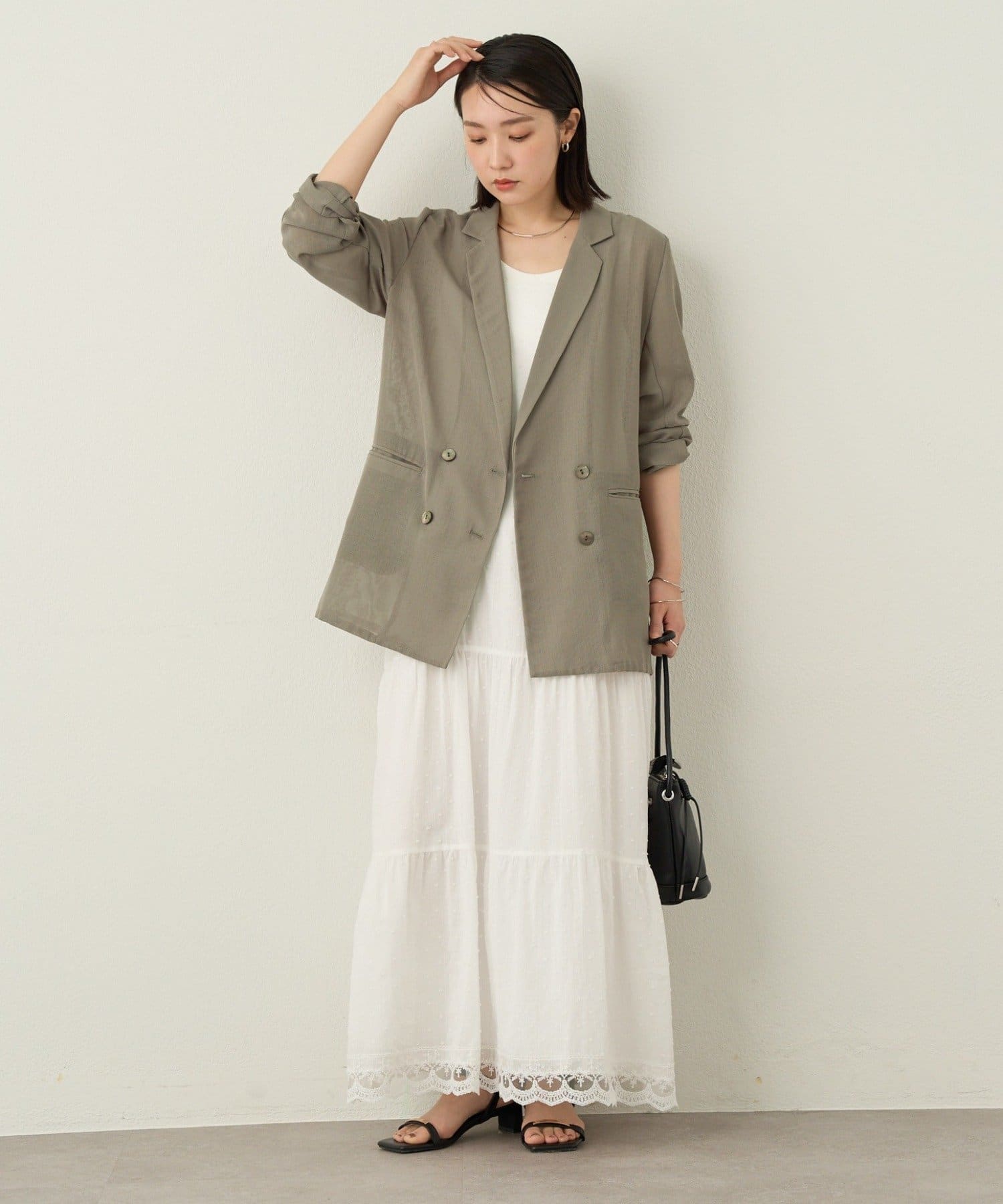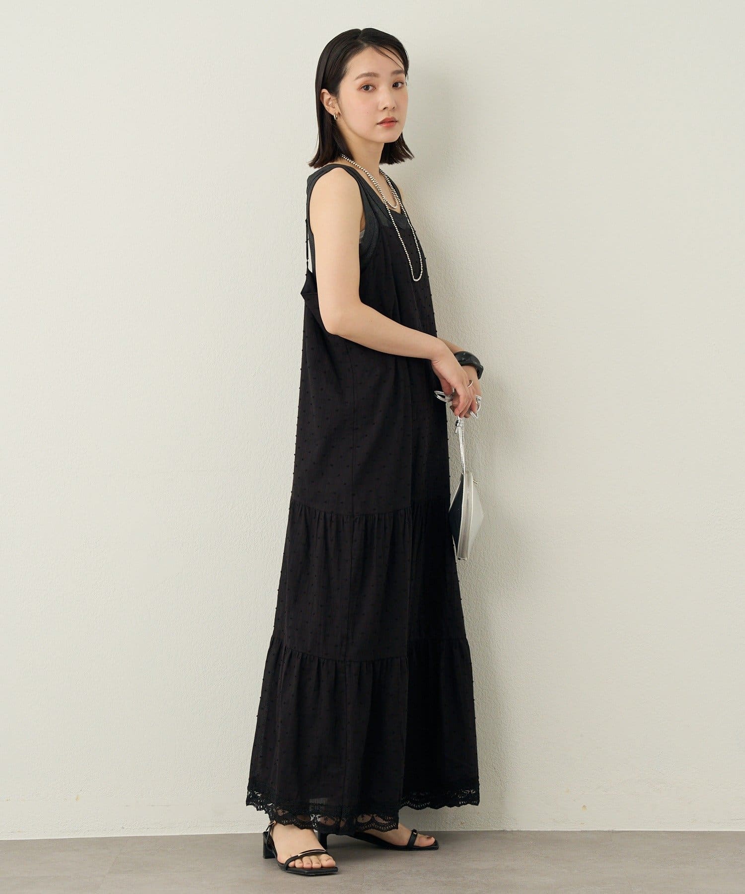 ・たっぷりとしたボリューム感のティアードワンピース。