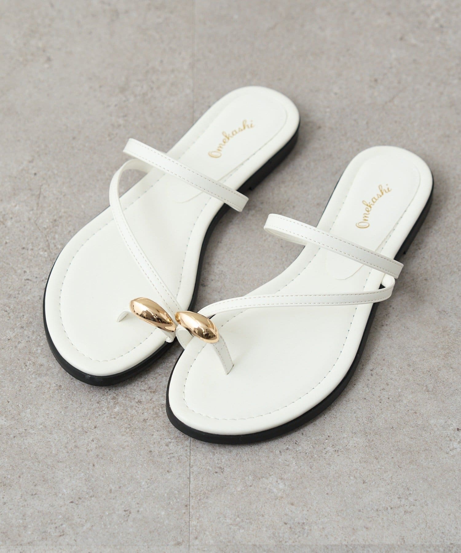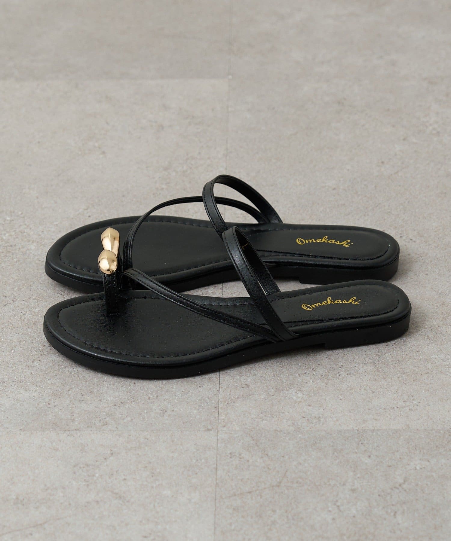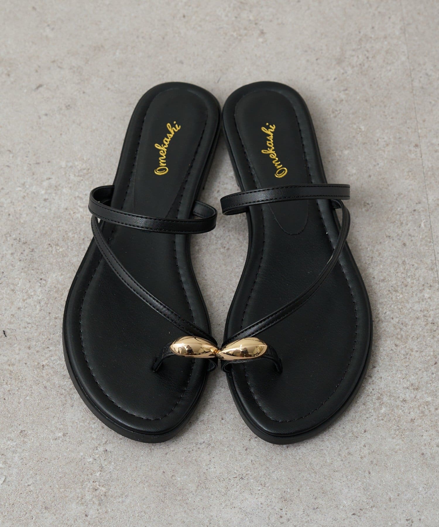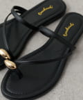 ・シンプルながらもセンターのメタルプレートが目を惹くサンダル。