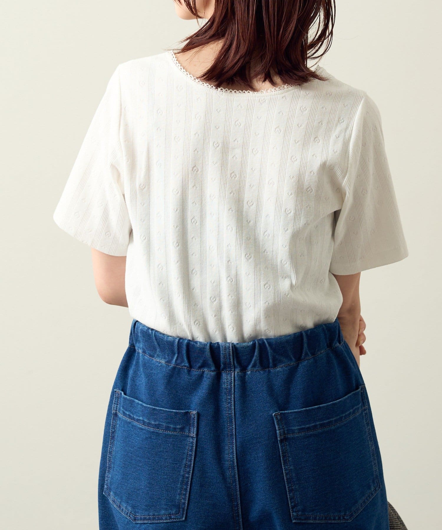 ・伸縮性と通気性に優れた針抜き生地を使用。
