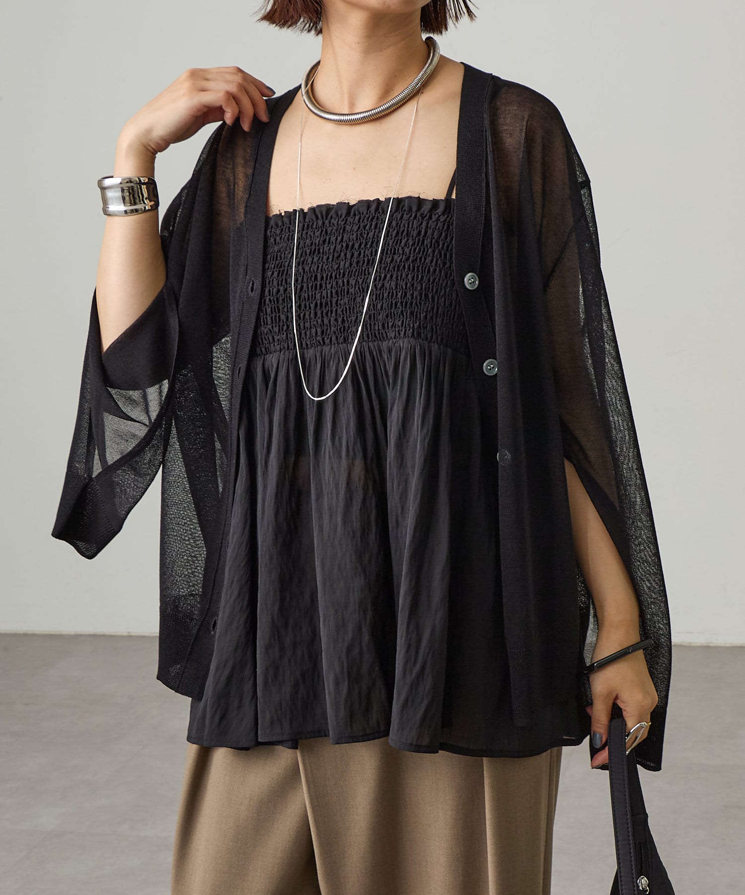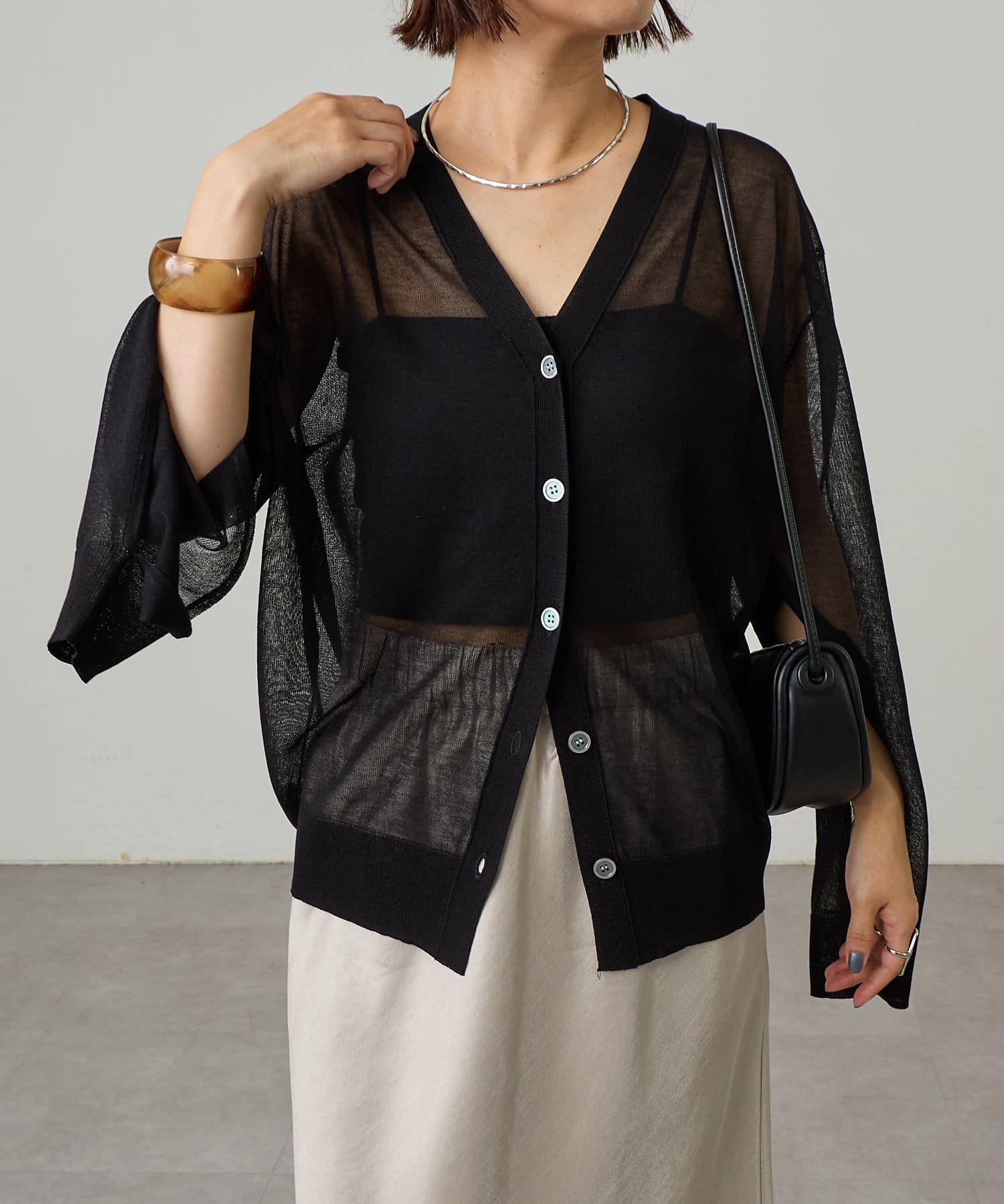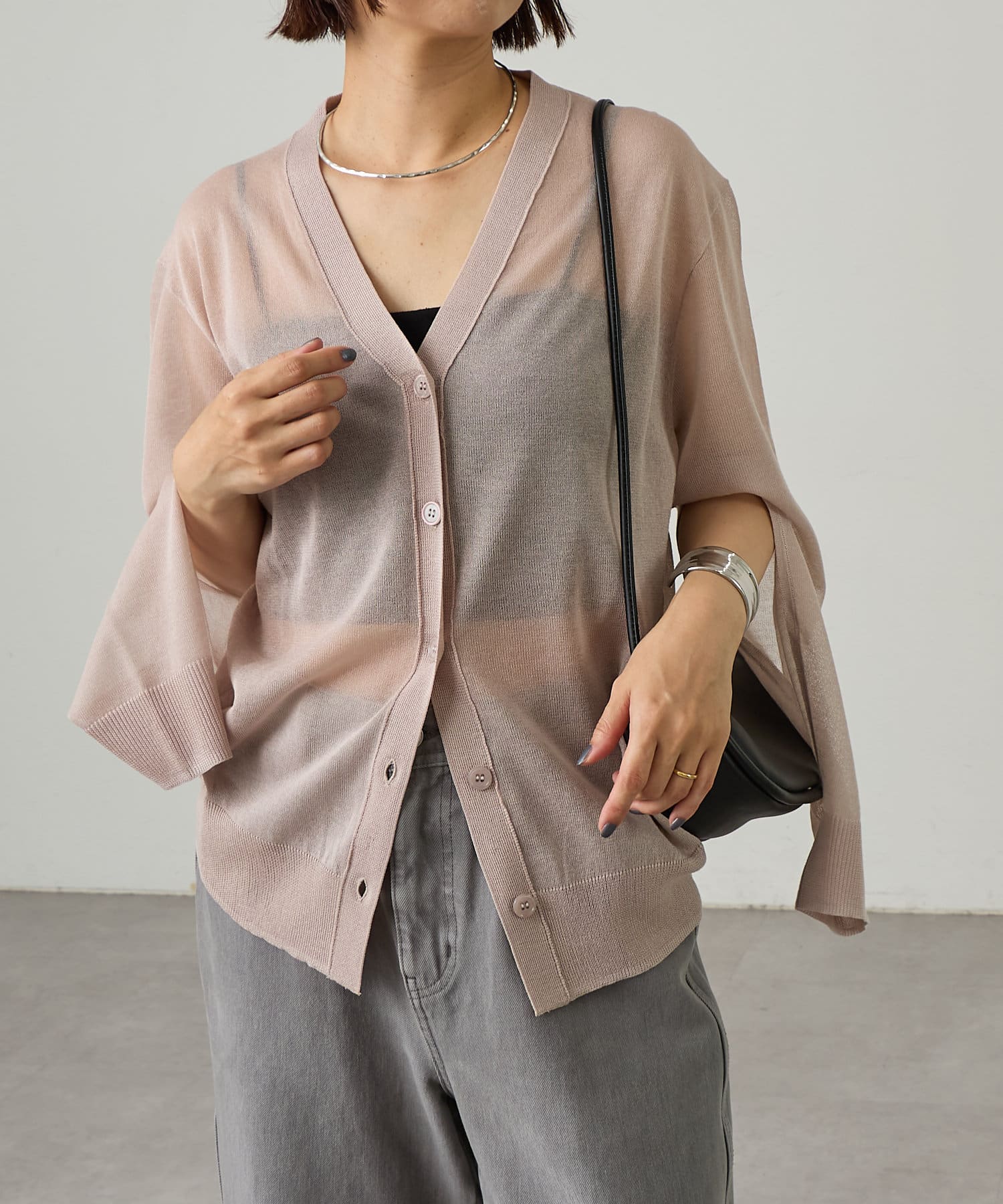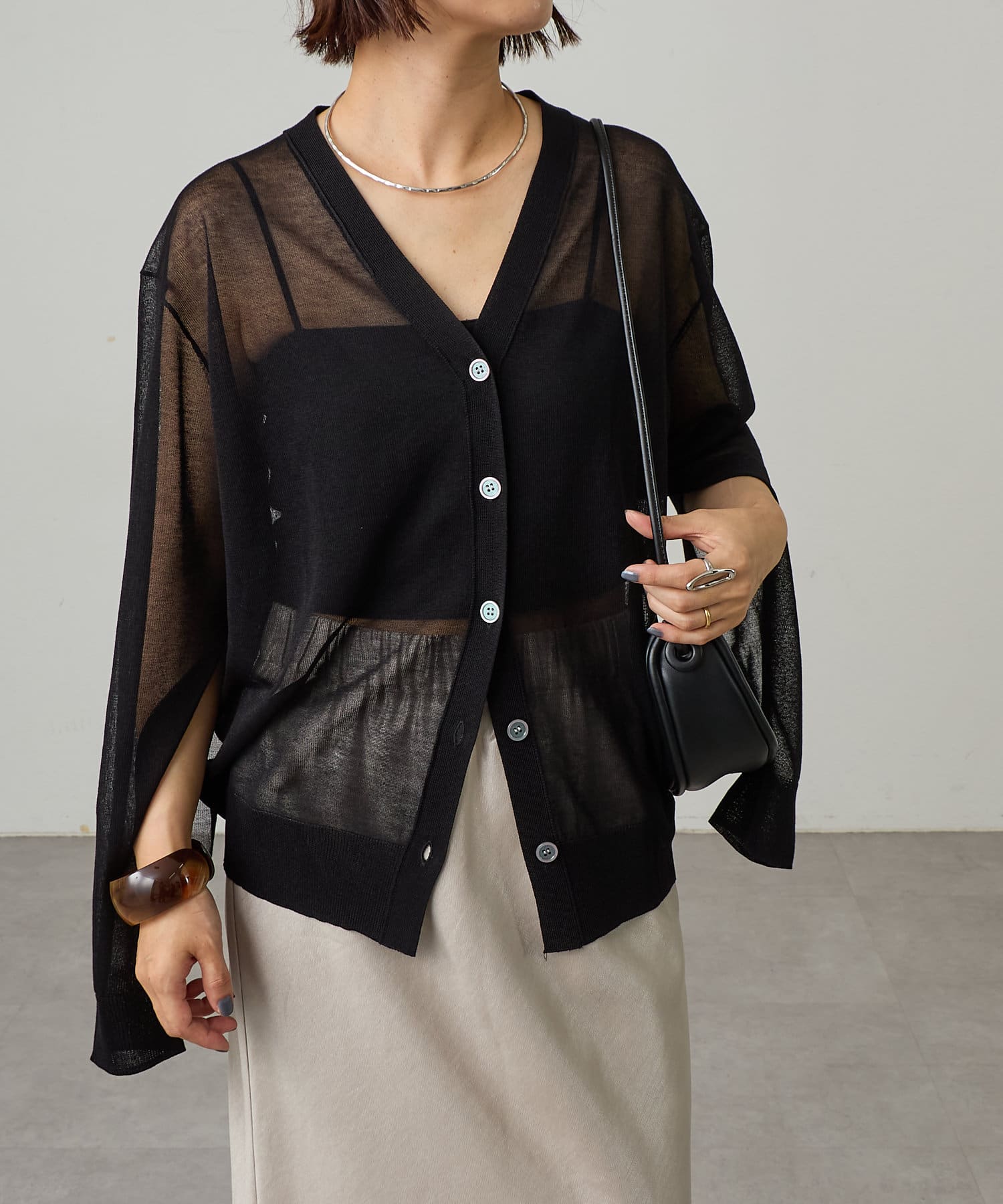 涼やかなシアー感が魅力のスリットカーディガン