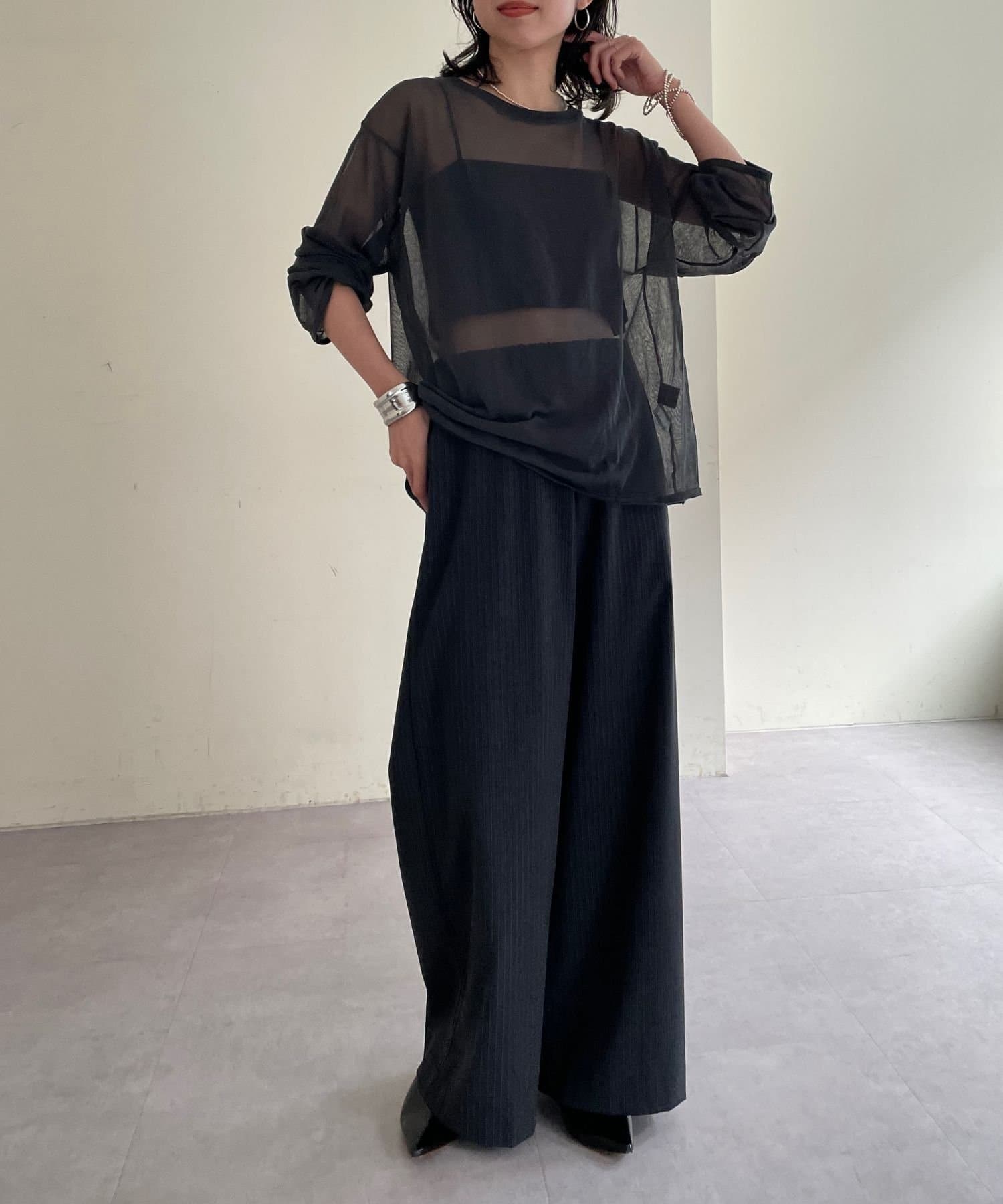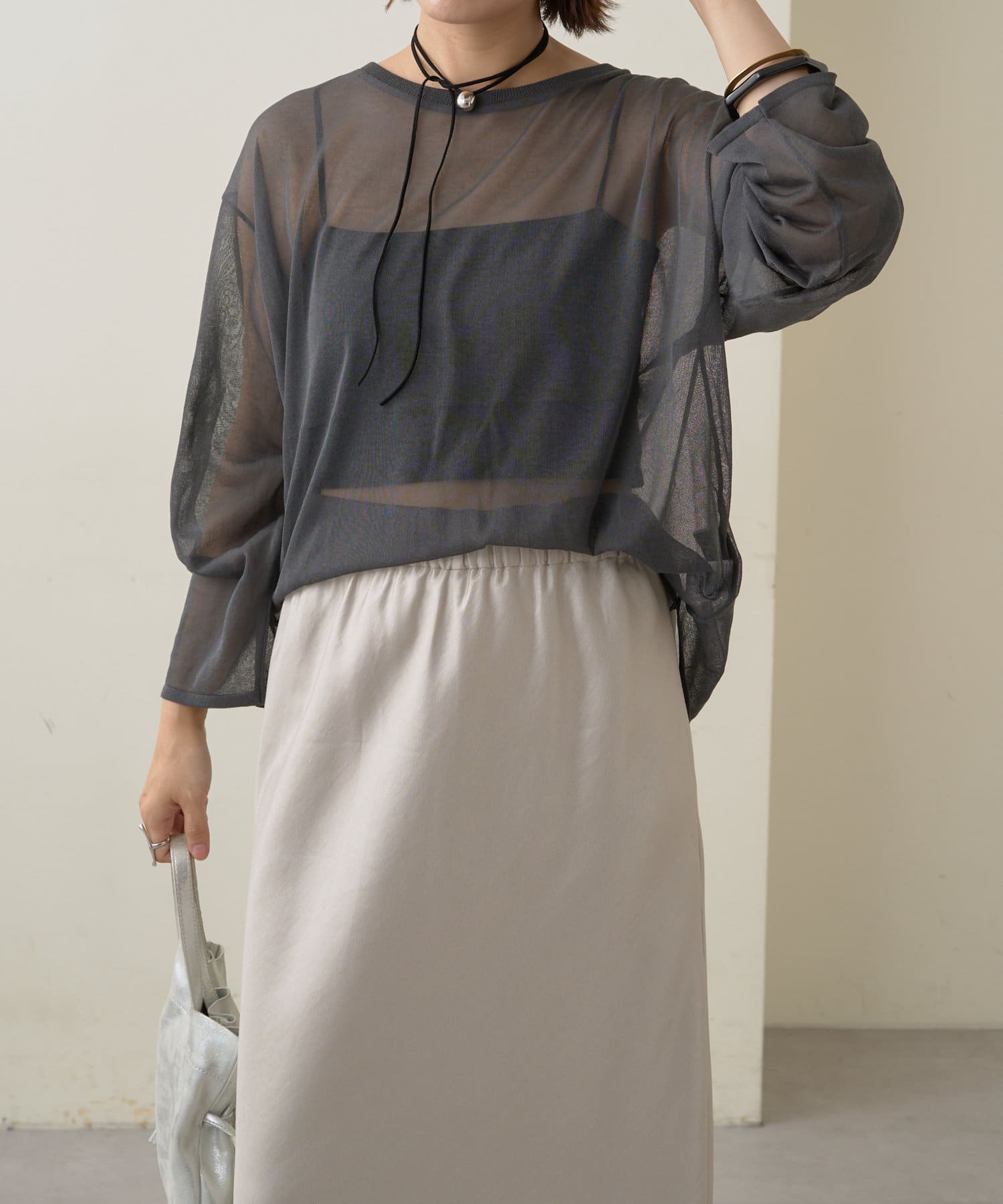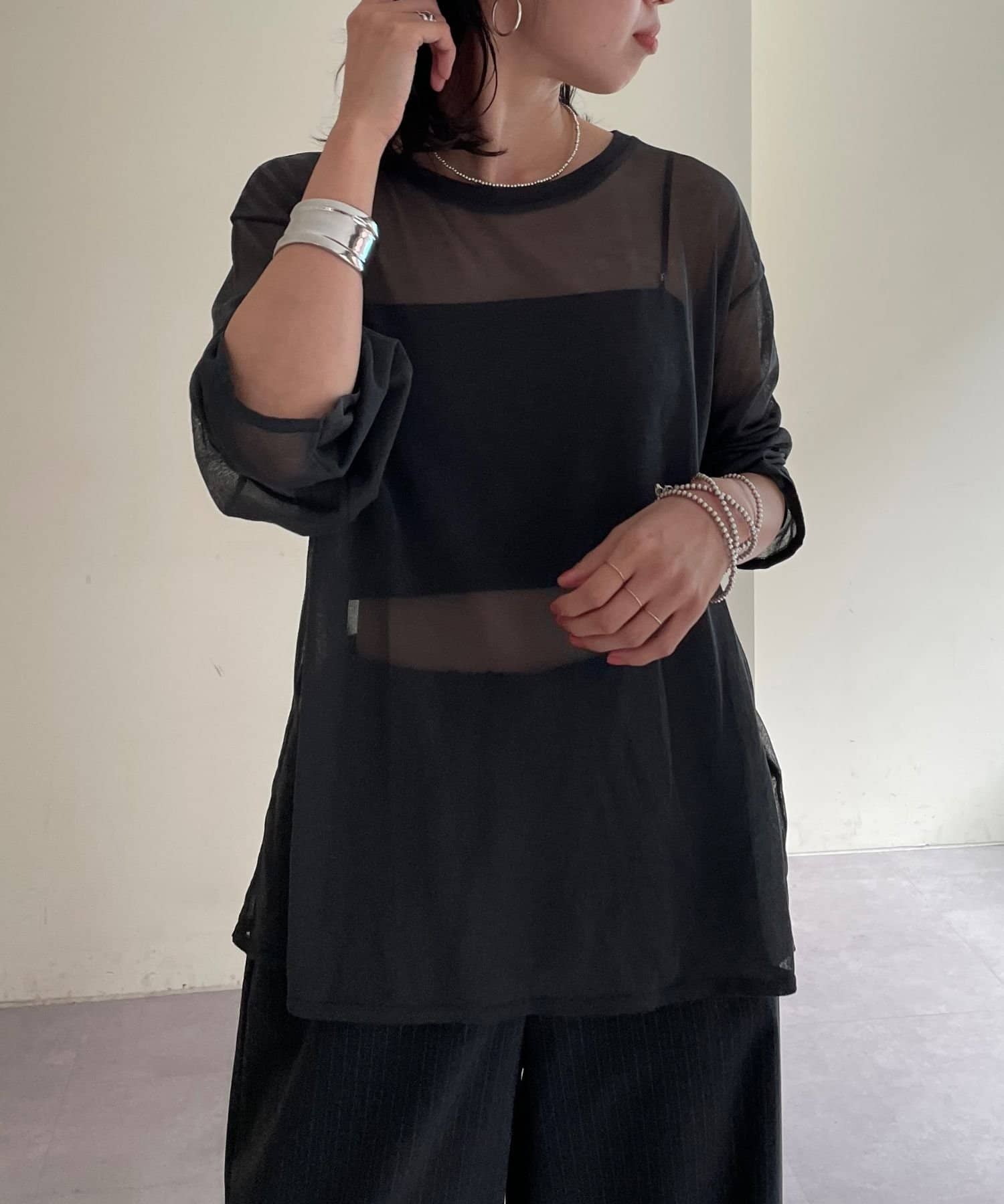 ・シアー感を活かし、レイヤードスタイルが楽しめるアイテム。