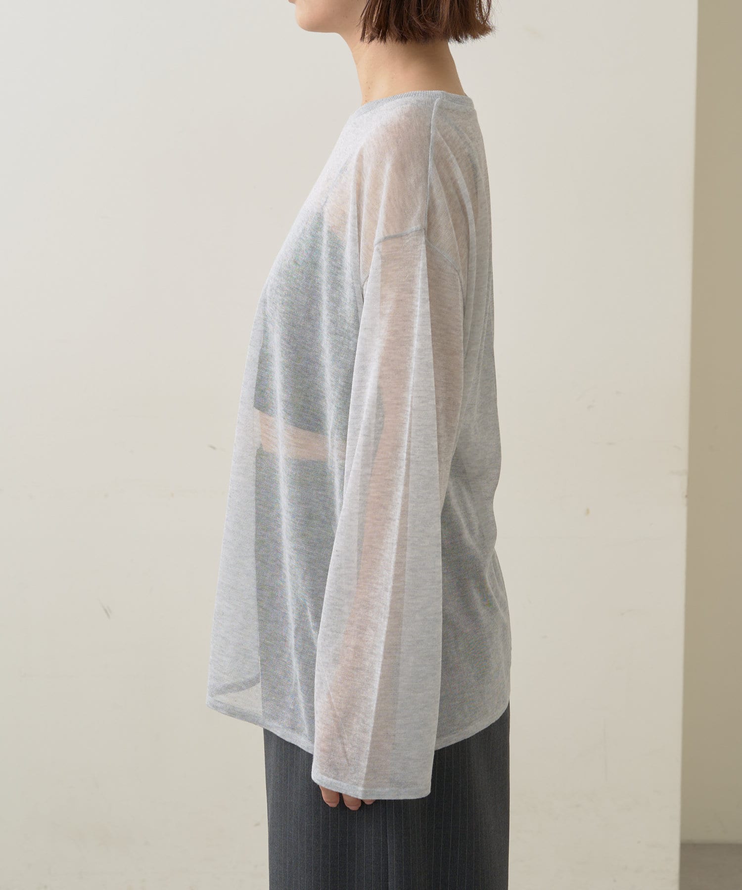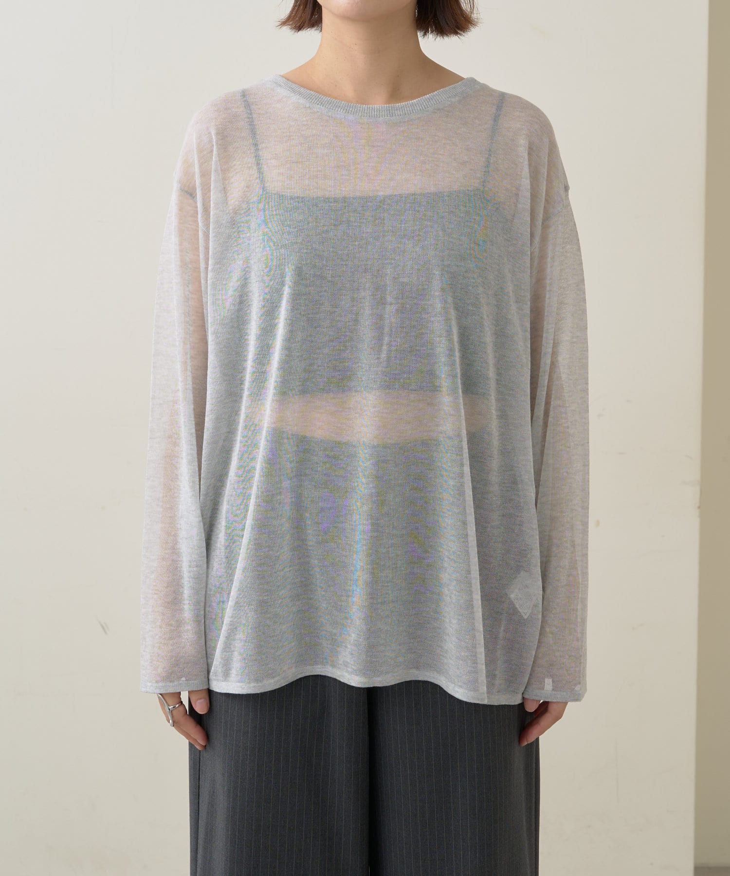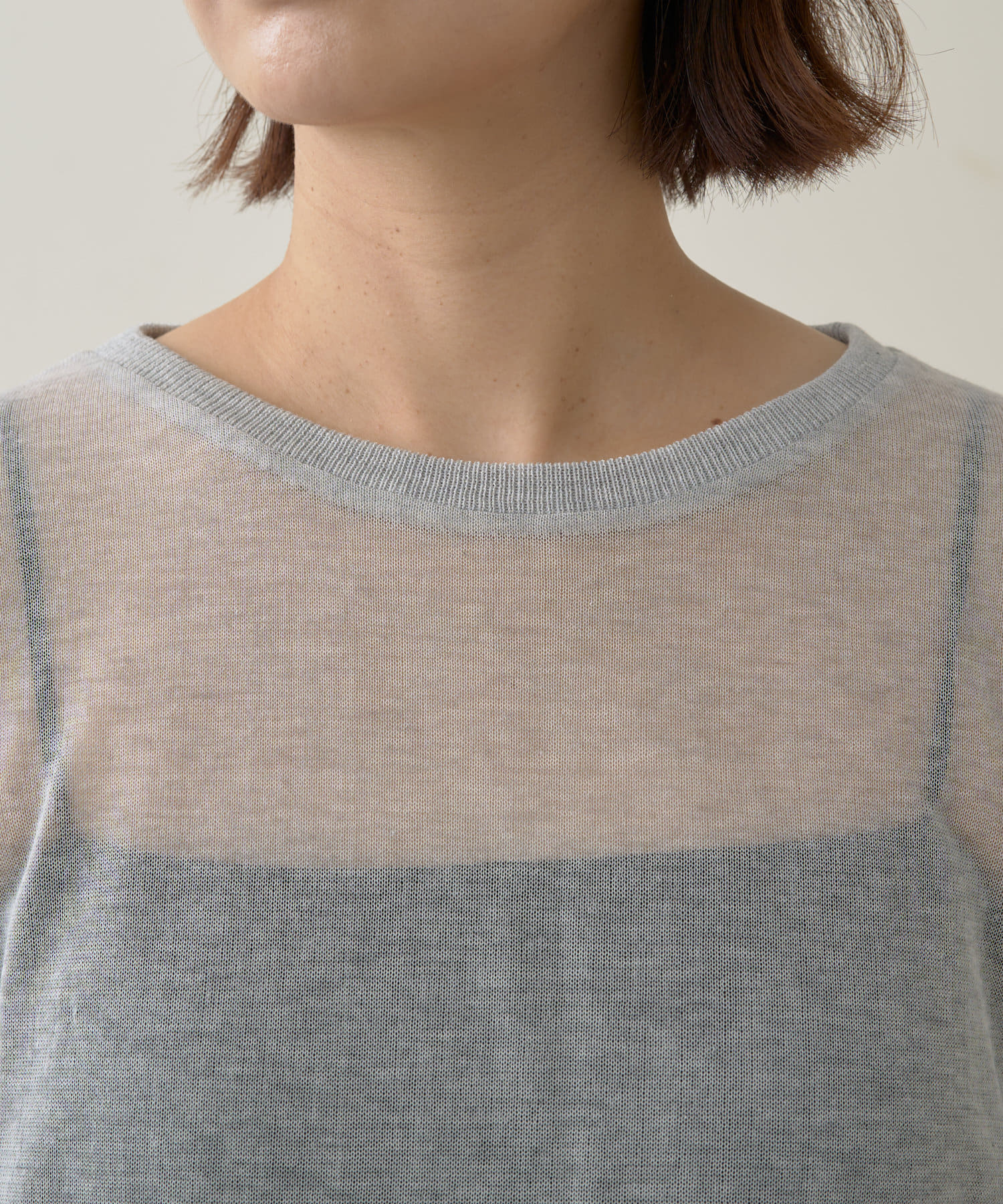 清涼感のあるシンプルベーシックなシアーニットトップス