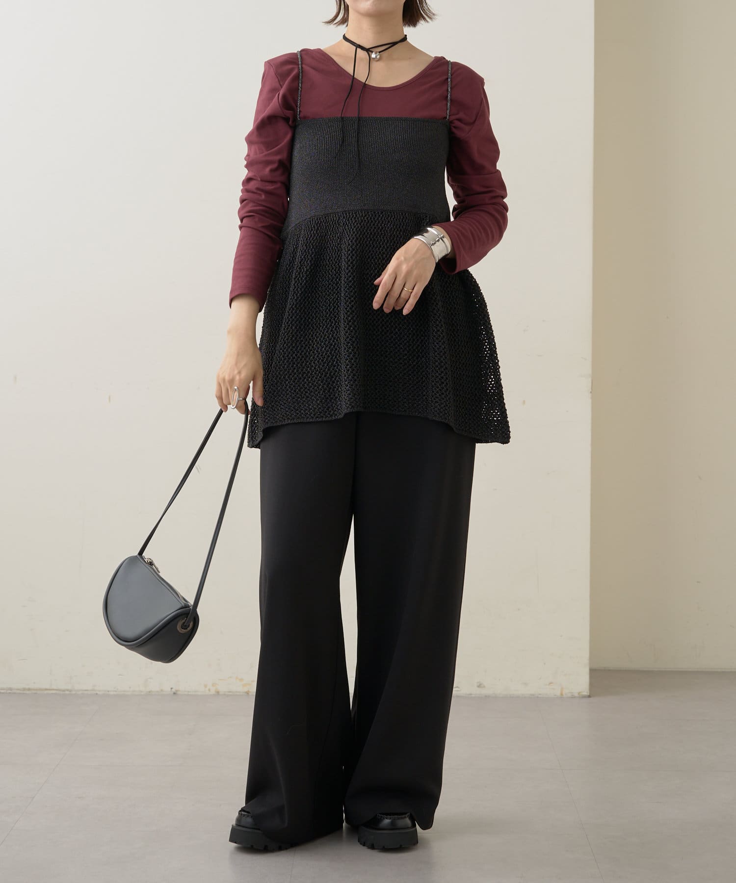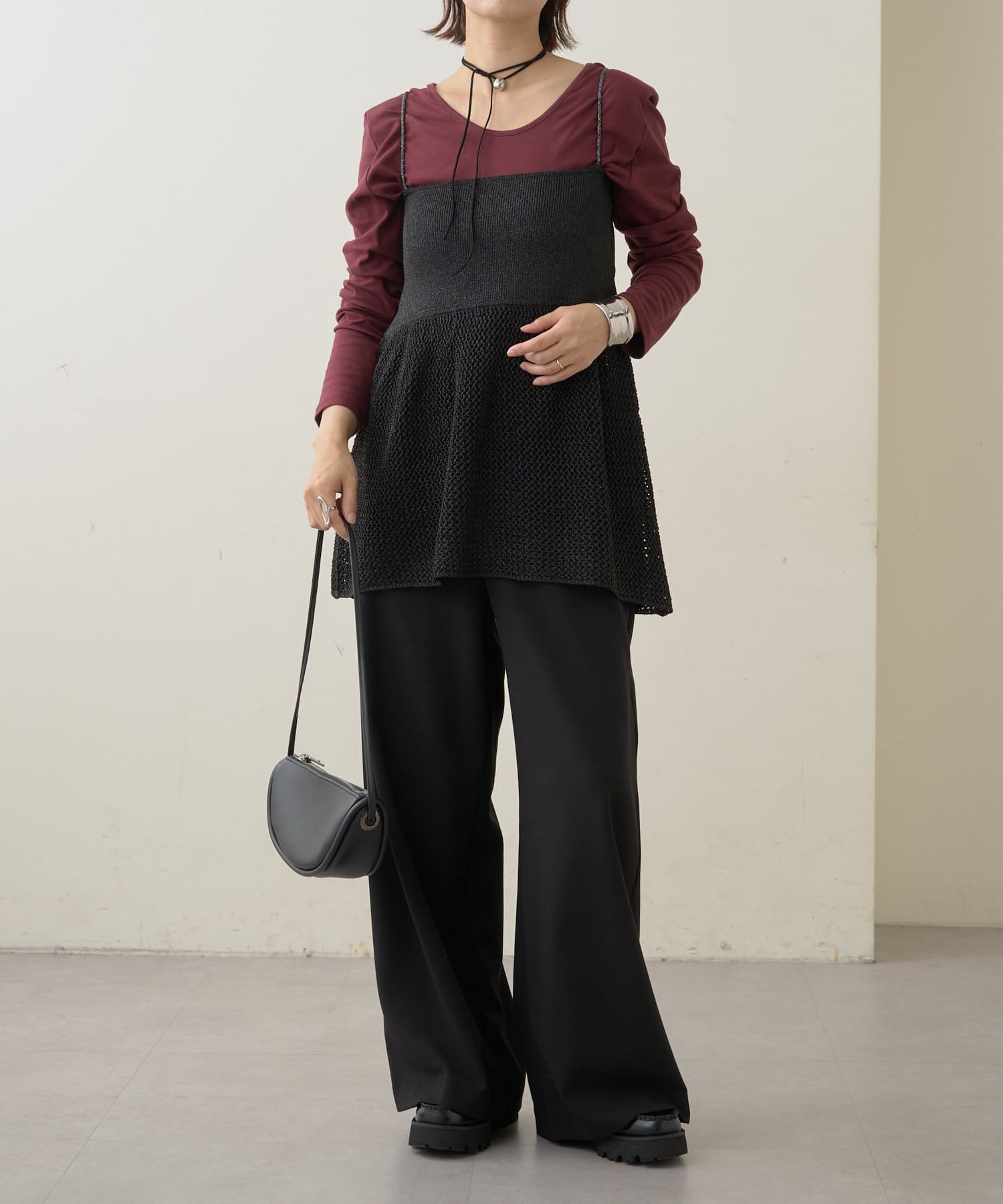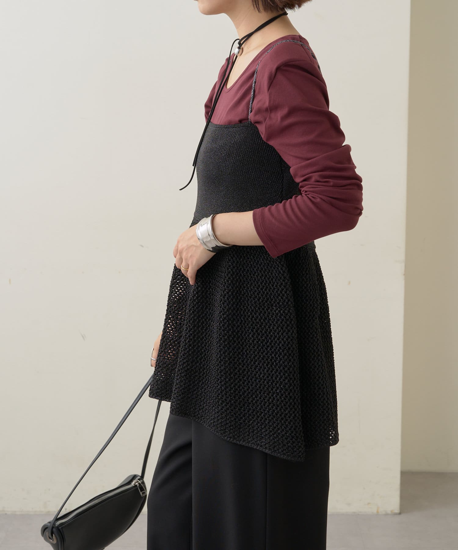 程よいメタリックラメが華やかなニットキャミビスチェ