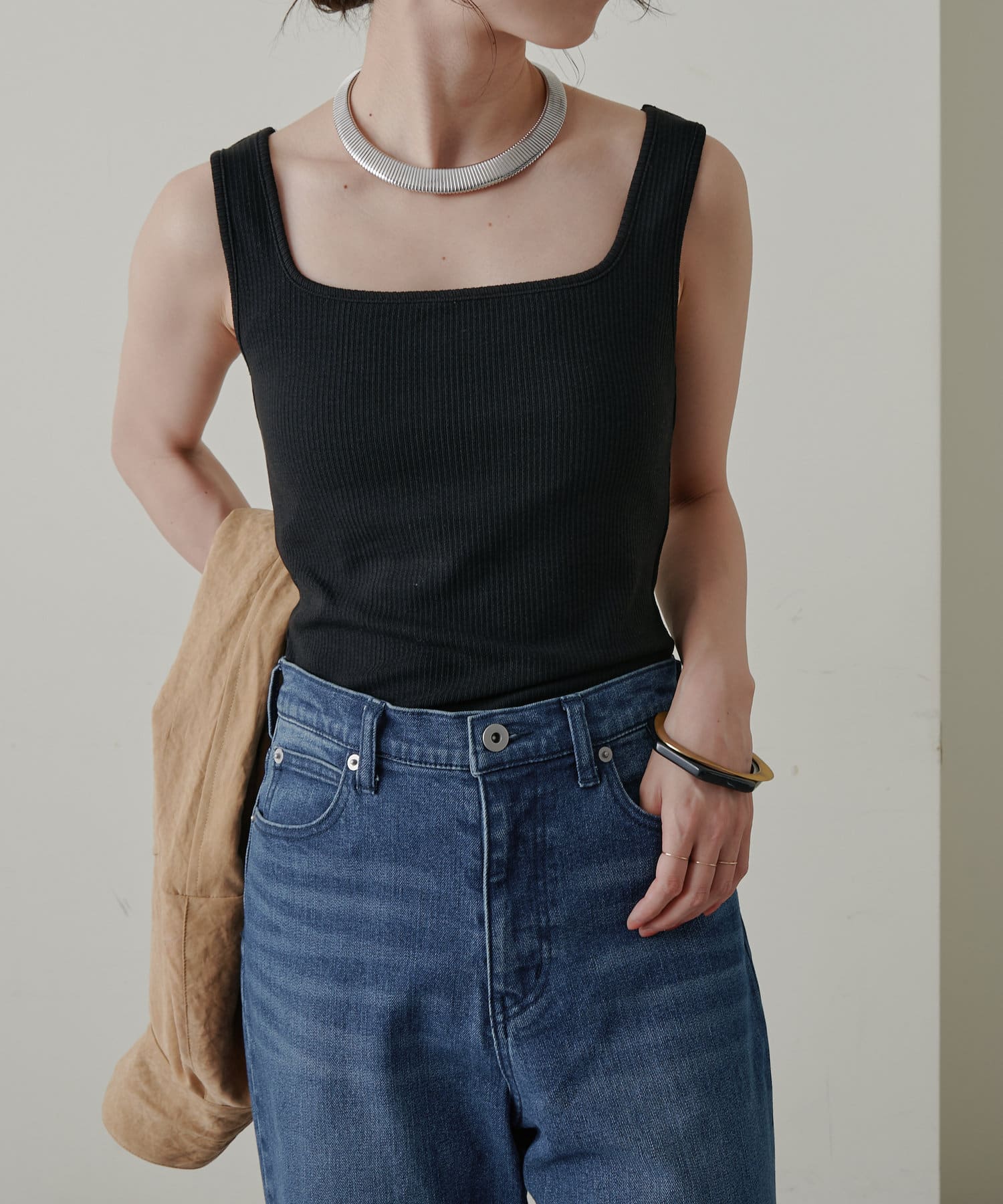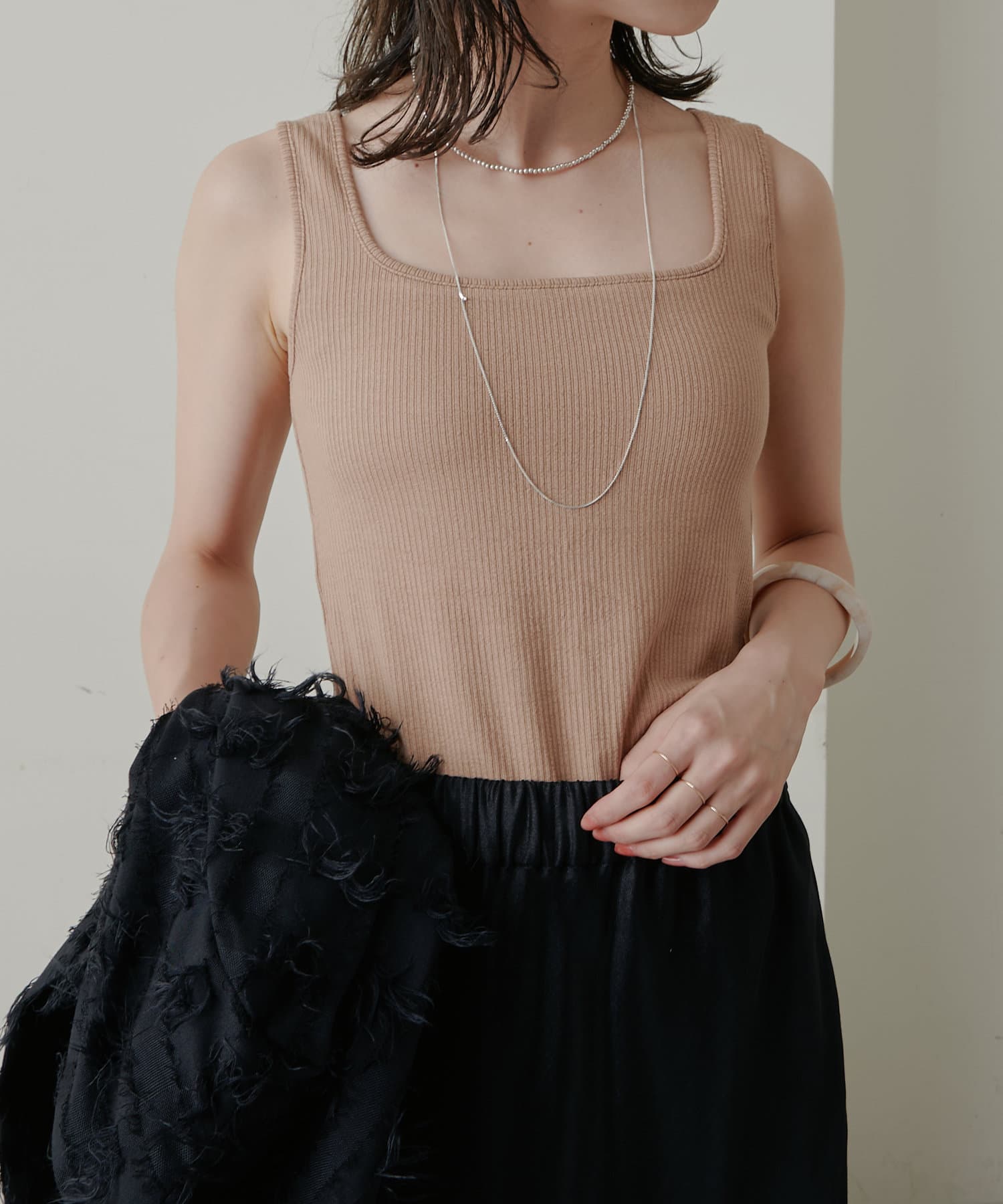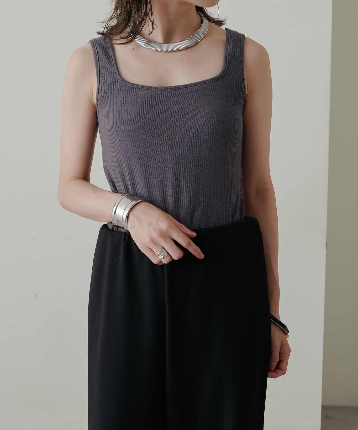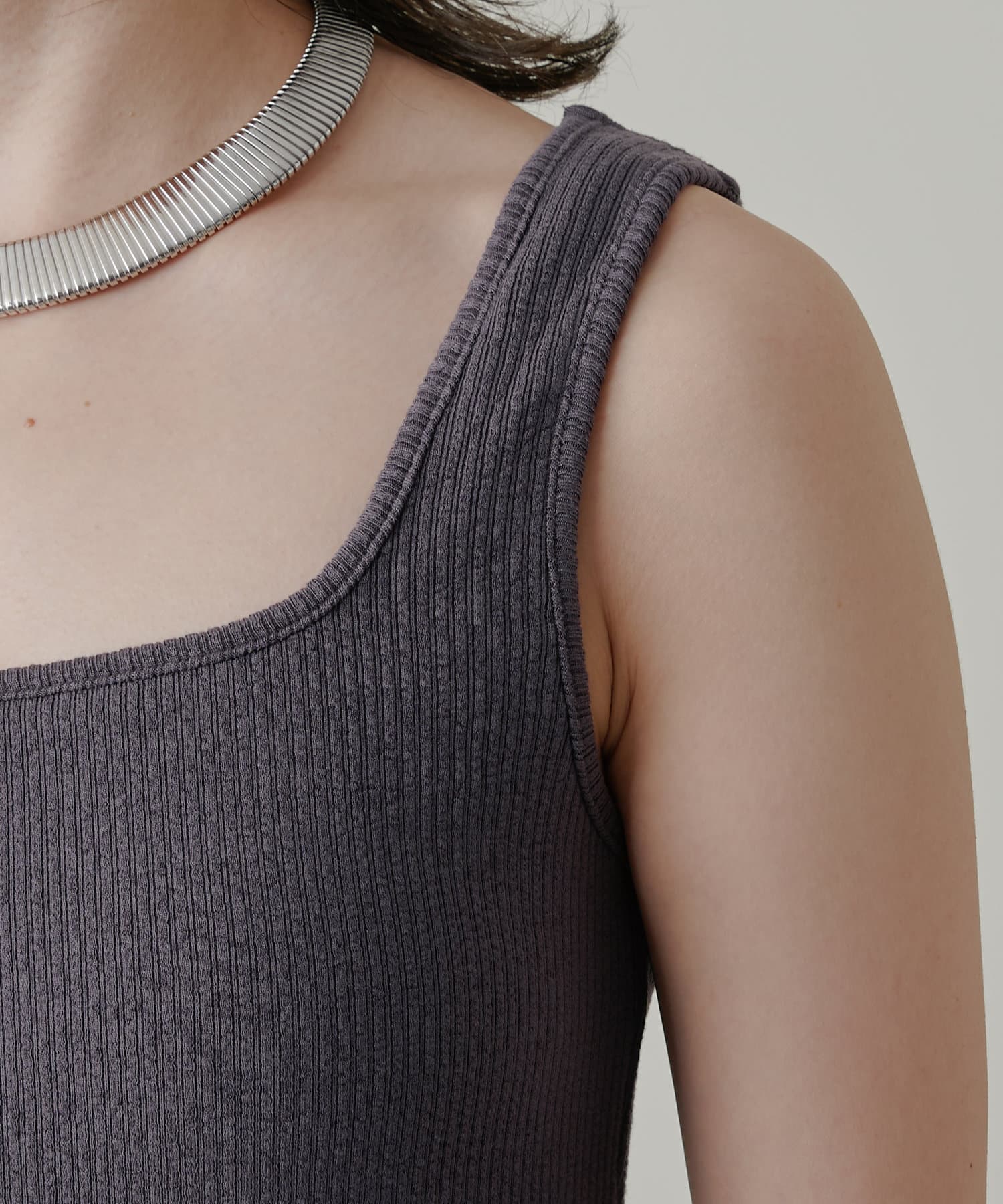 ・デコルテを綺麗に見せてくれるスクエアネックデザインです。