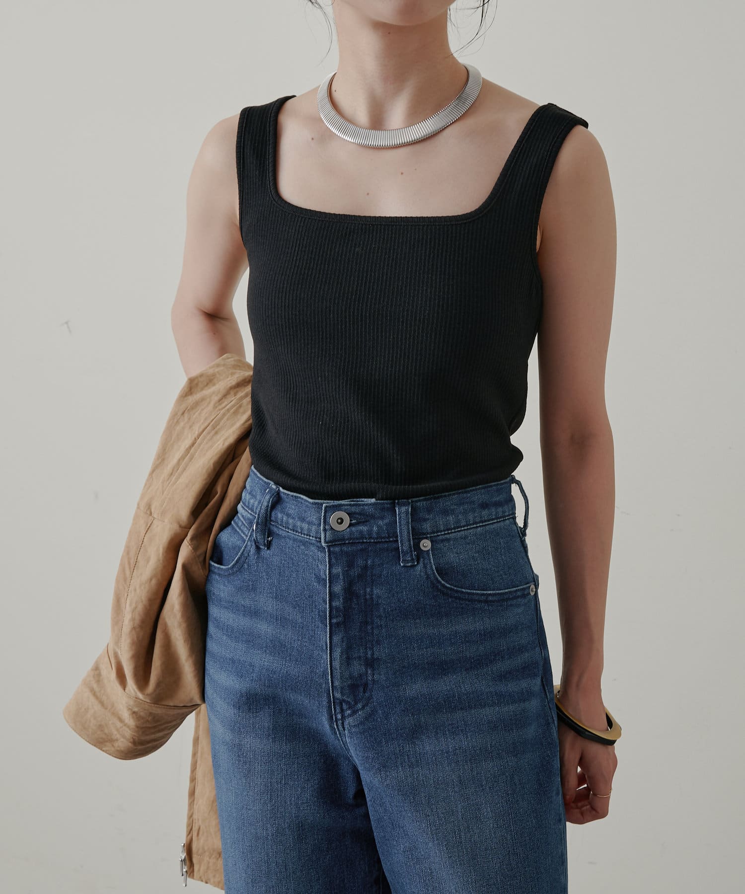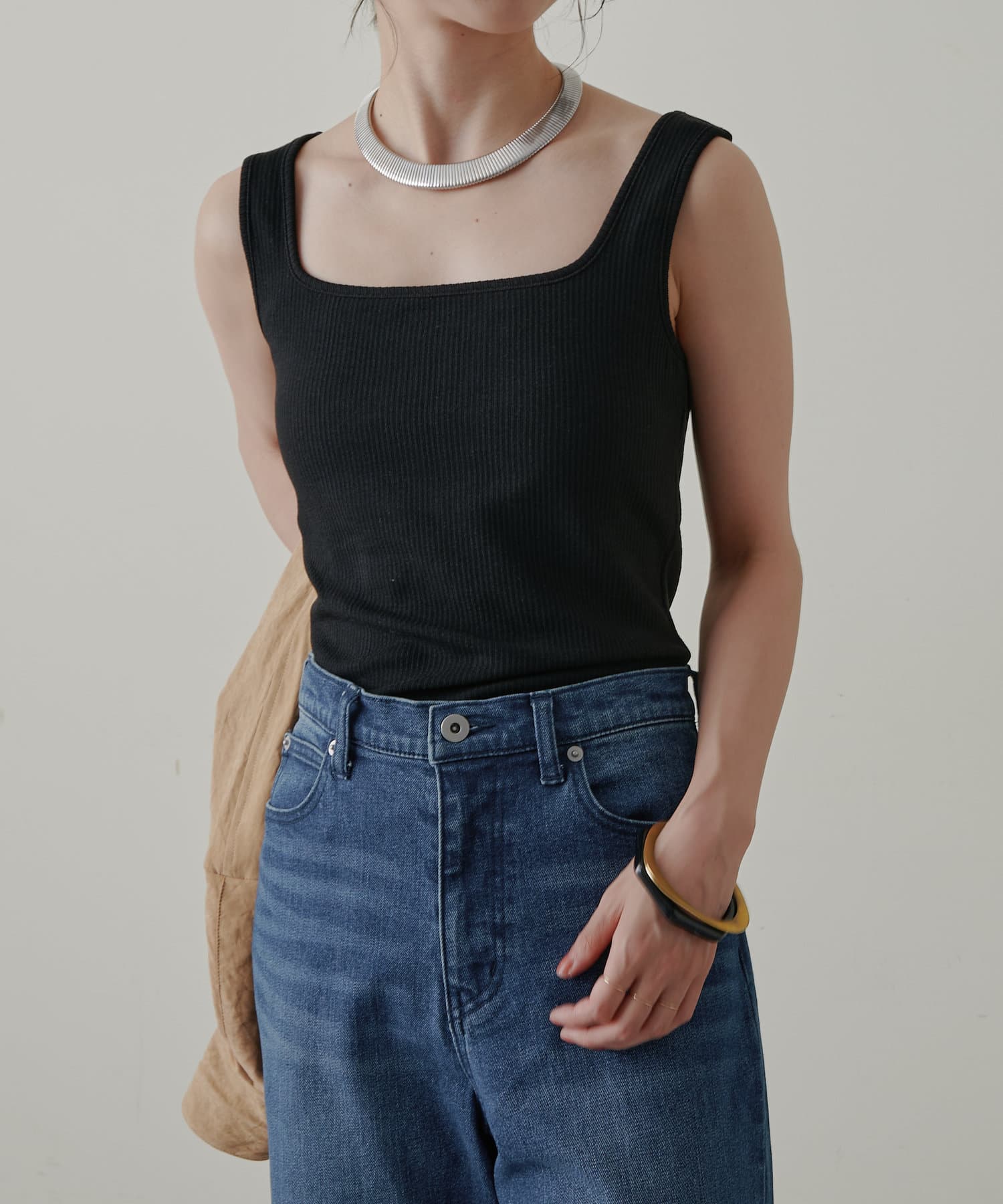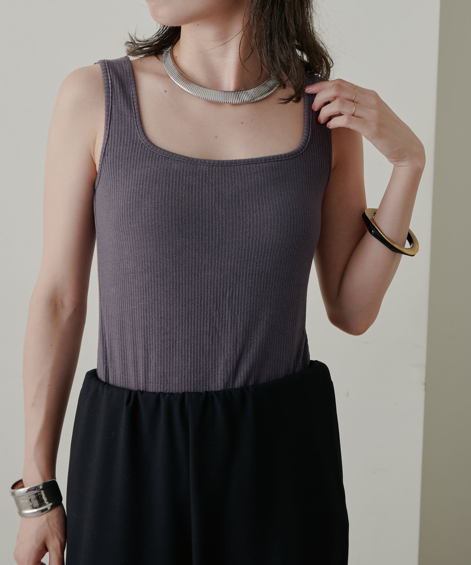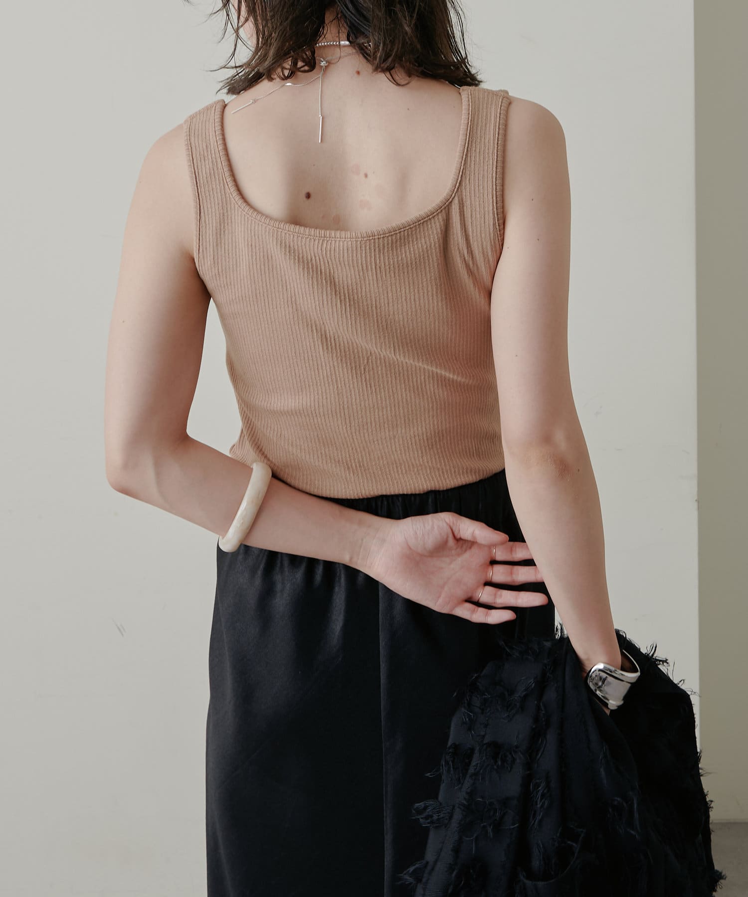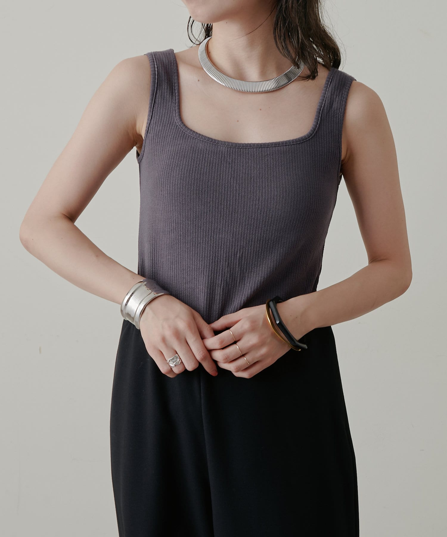 ・デコルテを綺麗に見せてくれるスクエアネックデザインです。