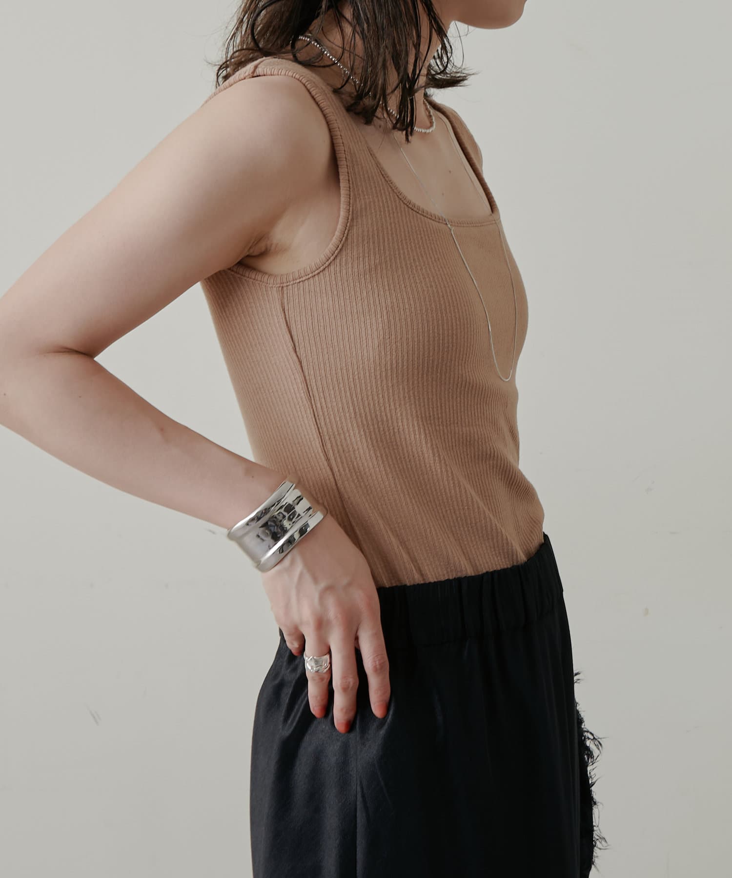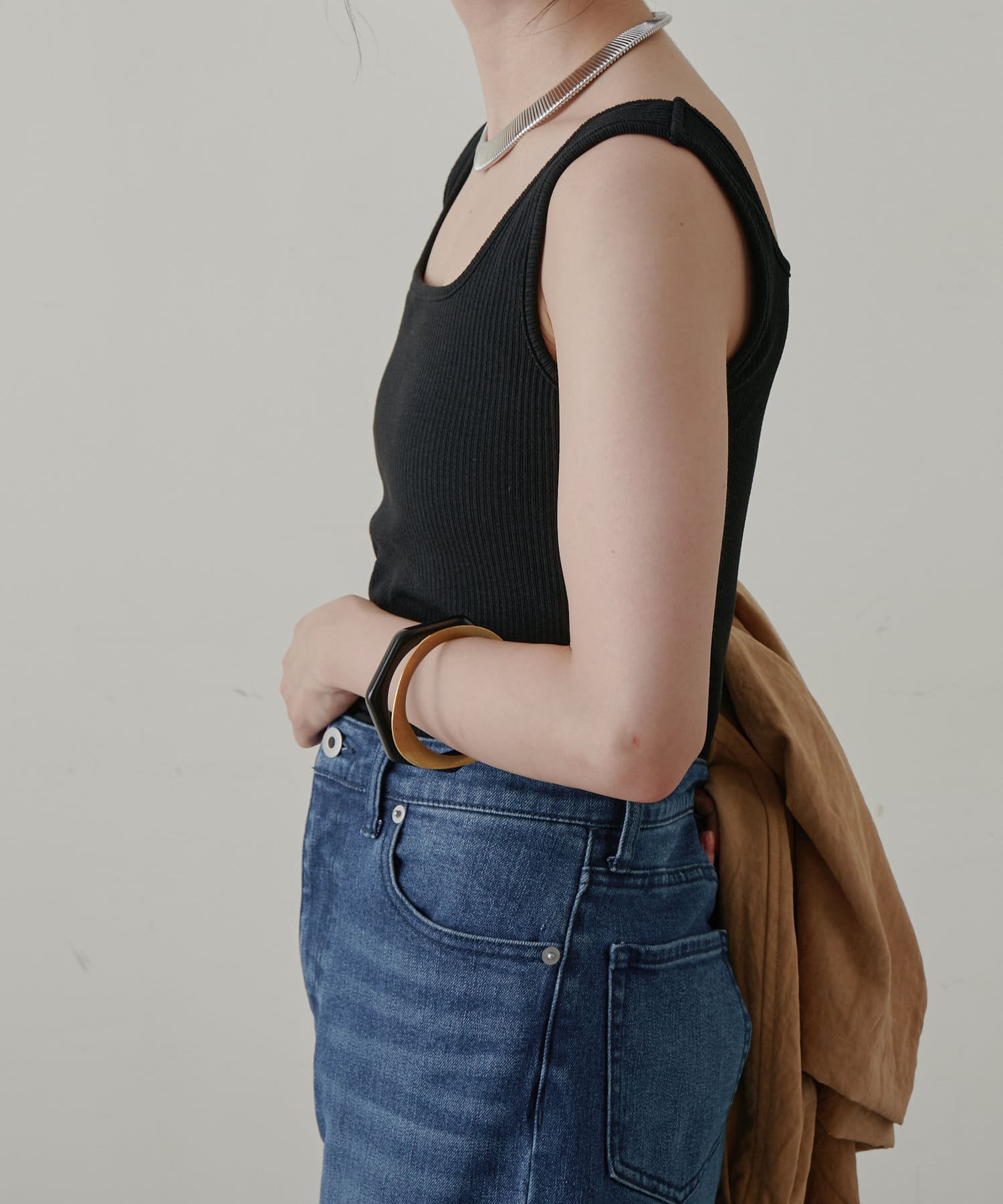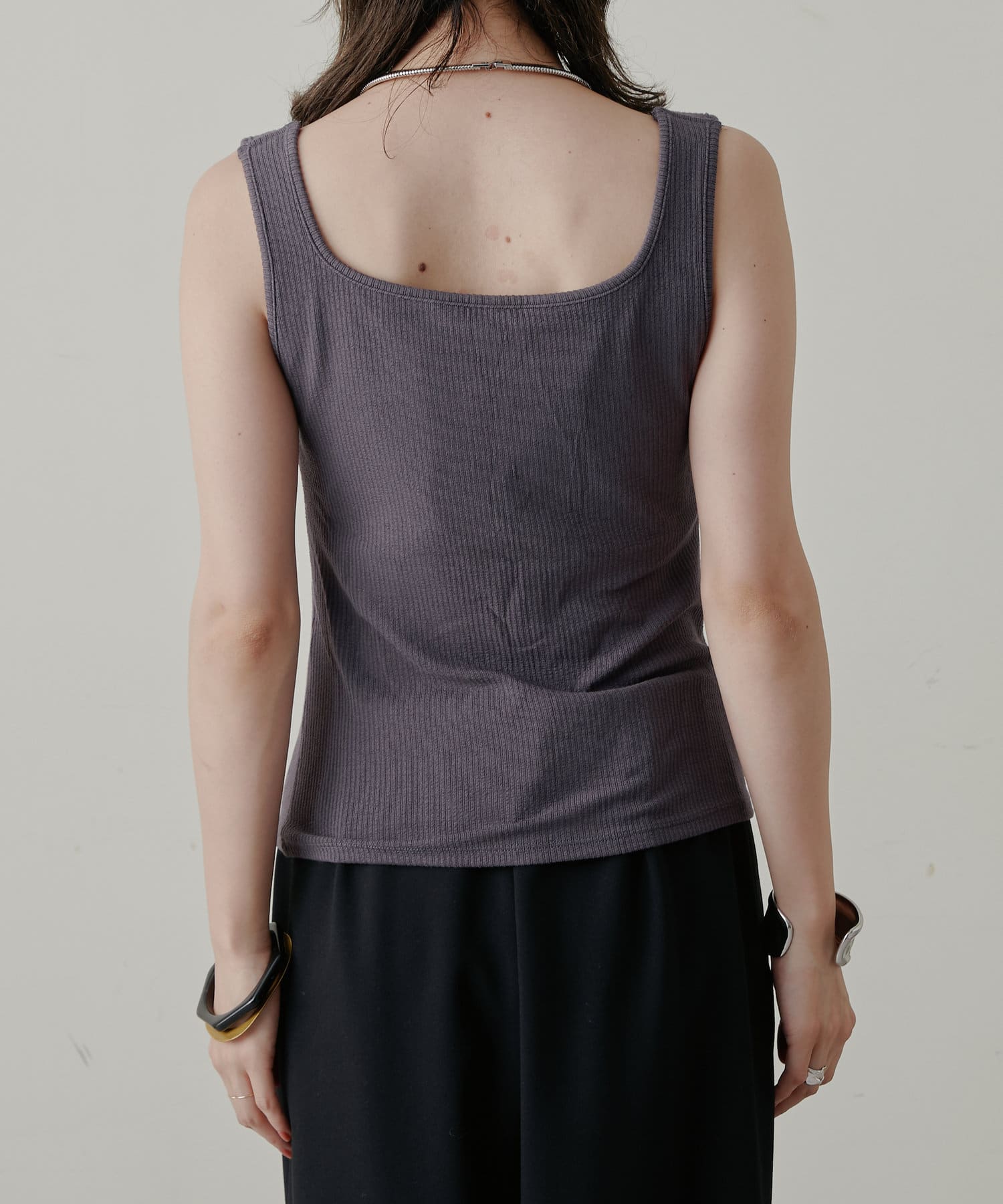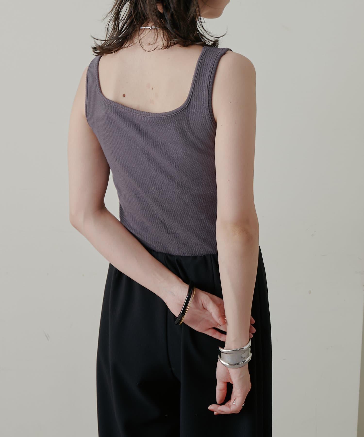 ・デコルテを綺麗に見せてくれるスクエアネックデザインです。