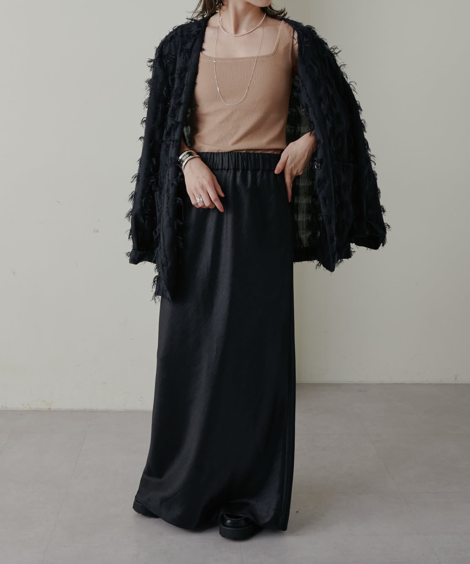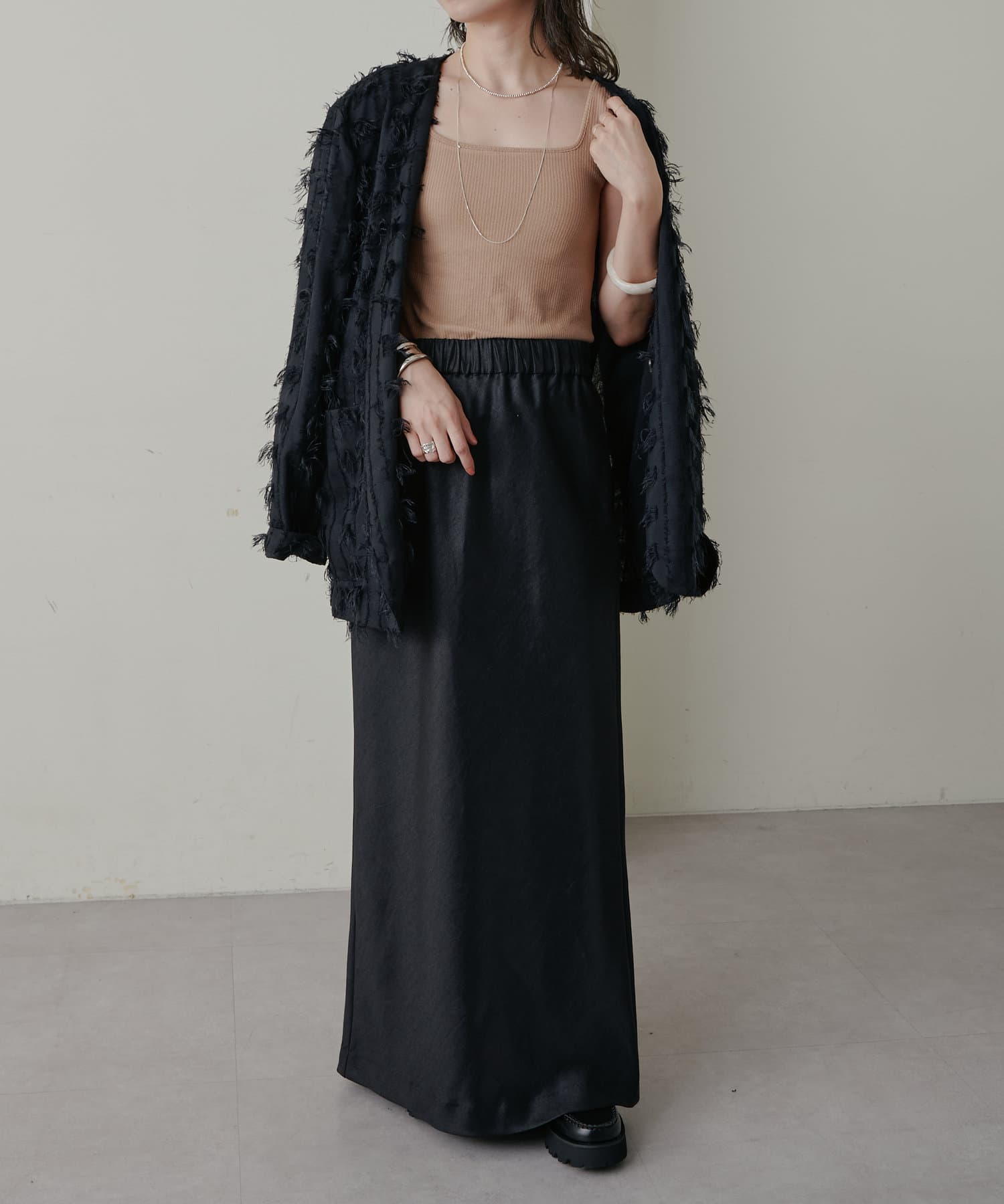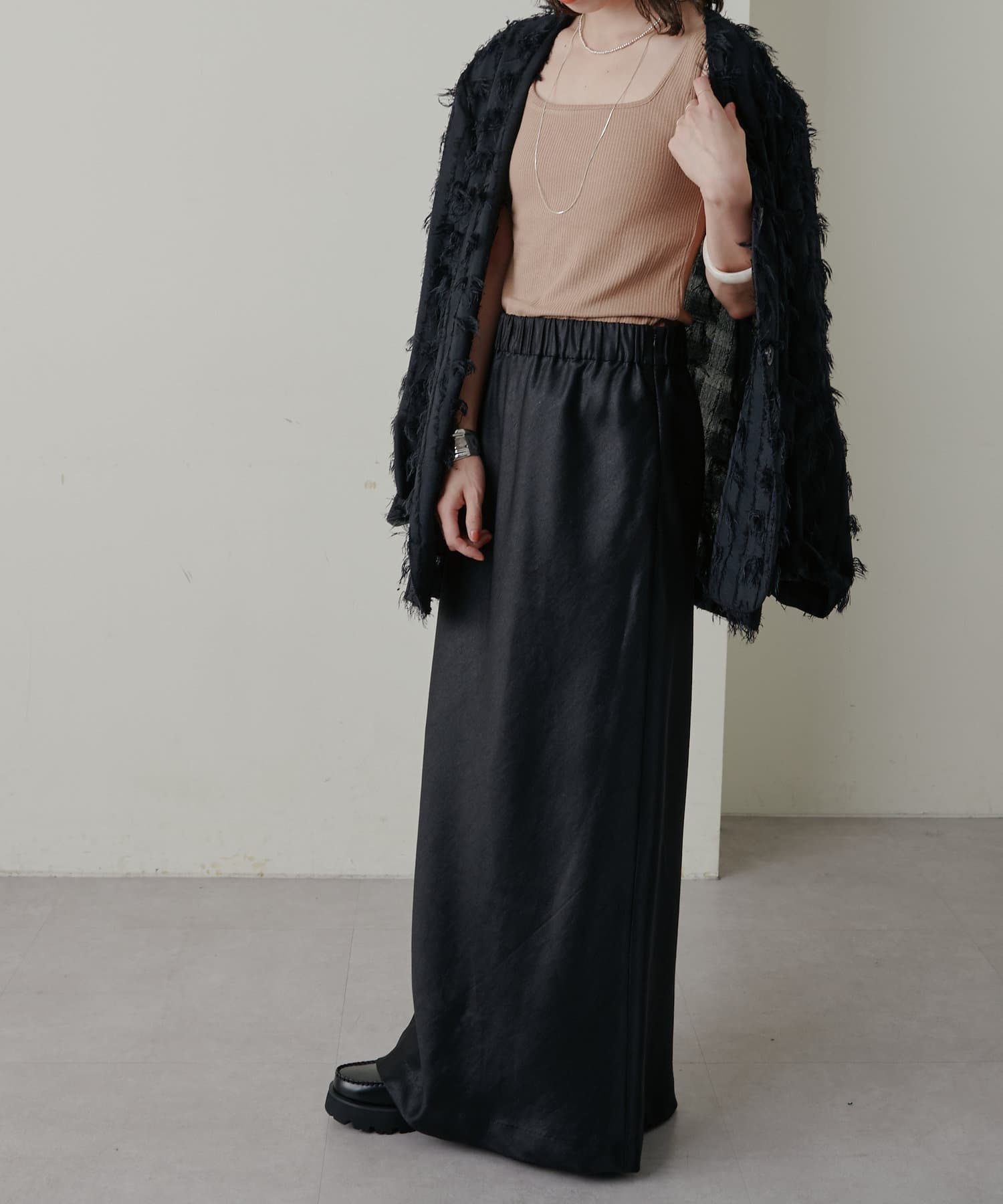 ・伸縮性があり柔らかな素材が優しくボディラインにフィットし、女性らしさを引き立てるシルエットに。
