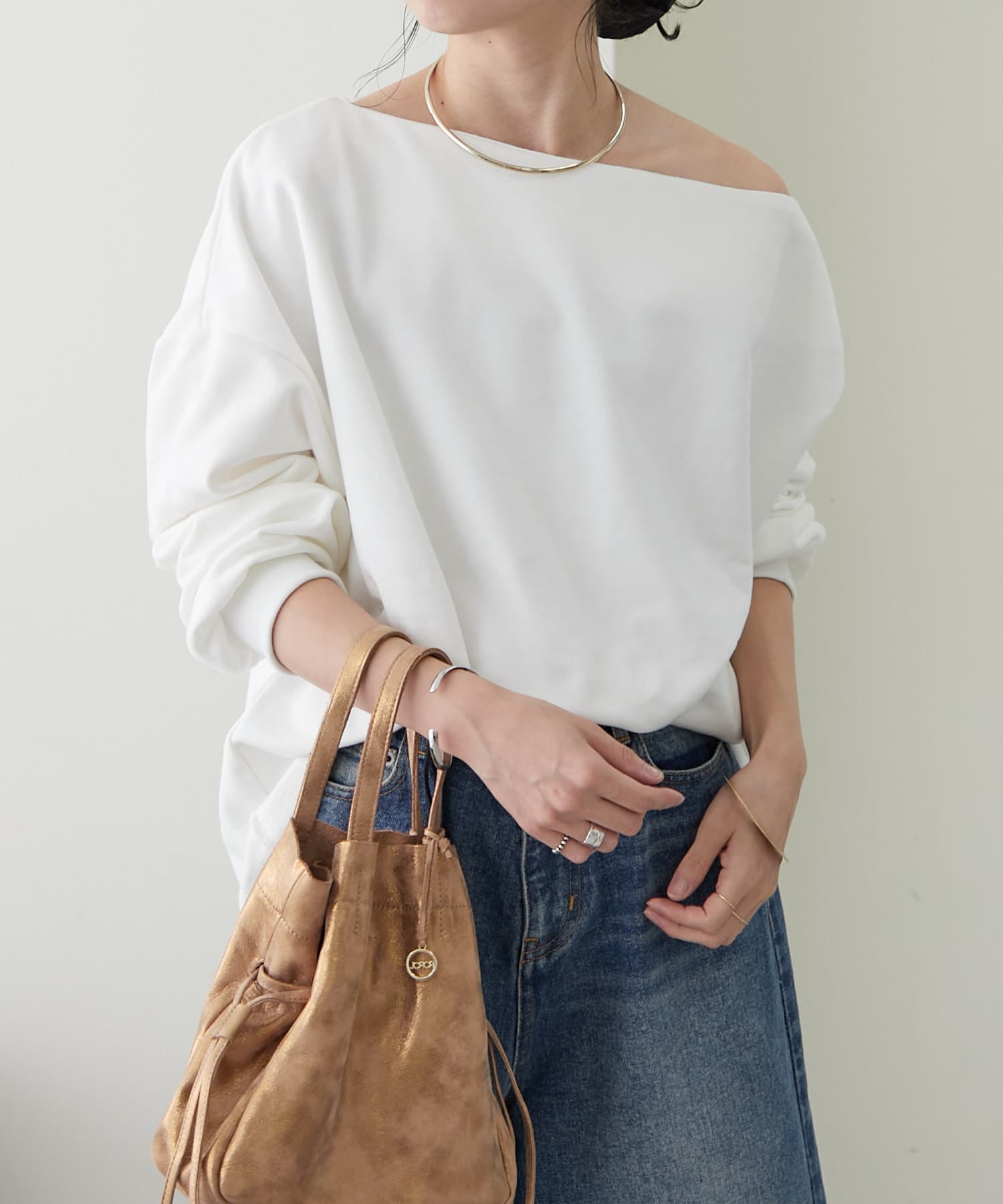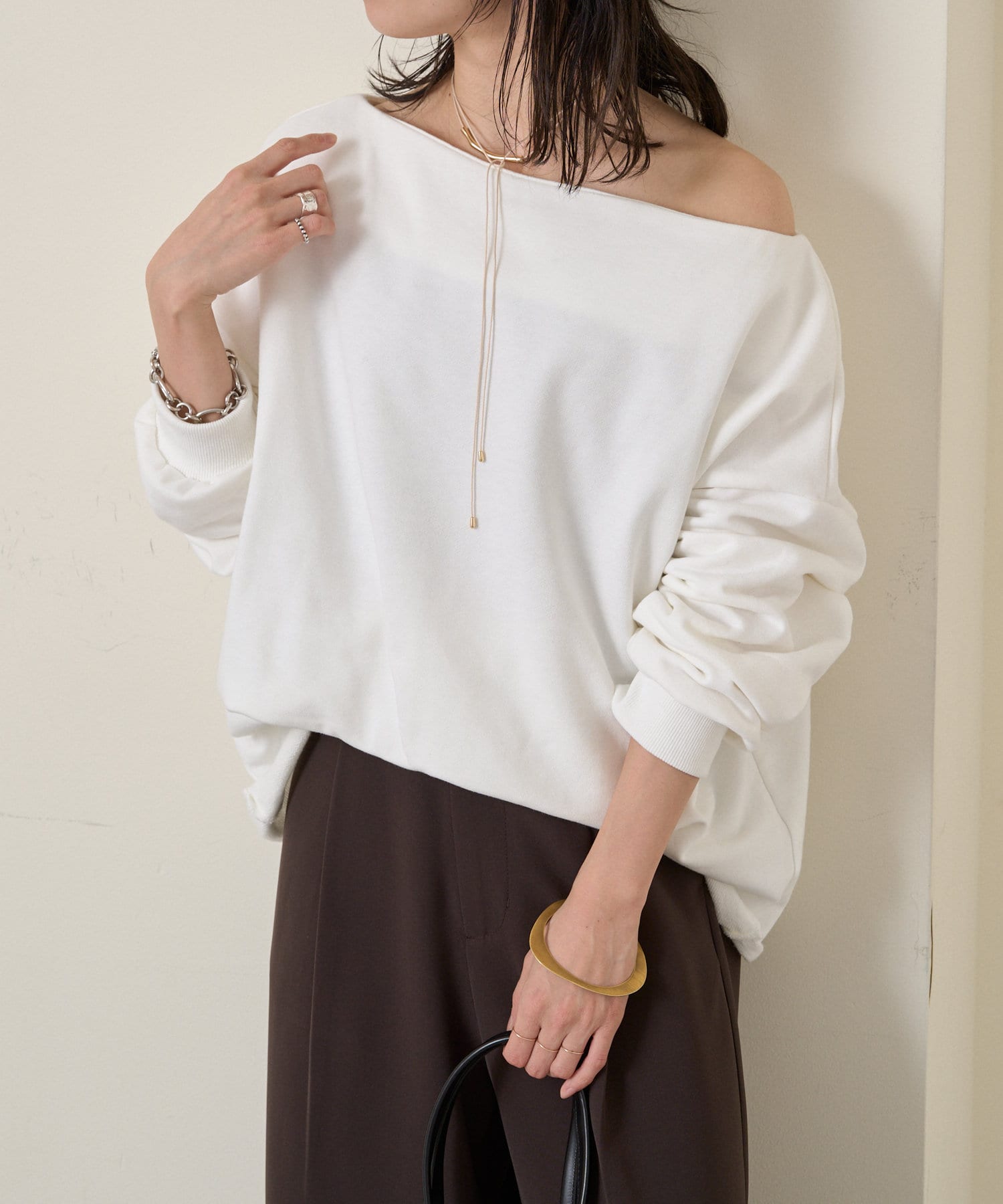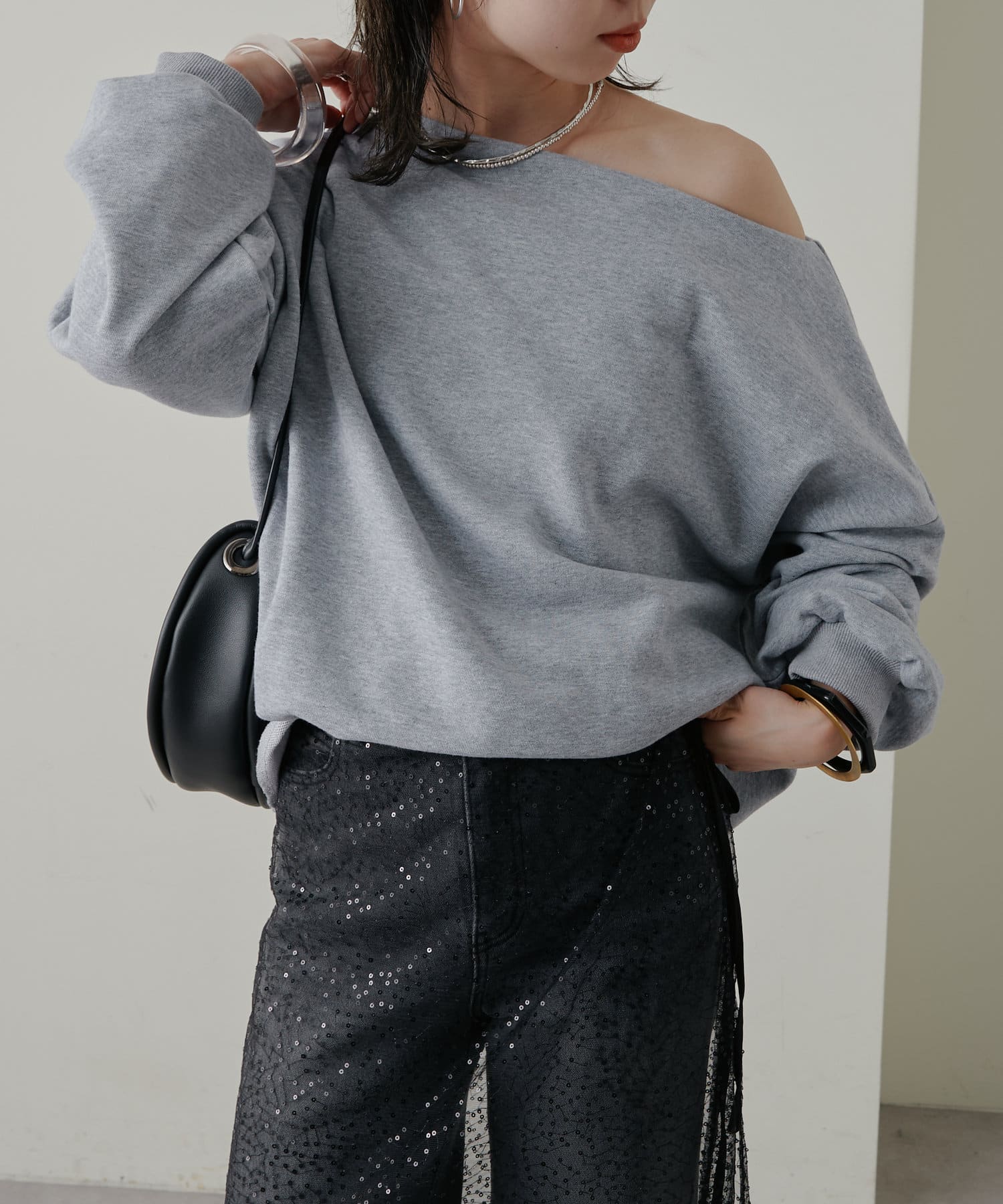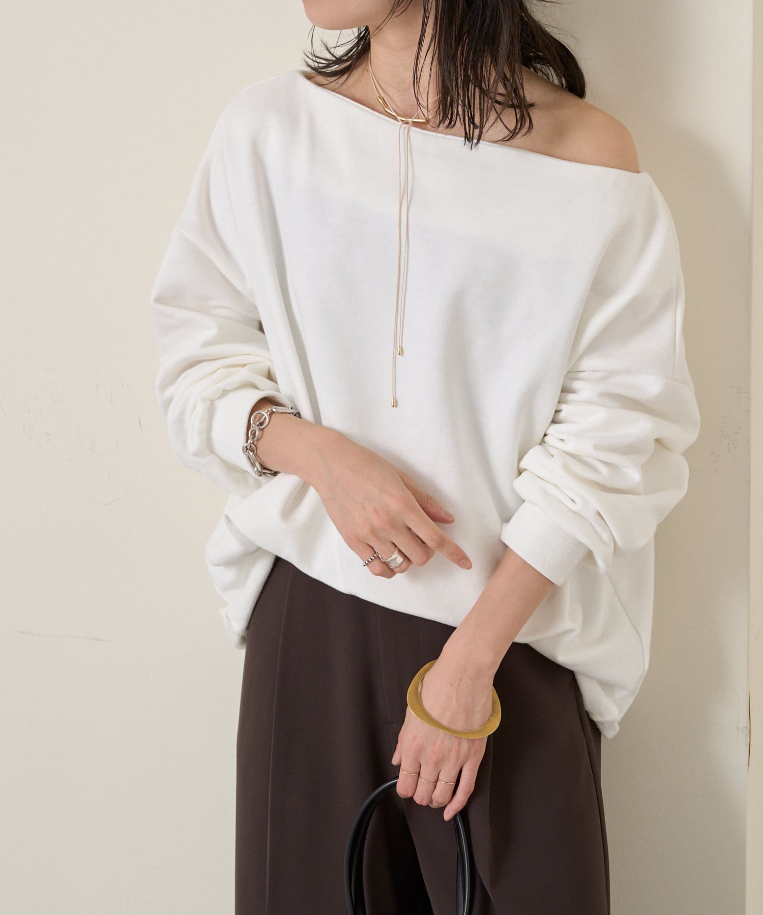 ・カジュアルなスウェットながらも、オフショルデザインがレディライクに仕上げてくれる1枚。