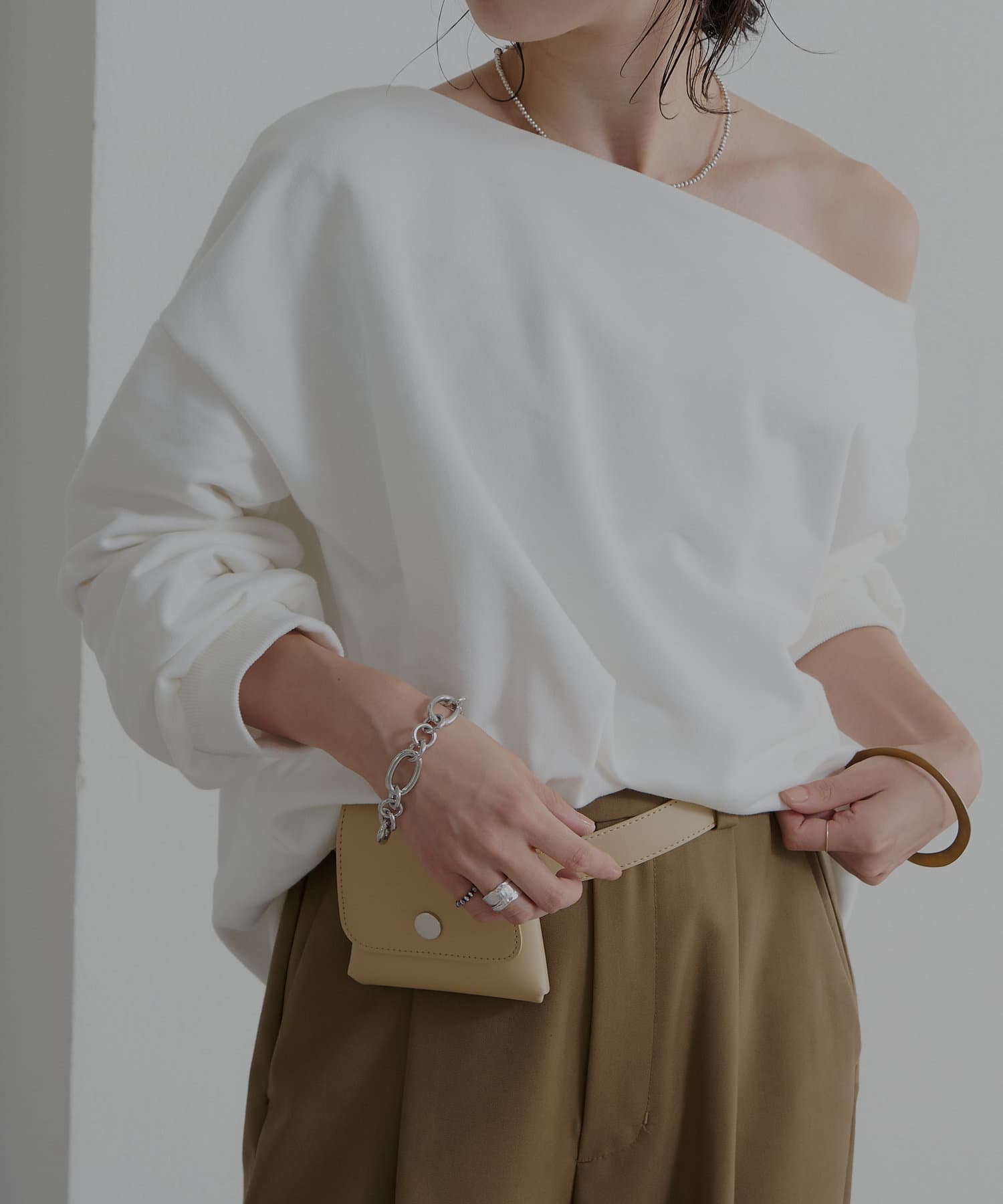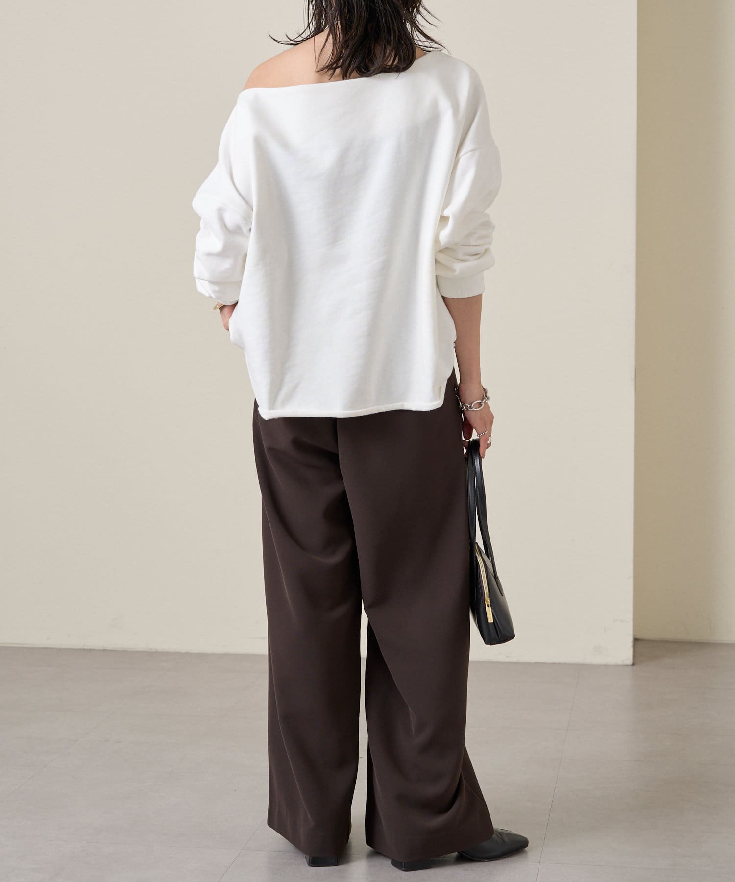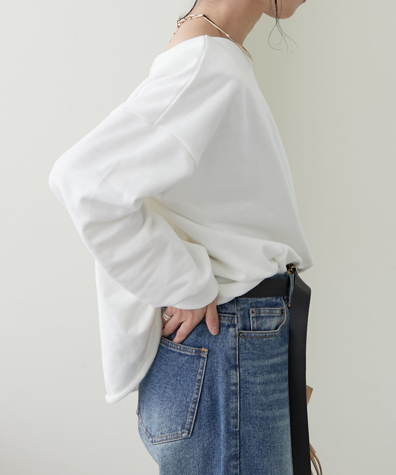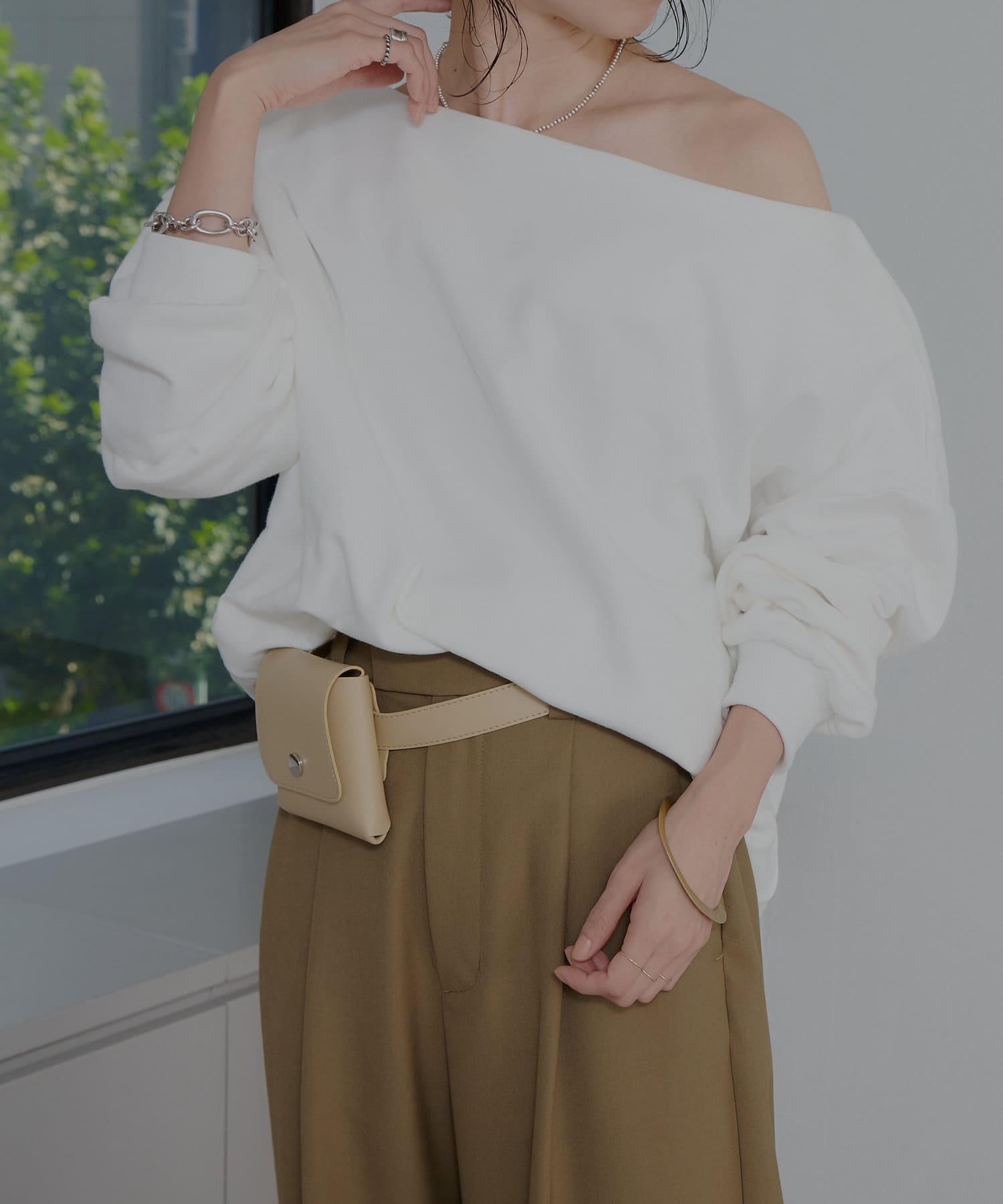 ・カジュアルなスウェットながらも、オフショルデザインがレディライクに仕上げてくれる1枚。
