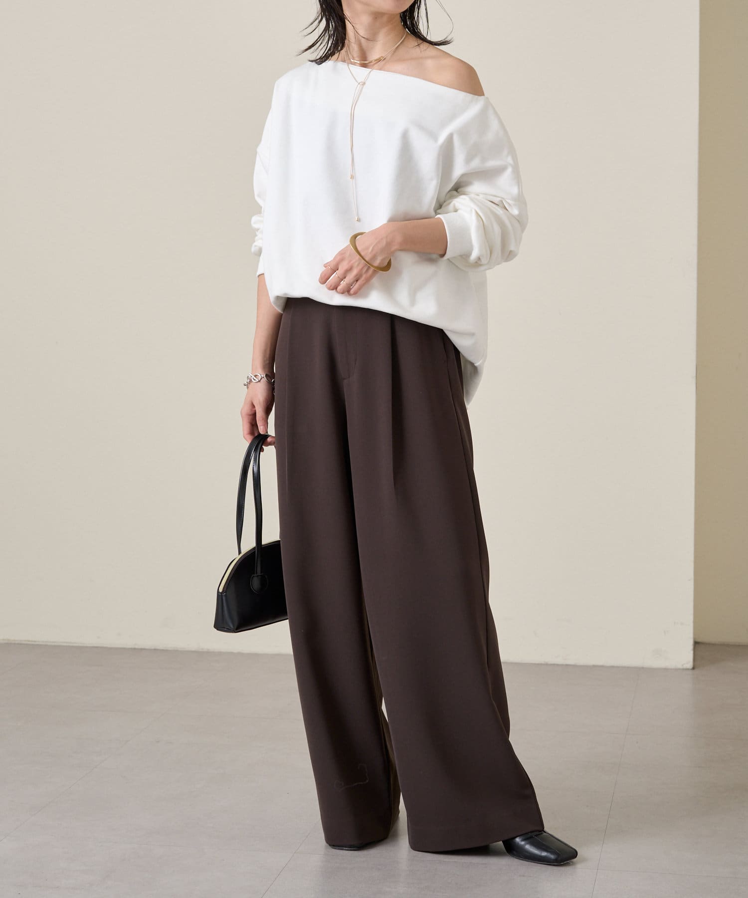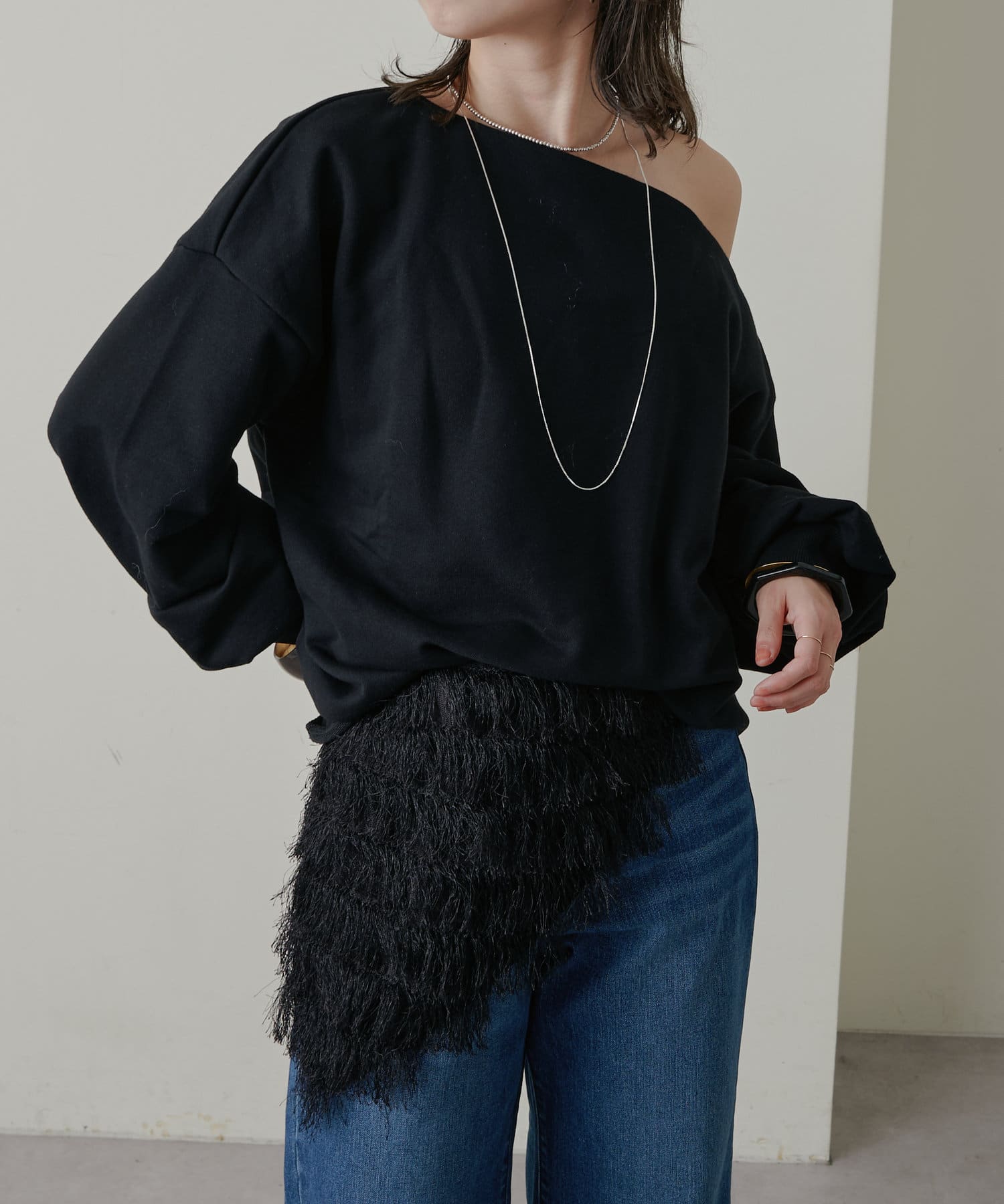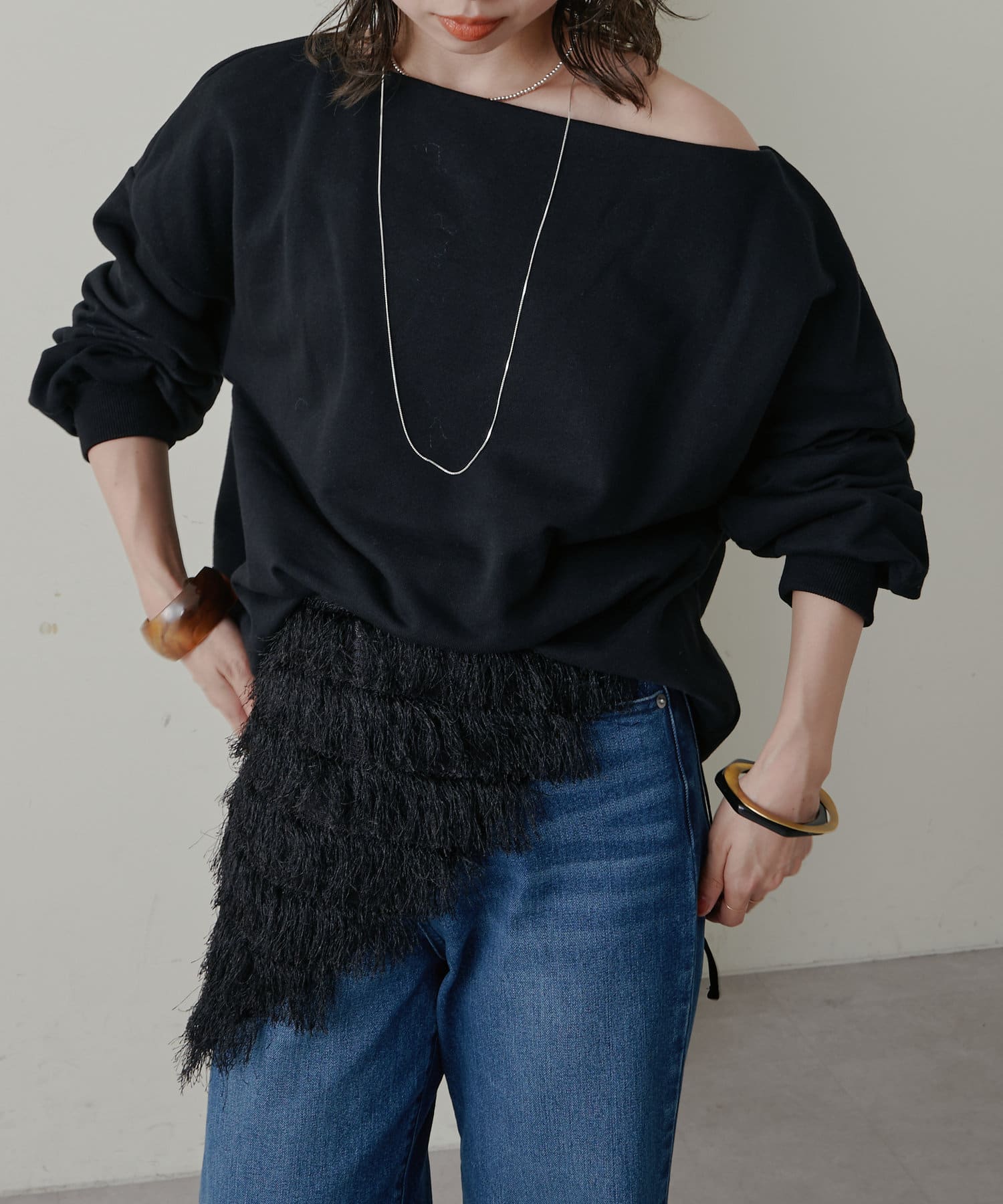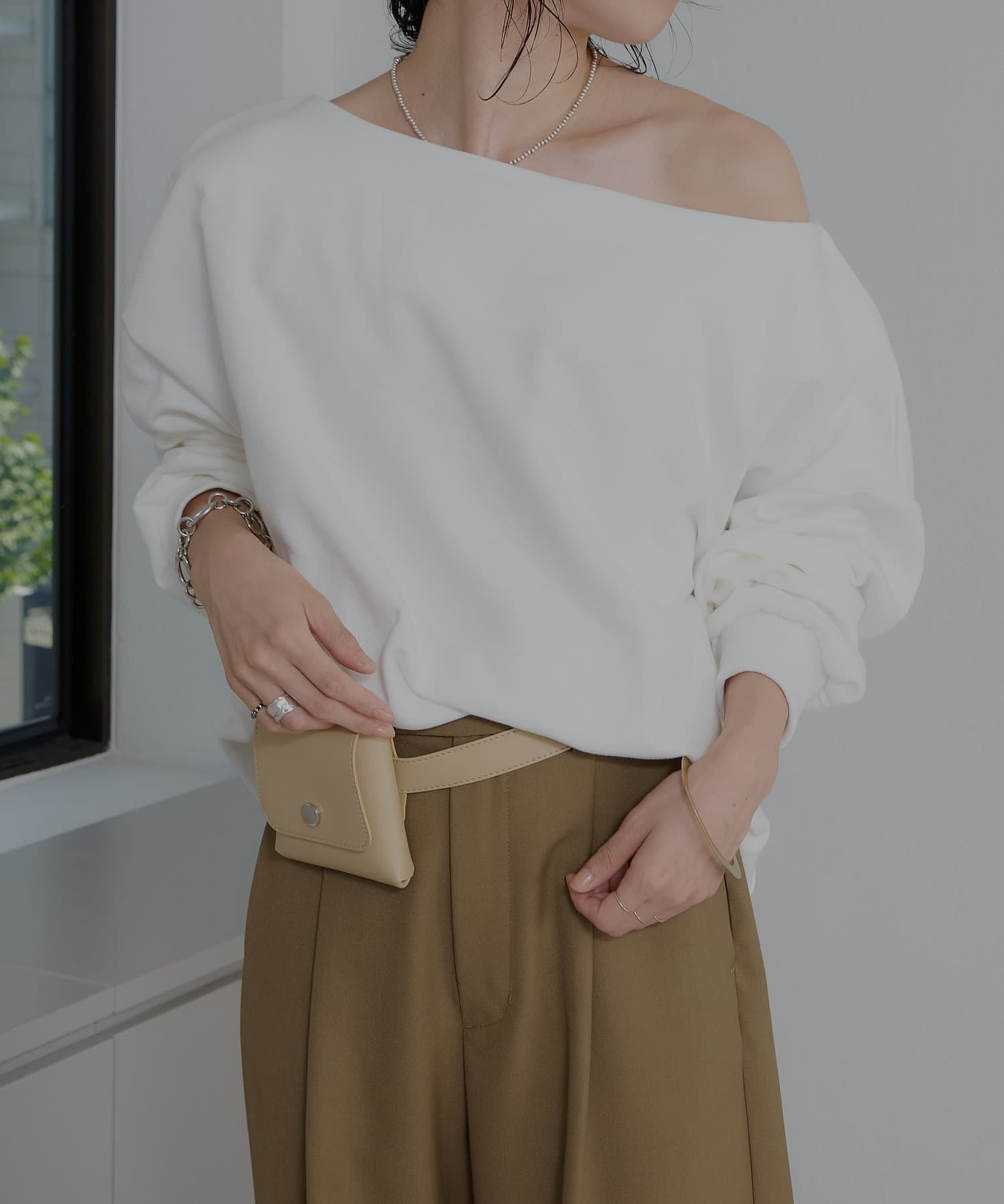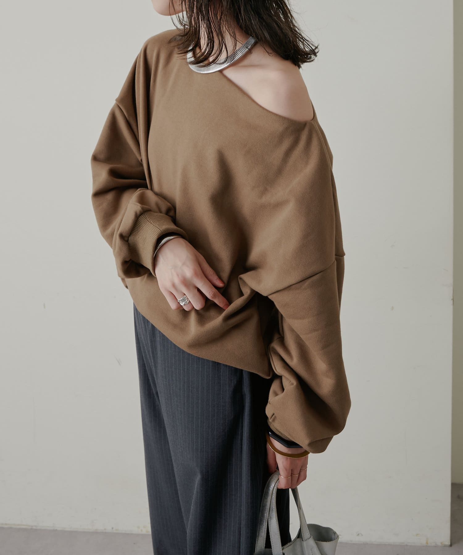 ・カジュアルなスウェットながらも、オフショルデザインがレディライクに仕上げてくれる1枚。