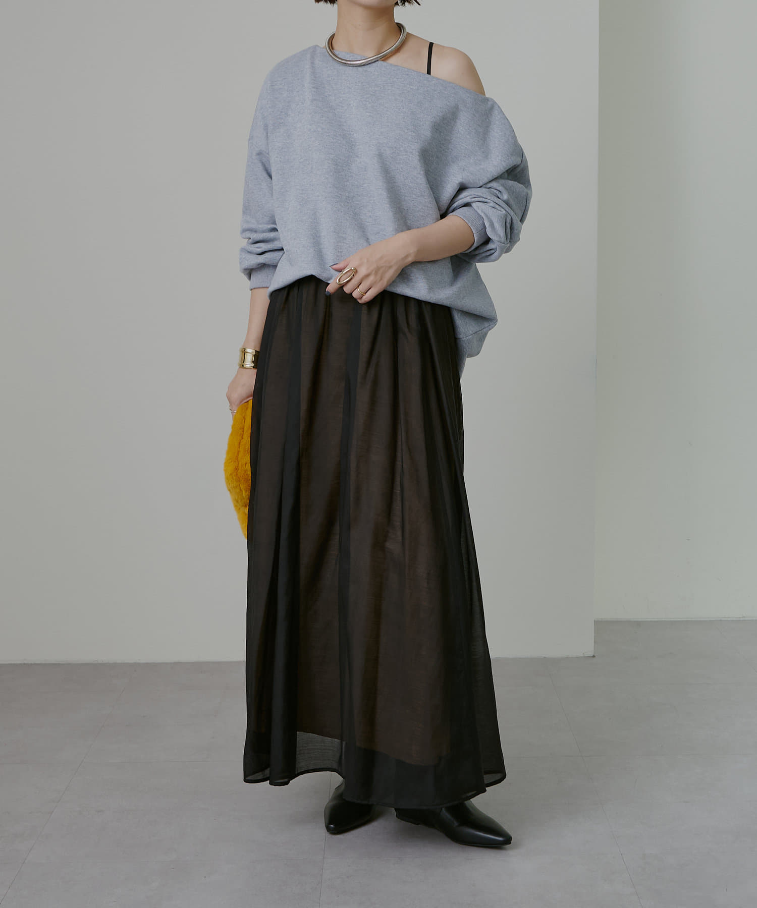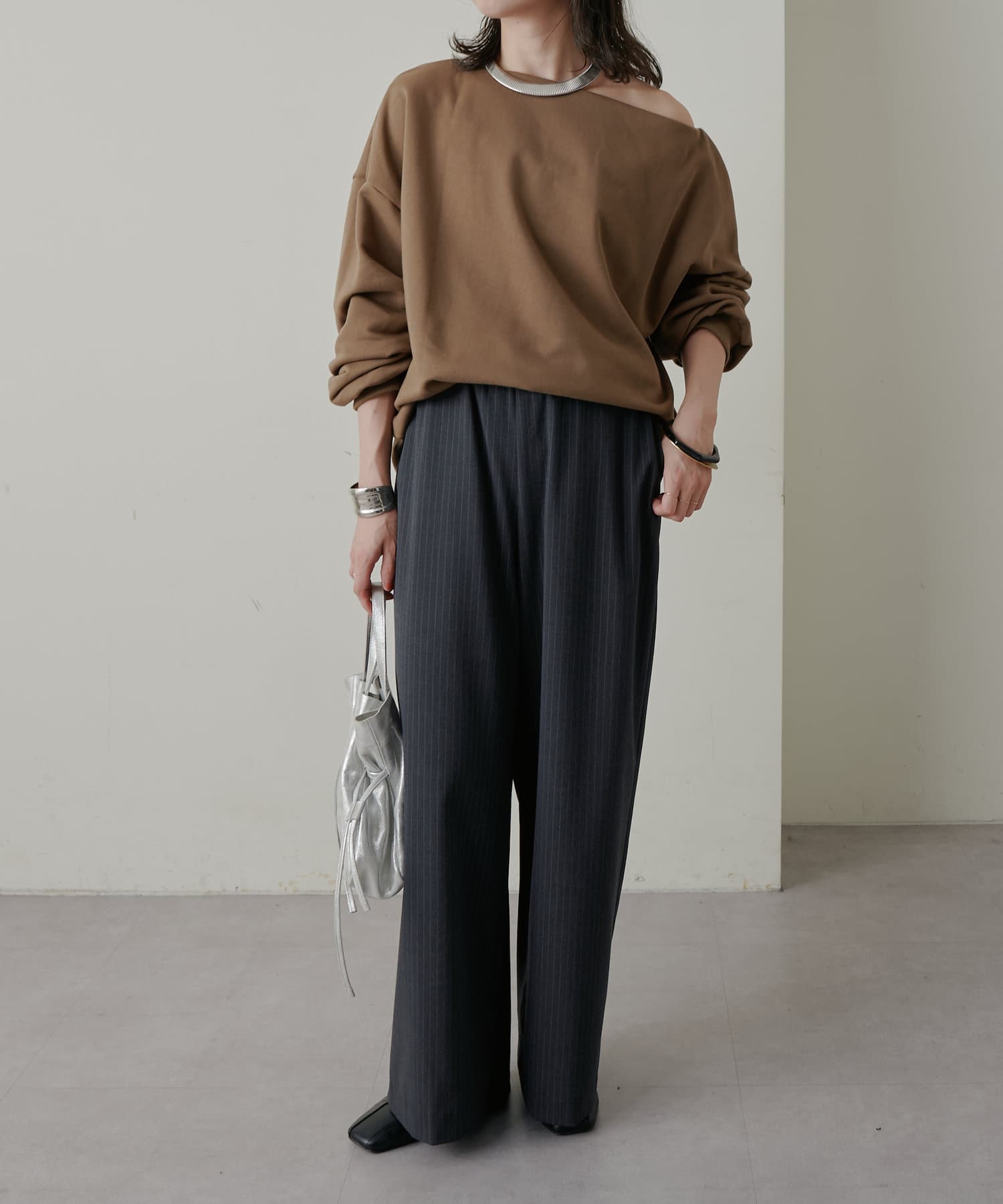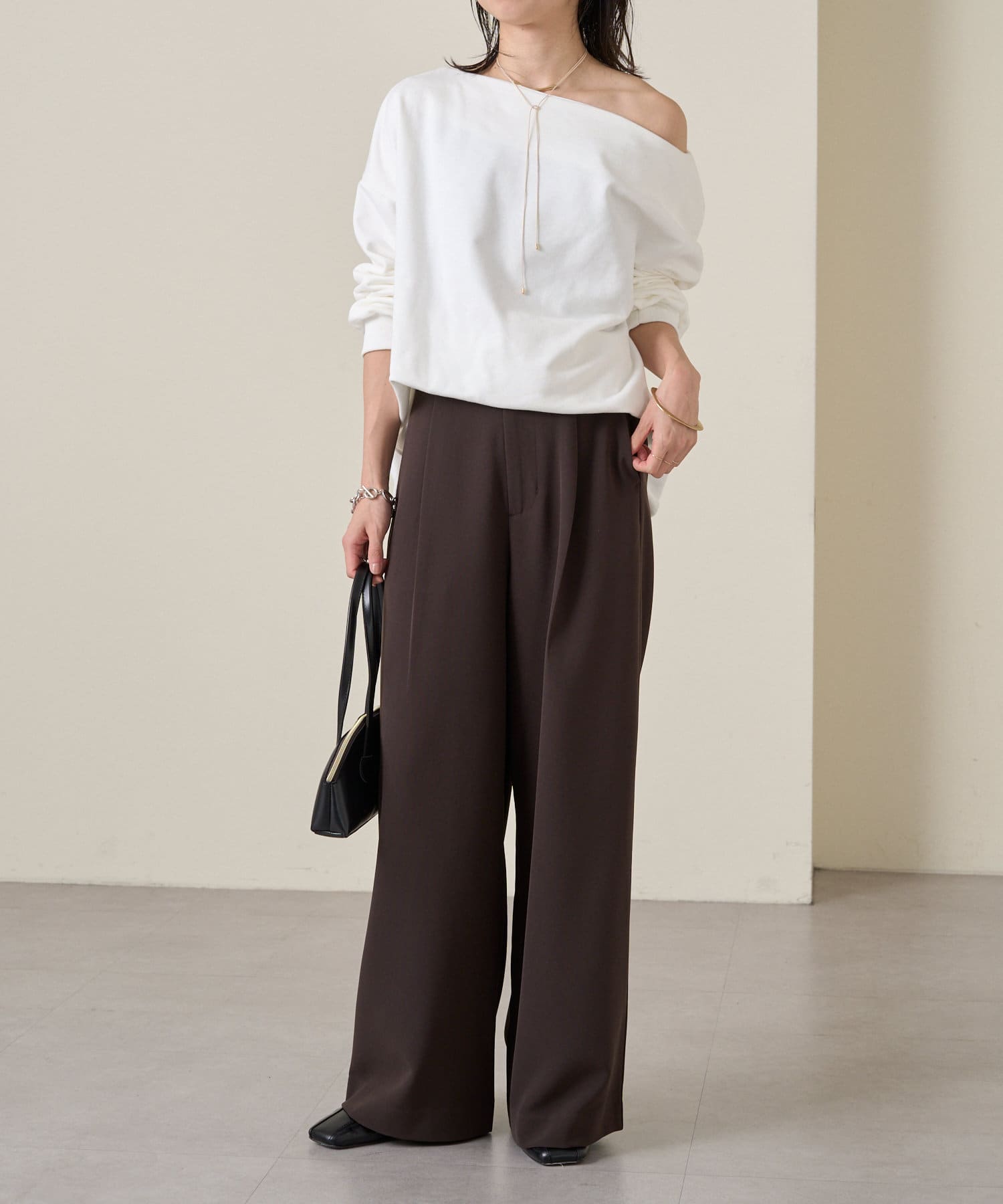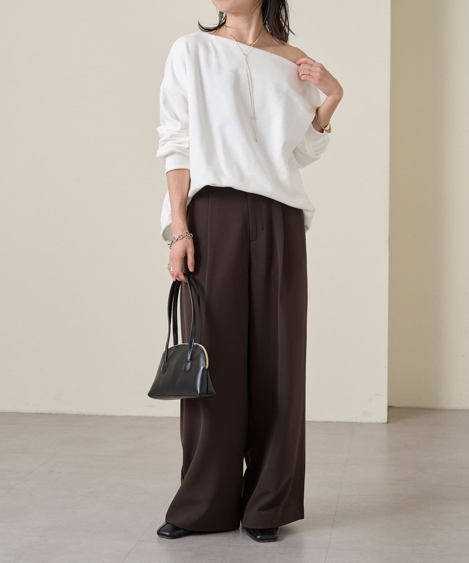 ・カジュアルなスウェットながらも、オフショルデザインがレディライクに仕上げてくれる1枚。