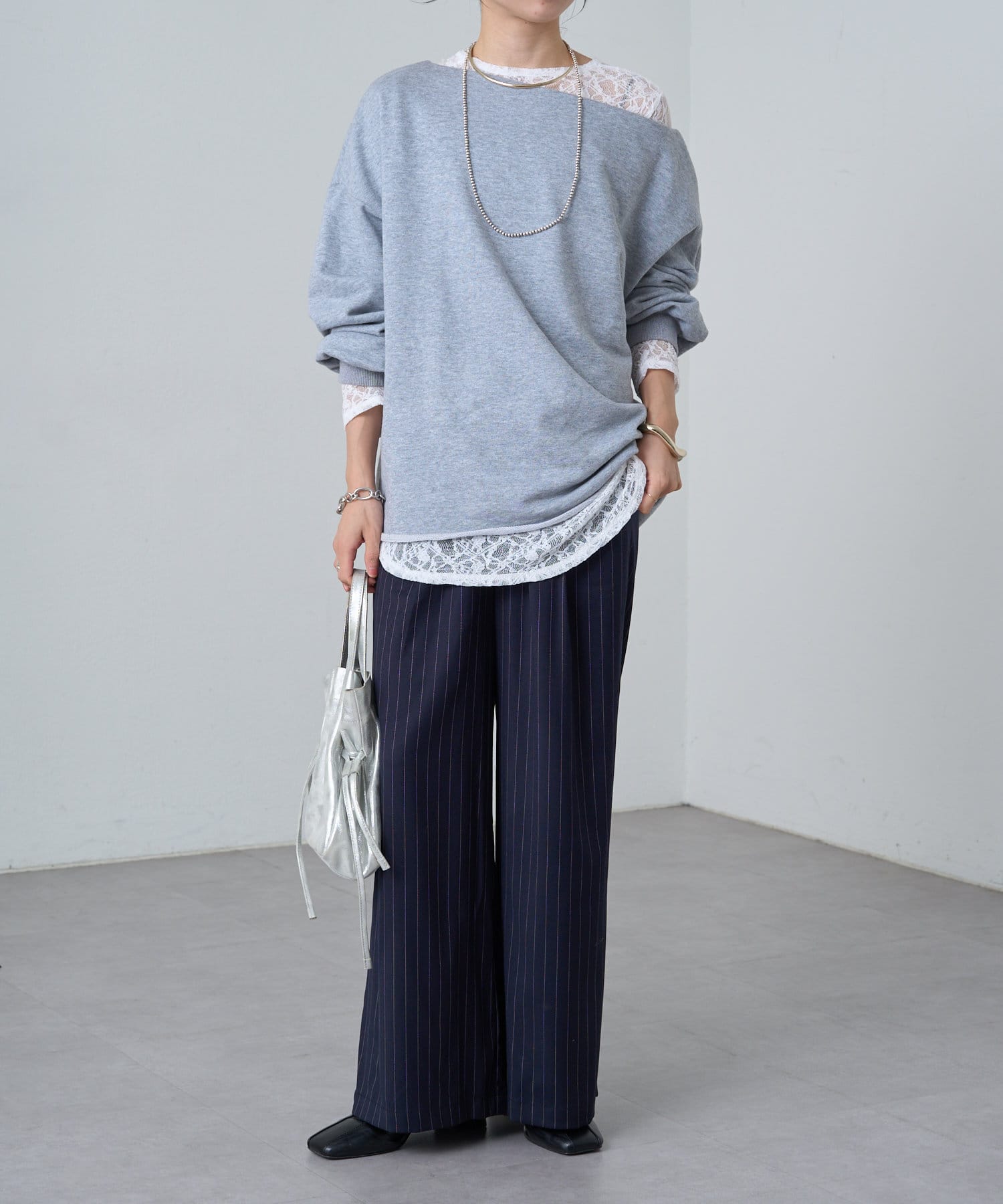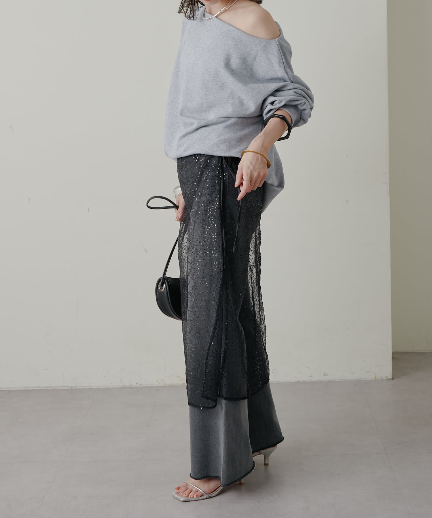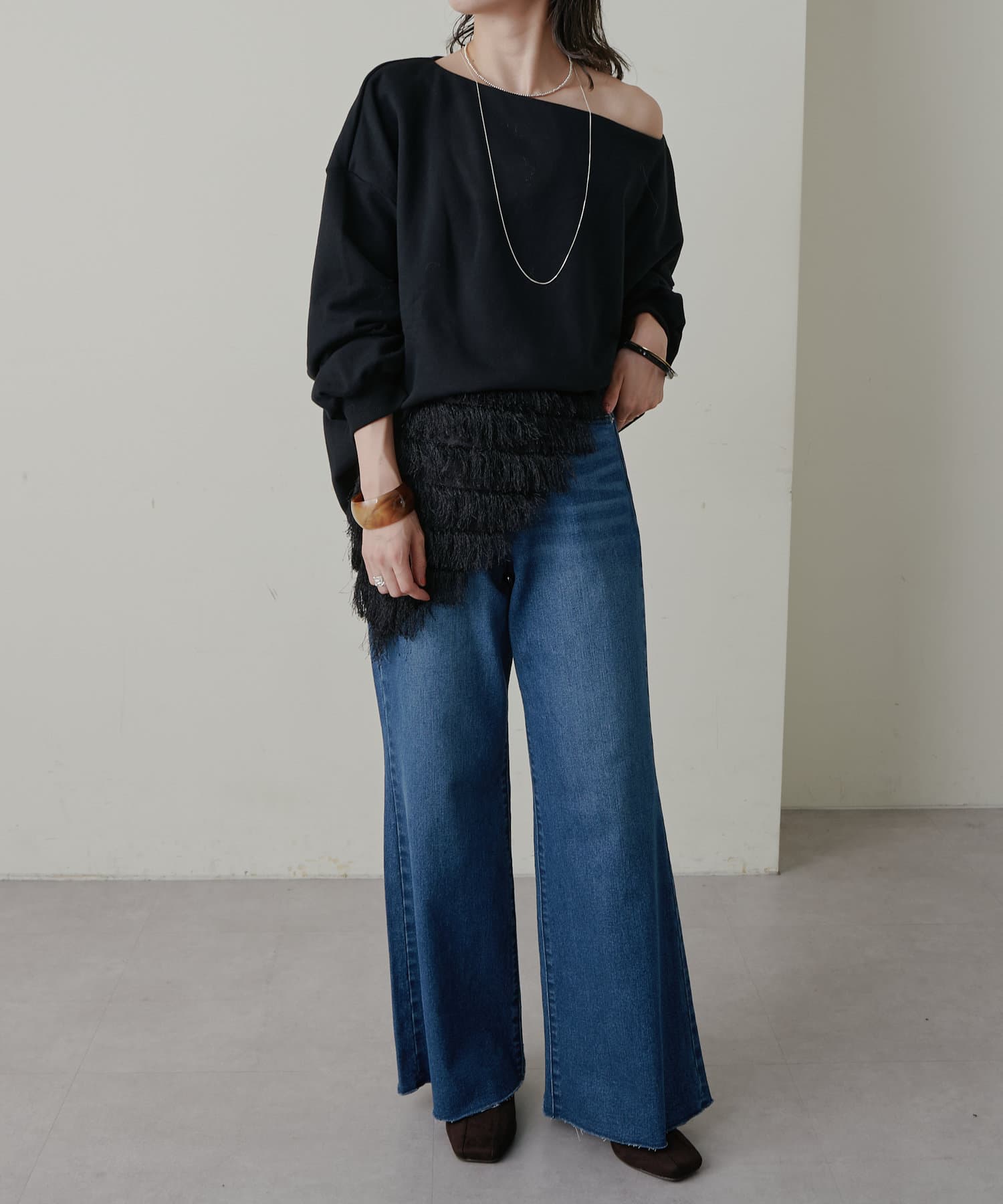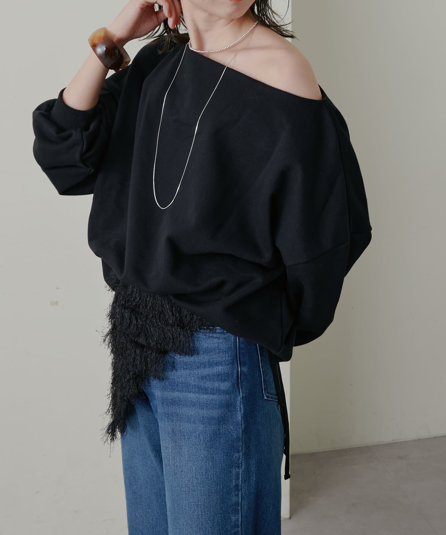 ・カジュアルなスウェットながらも、オフショルデザインがレディライクに仕上げてくれる1枚。