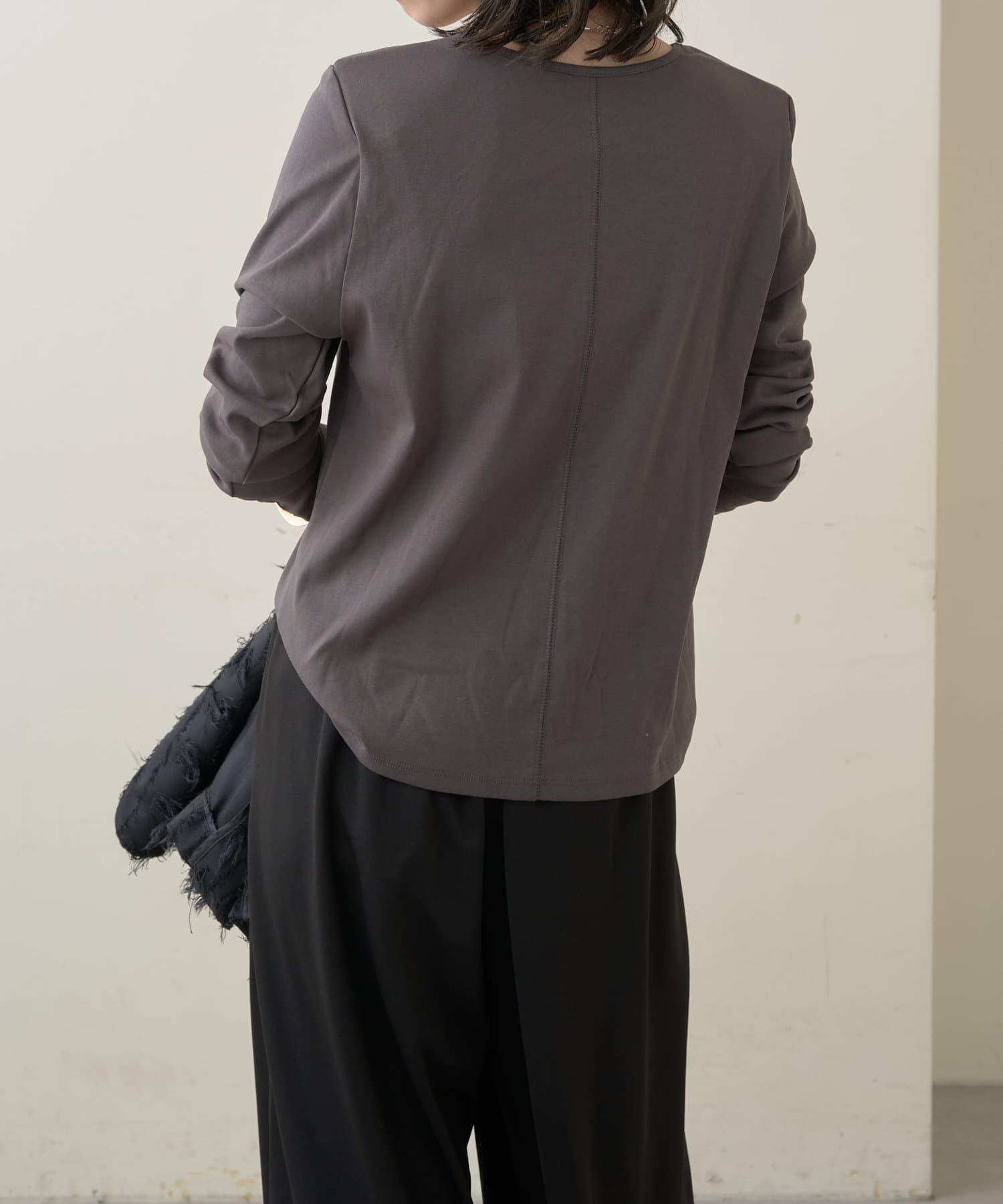 ・薄めの肩パットが入り、モードな雰囲気のある1枚。