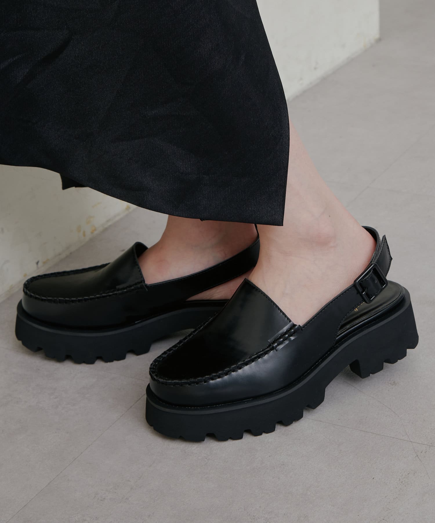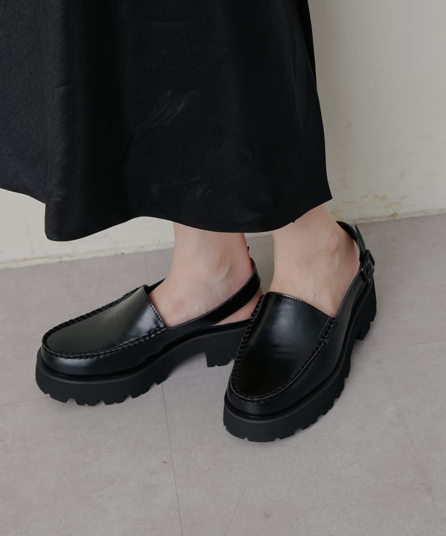 きちんと感がありつつも抜け感のあるバックストラップローファー