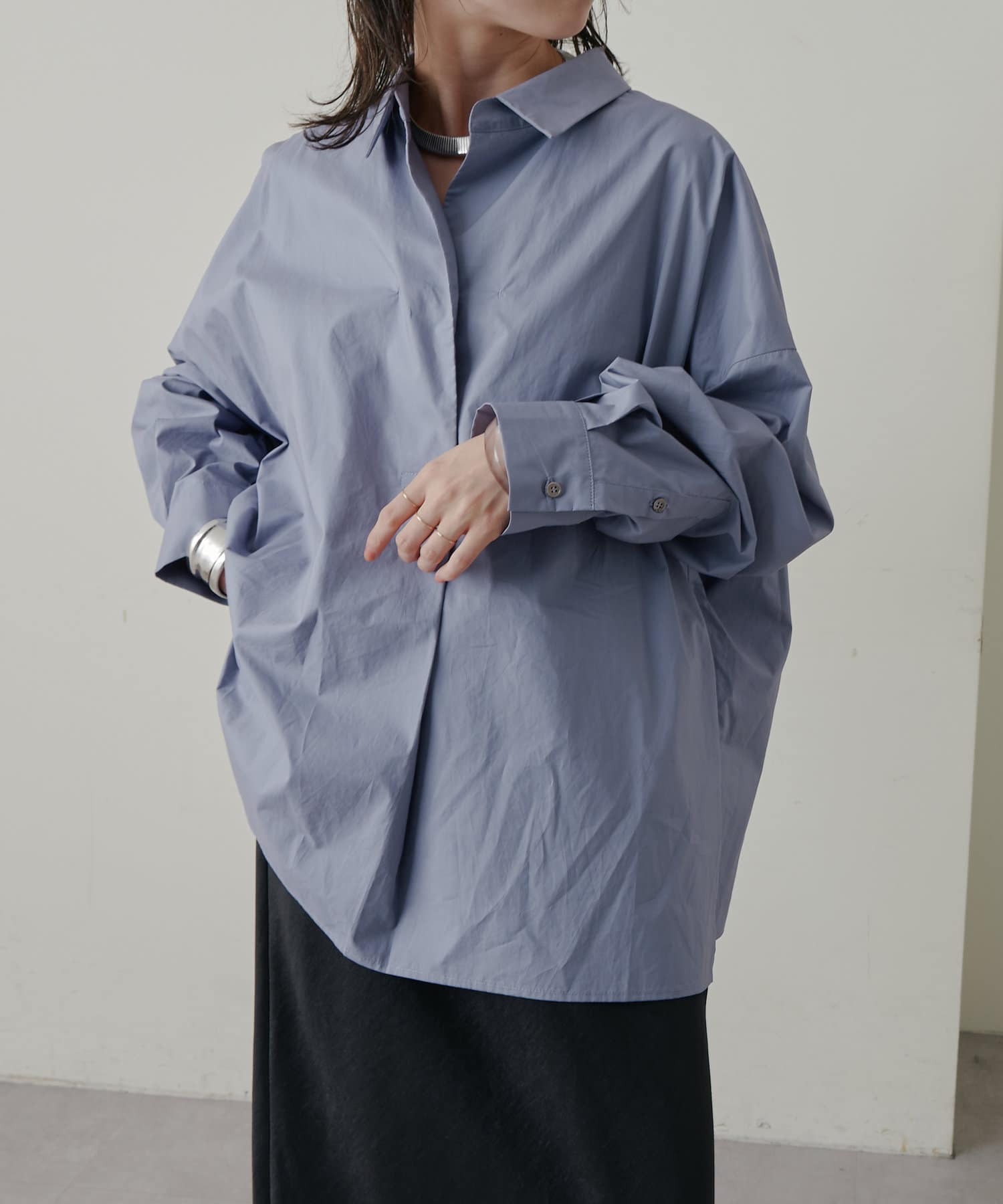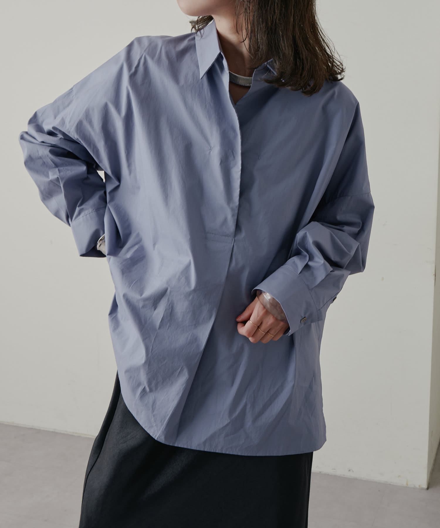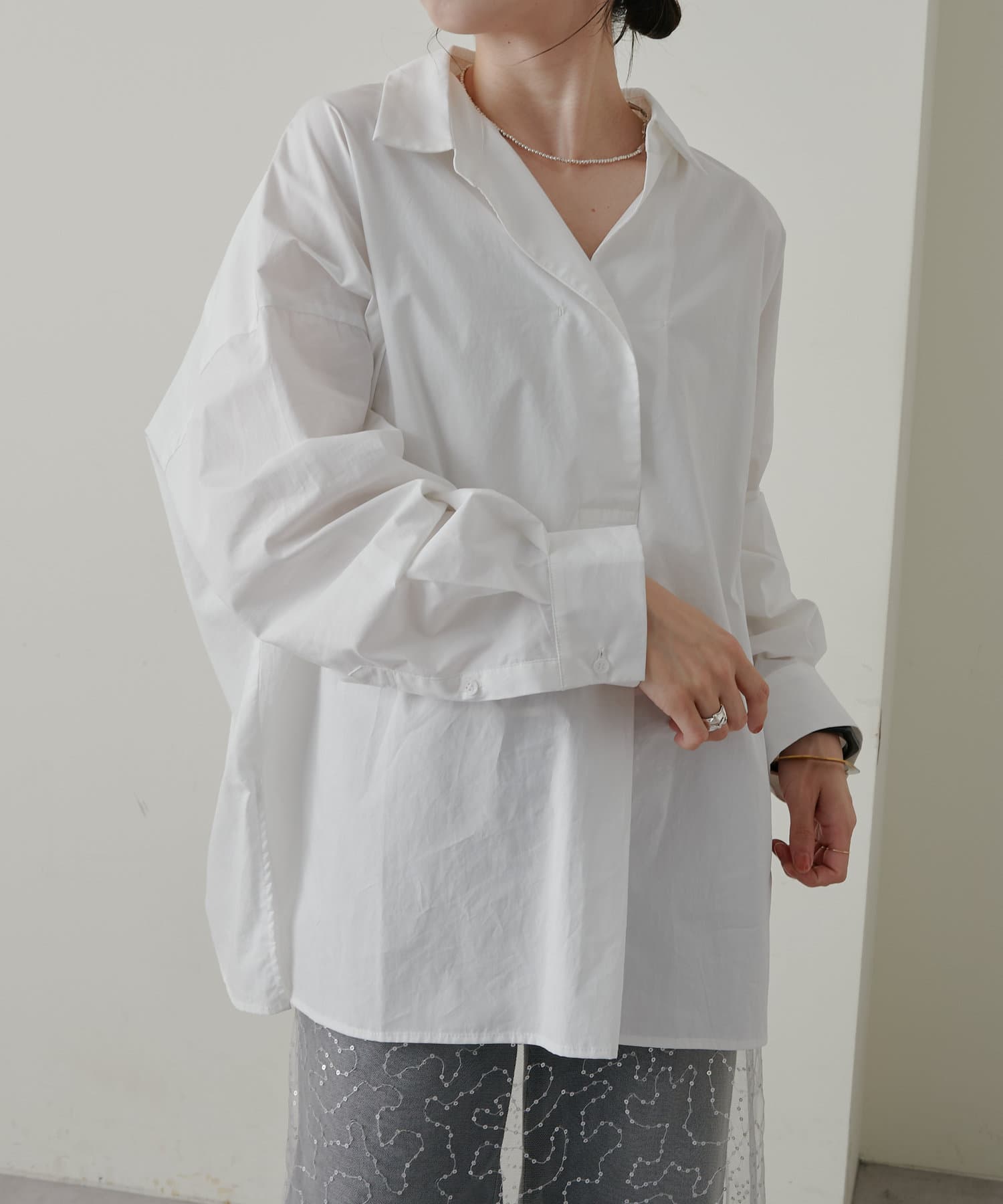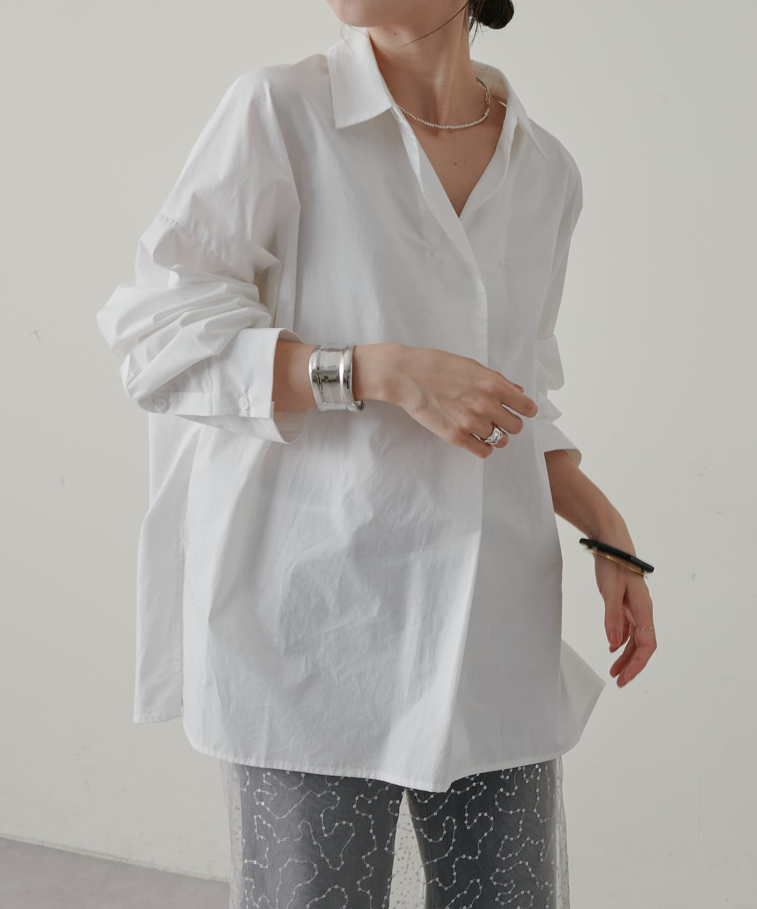 大人の抜け感を演出するスキッパーオーバーシャツ