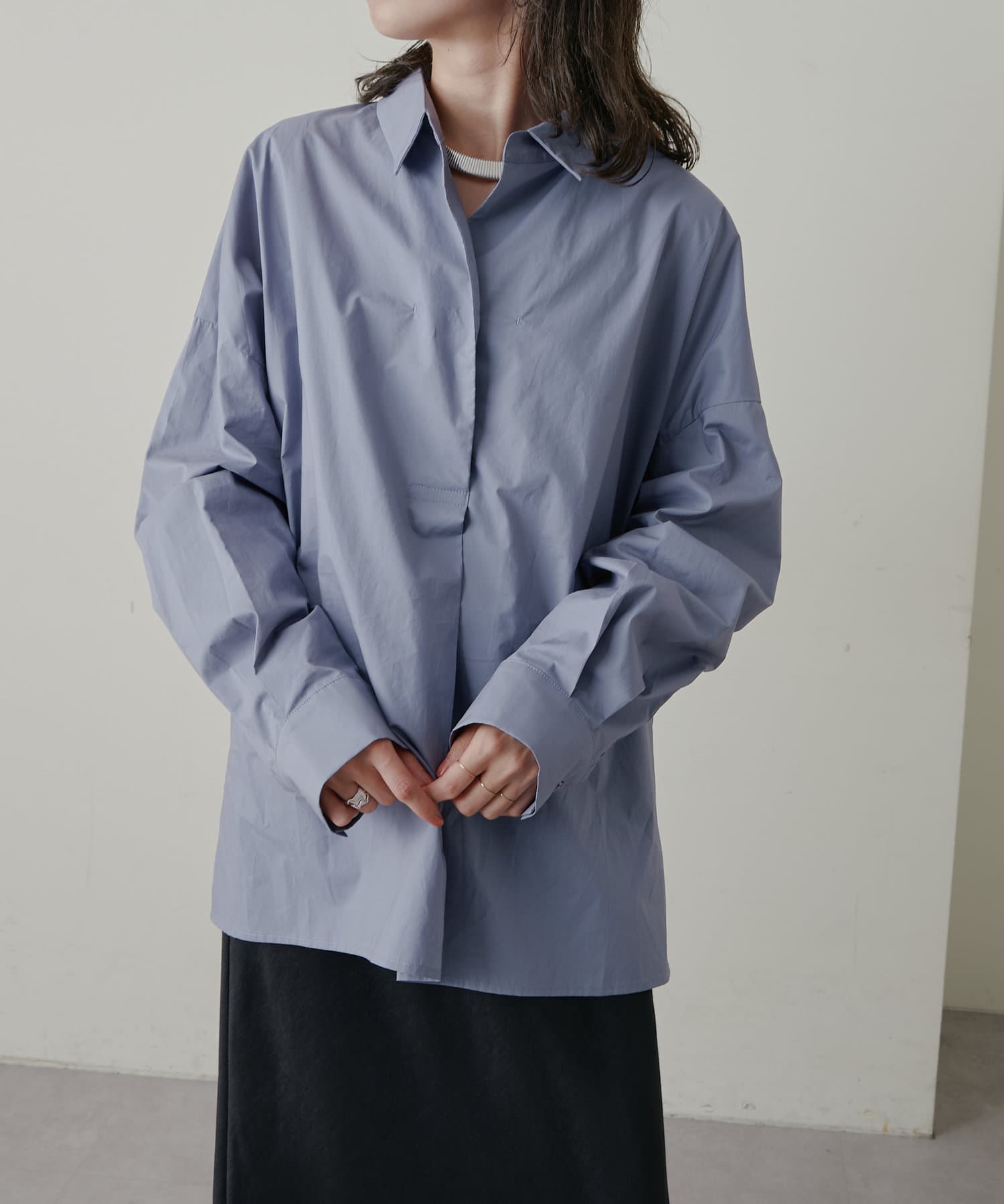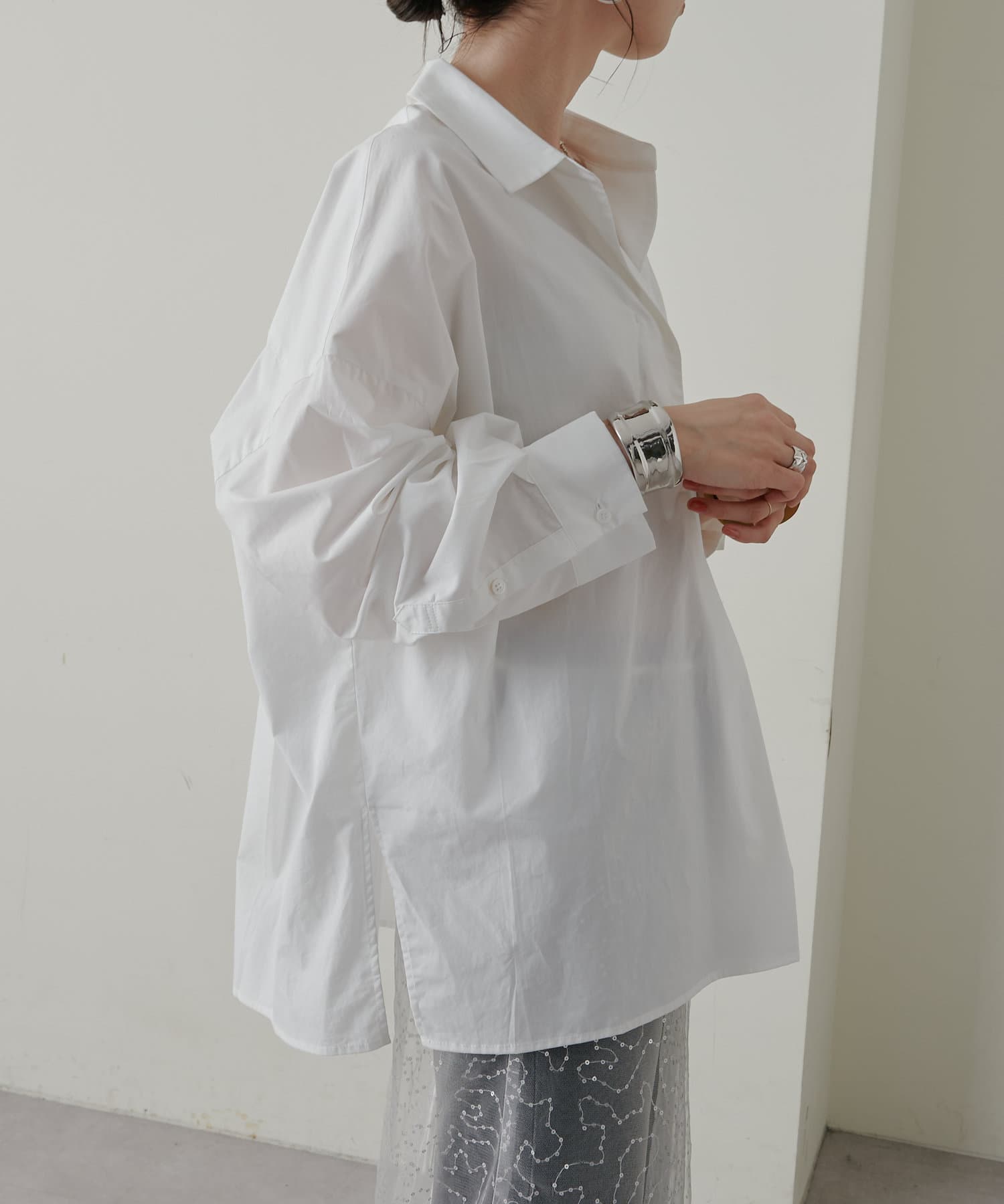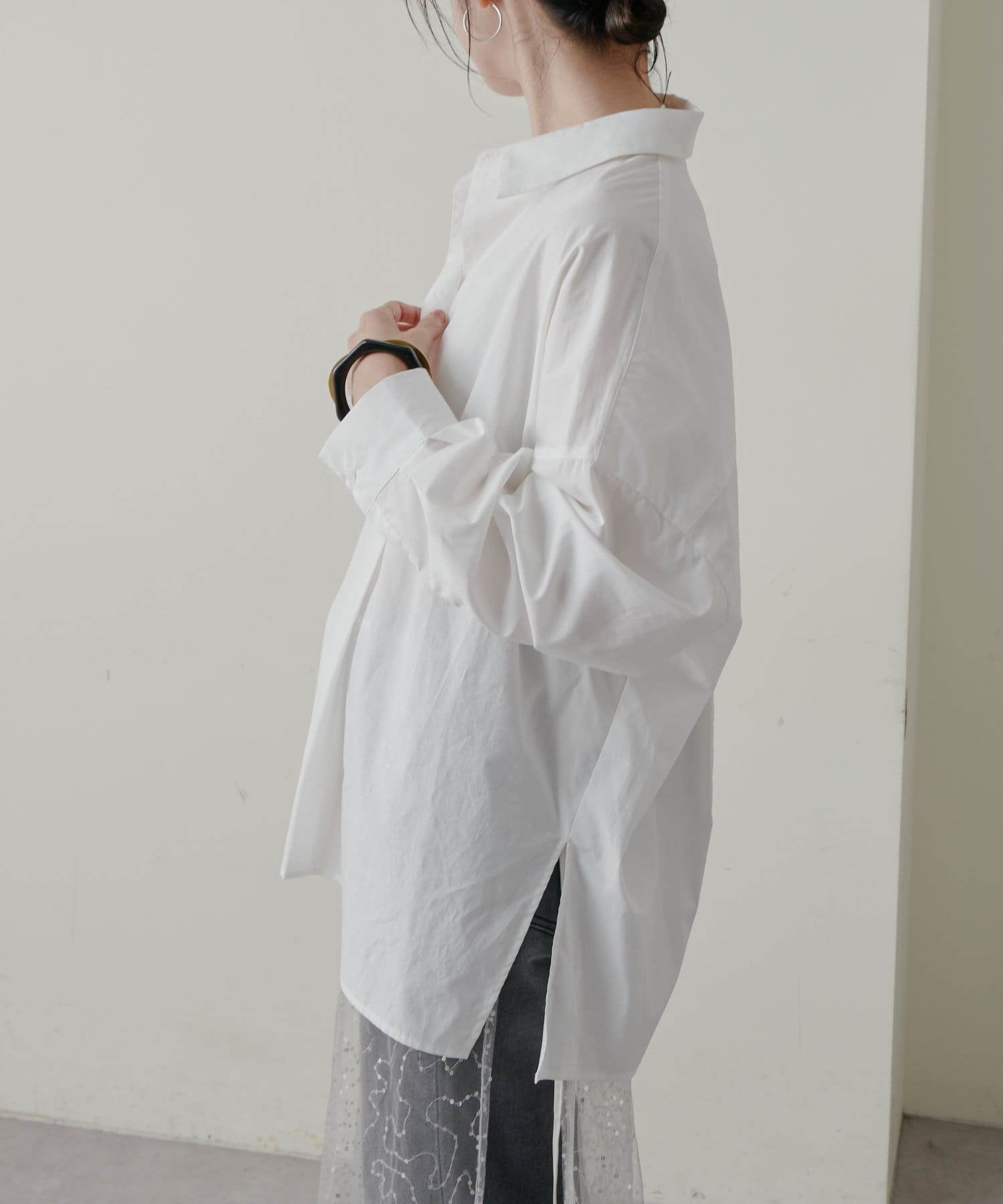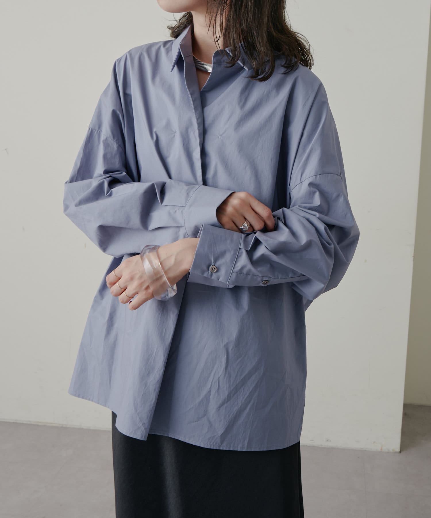 大人の抜け感を演出するスキッパーオーバーシャツ