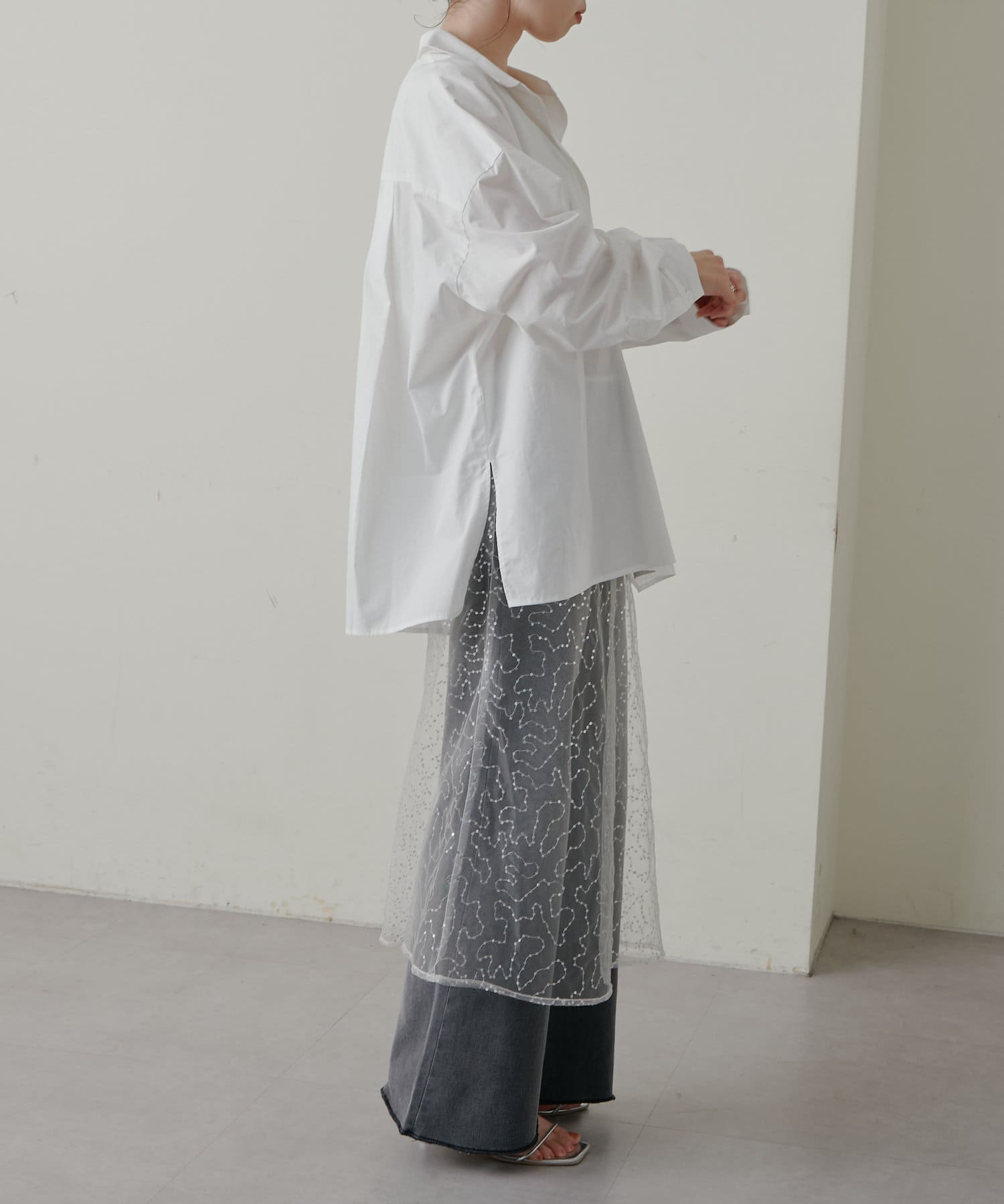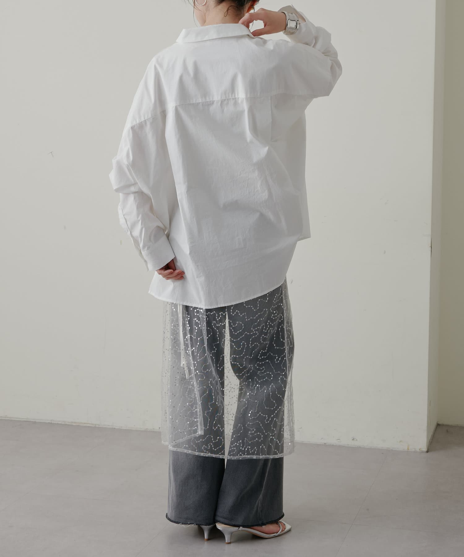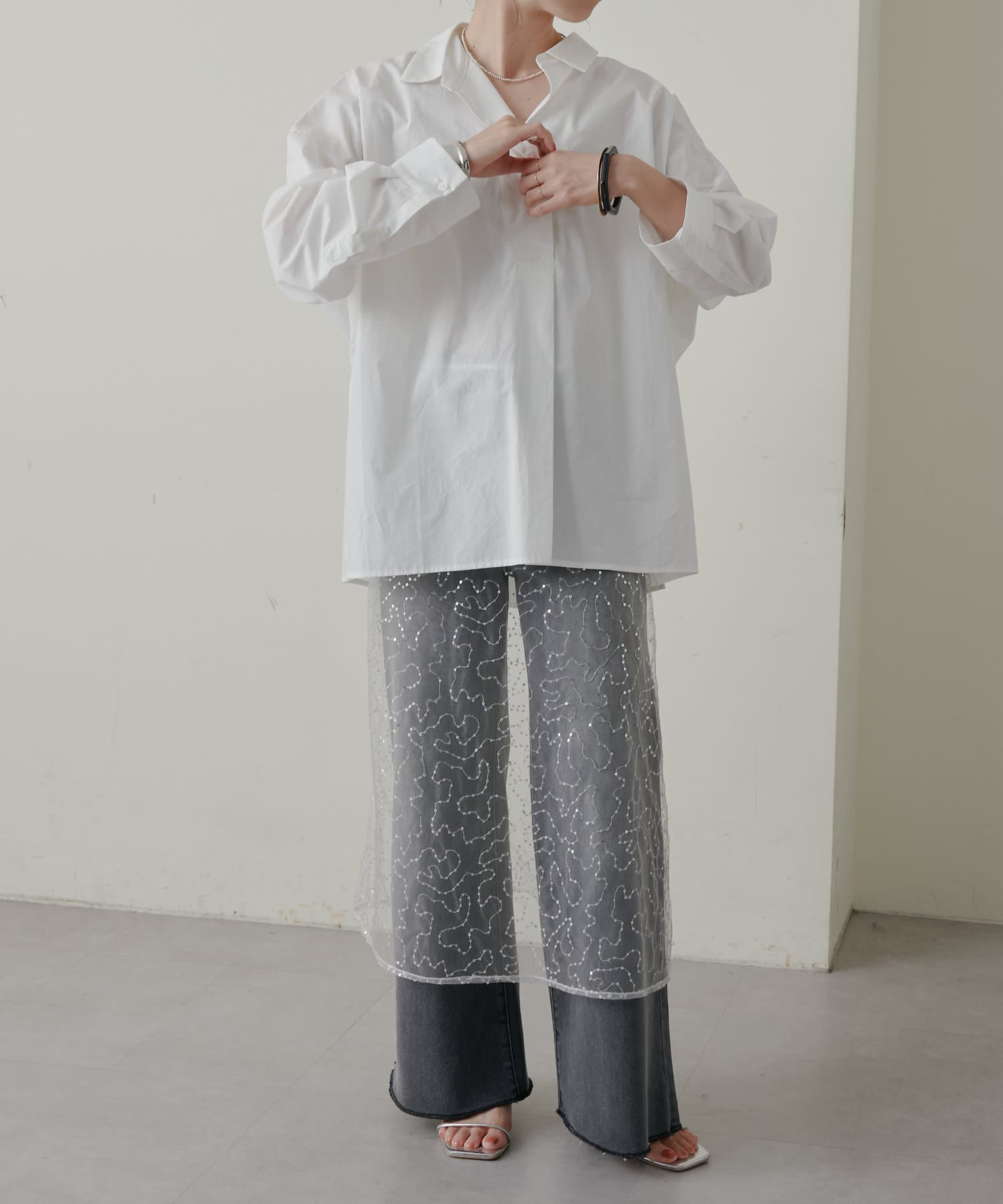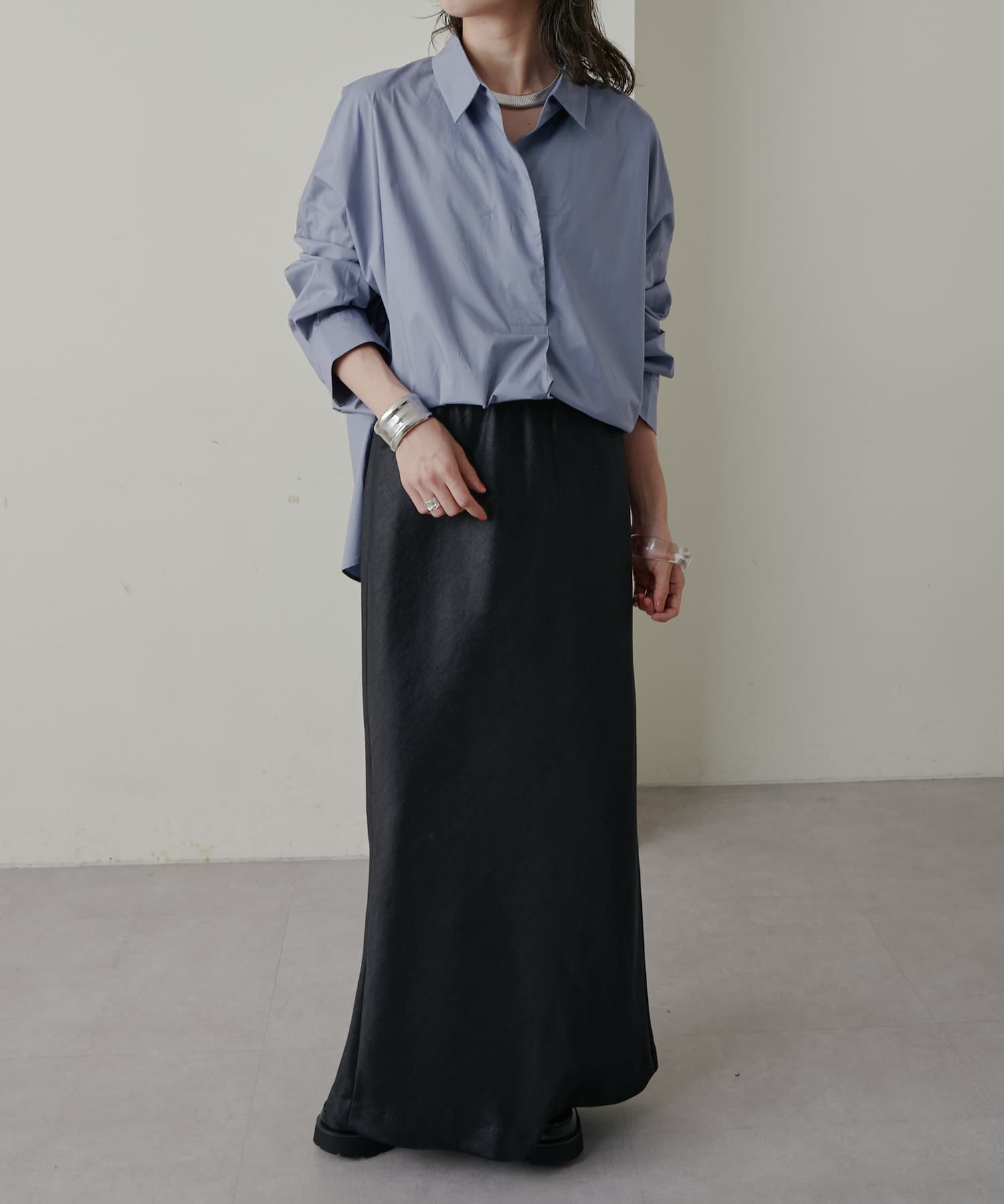 大人の抜け感を演出するスキッパーオーバーシャツ