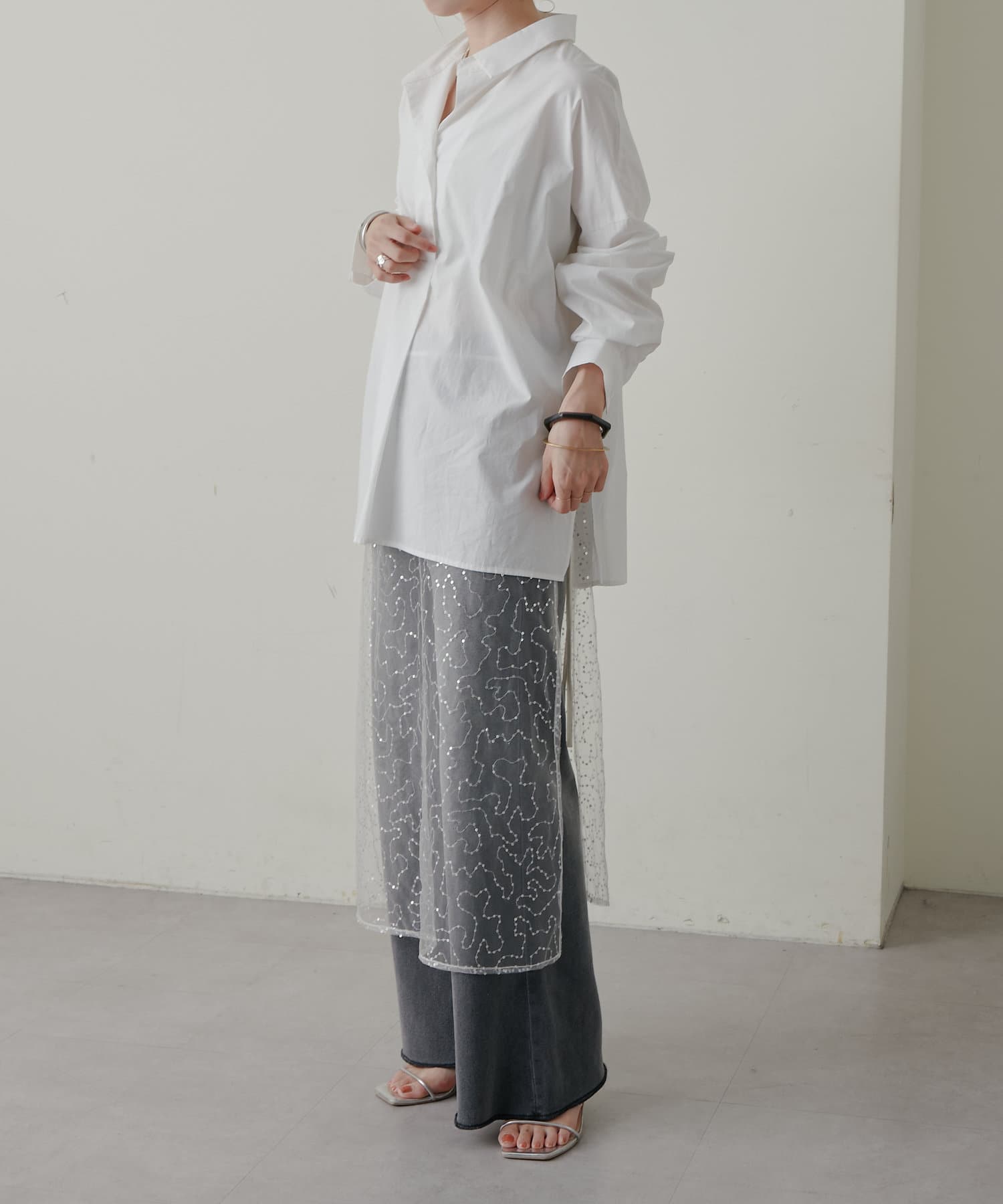 ・一枚ではもちろん、スウェットやニットとのレイヤードスタイルもおすすめ。