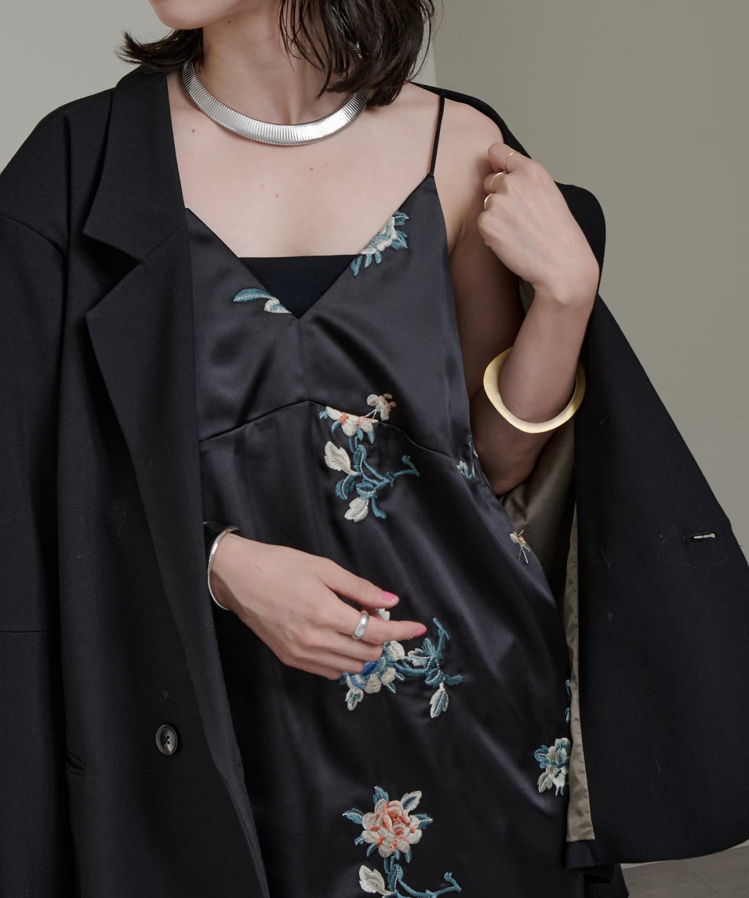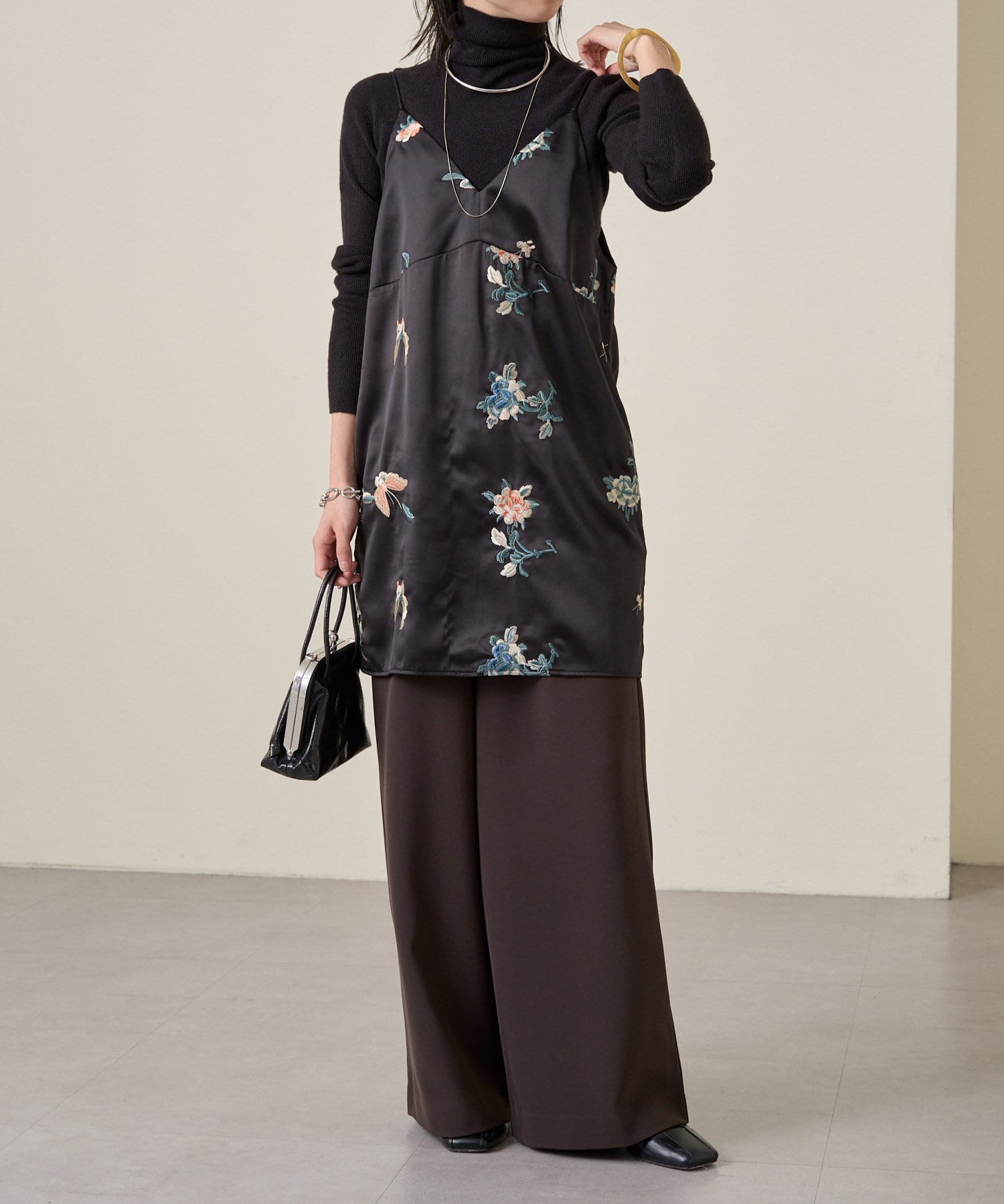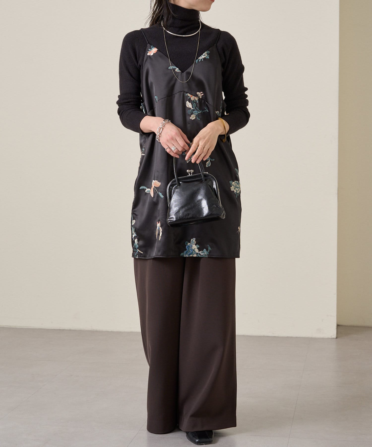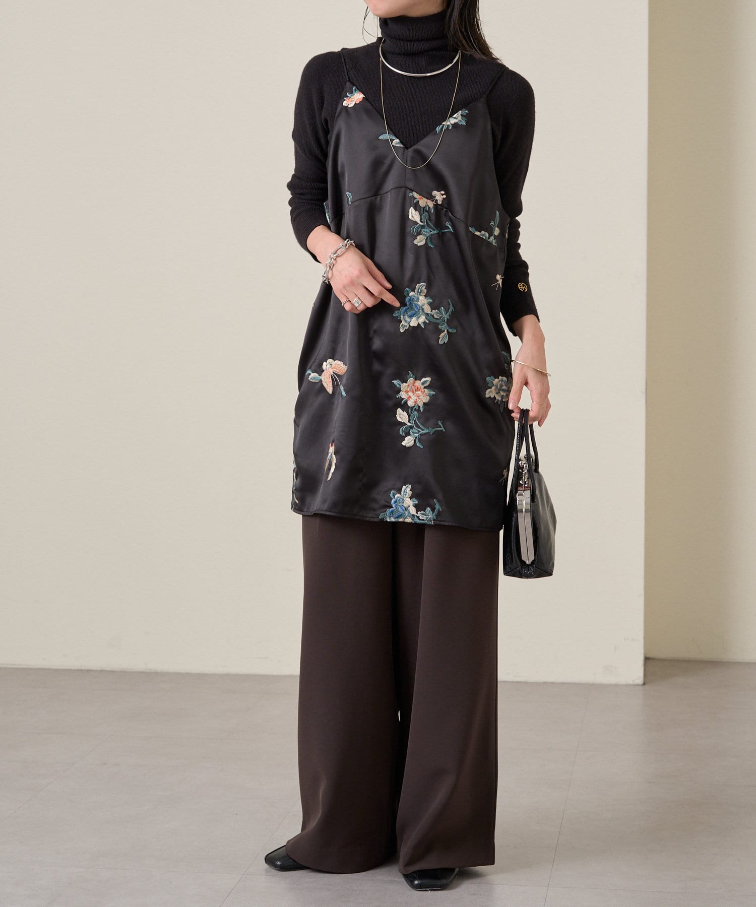購入場所:パルクローゼットブラックのサテン生地に大人っぽい刺繍が素敵でした。今まで持ってない感じの服で、何より秋冬ムードを満喫できます。