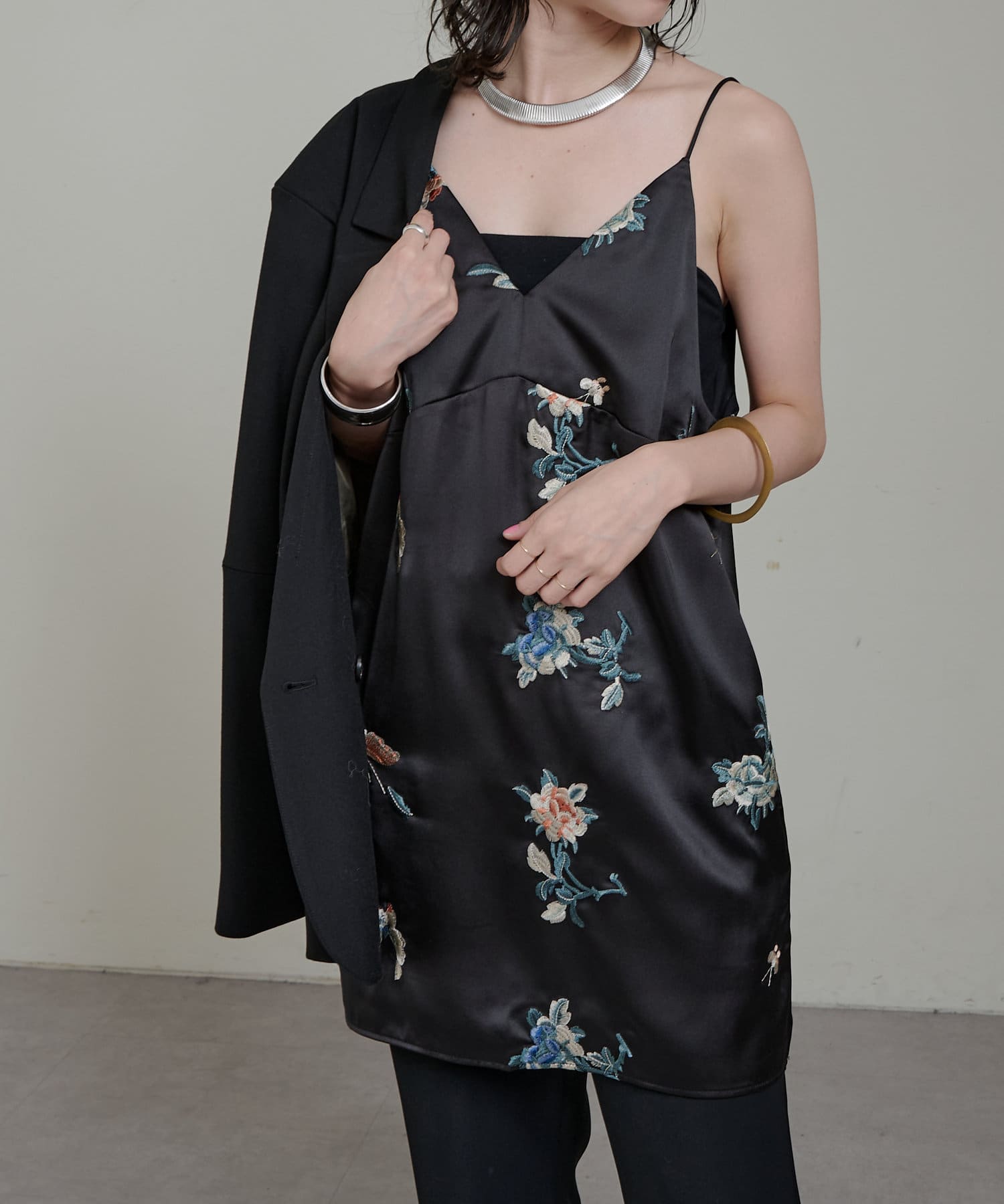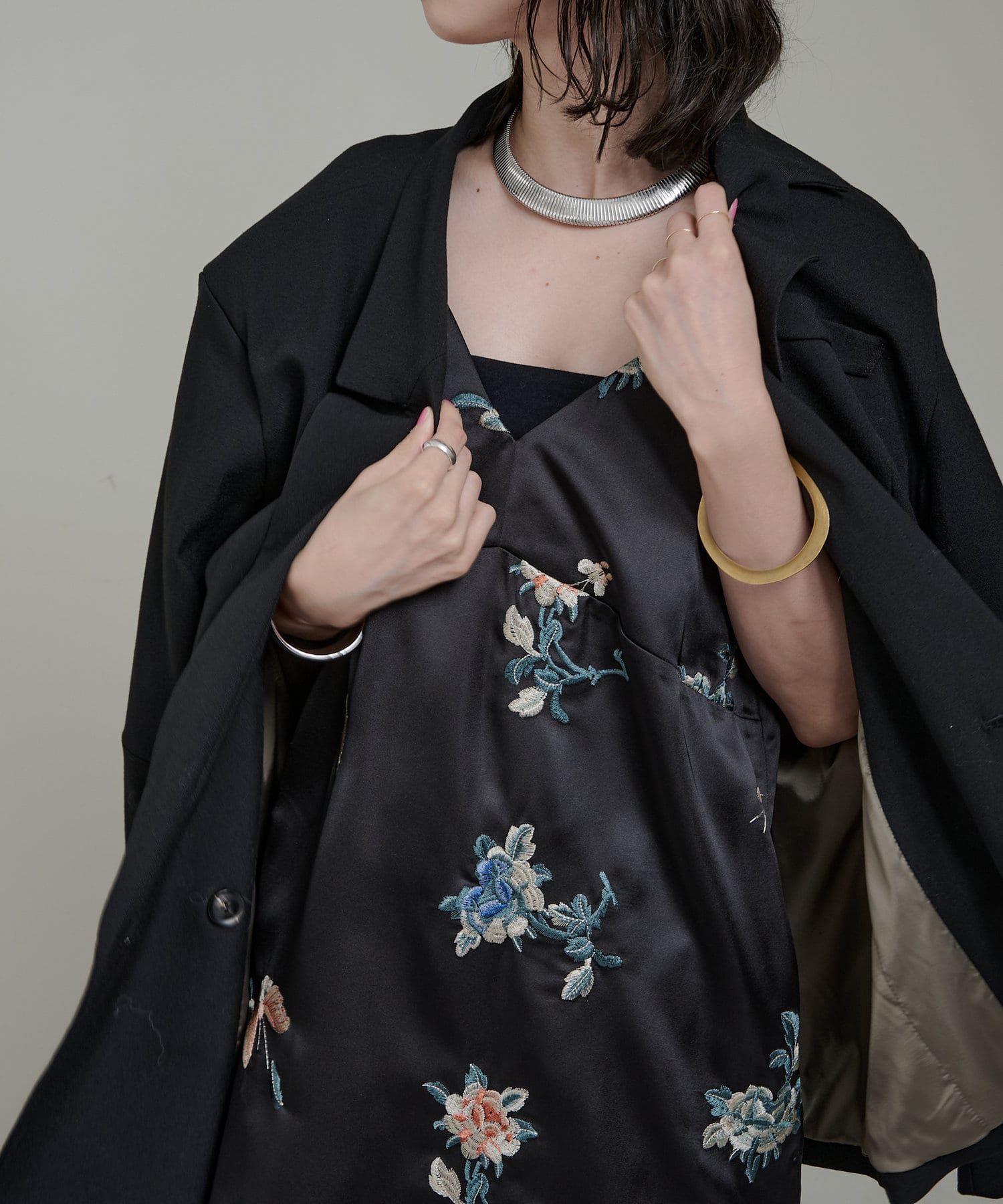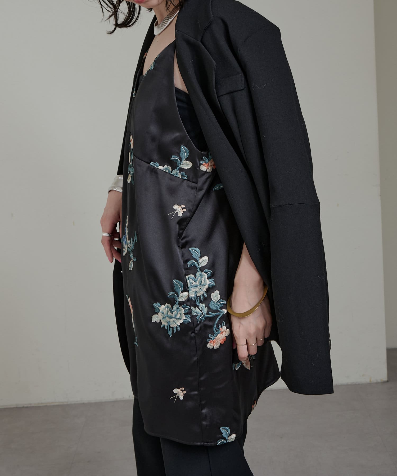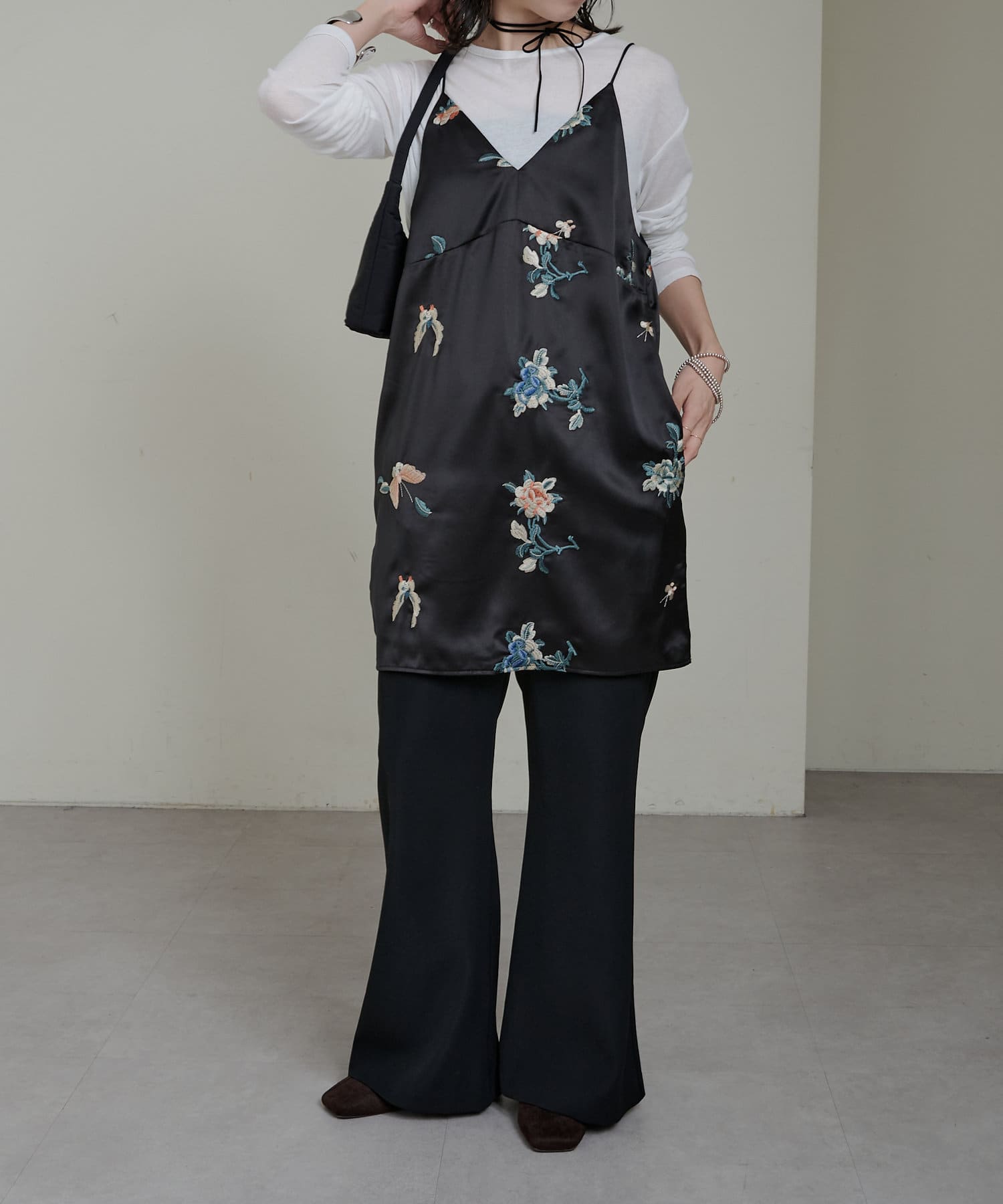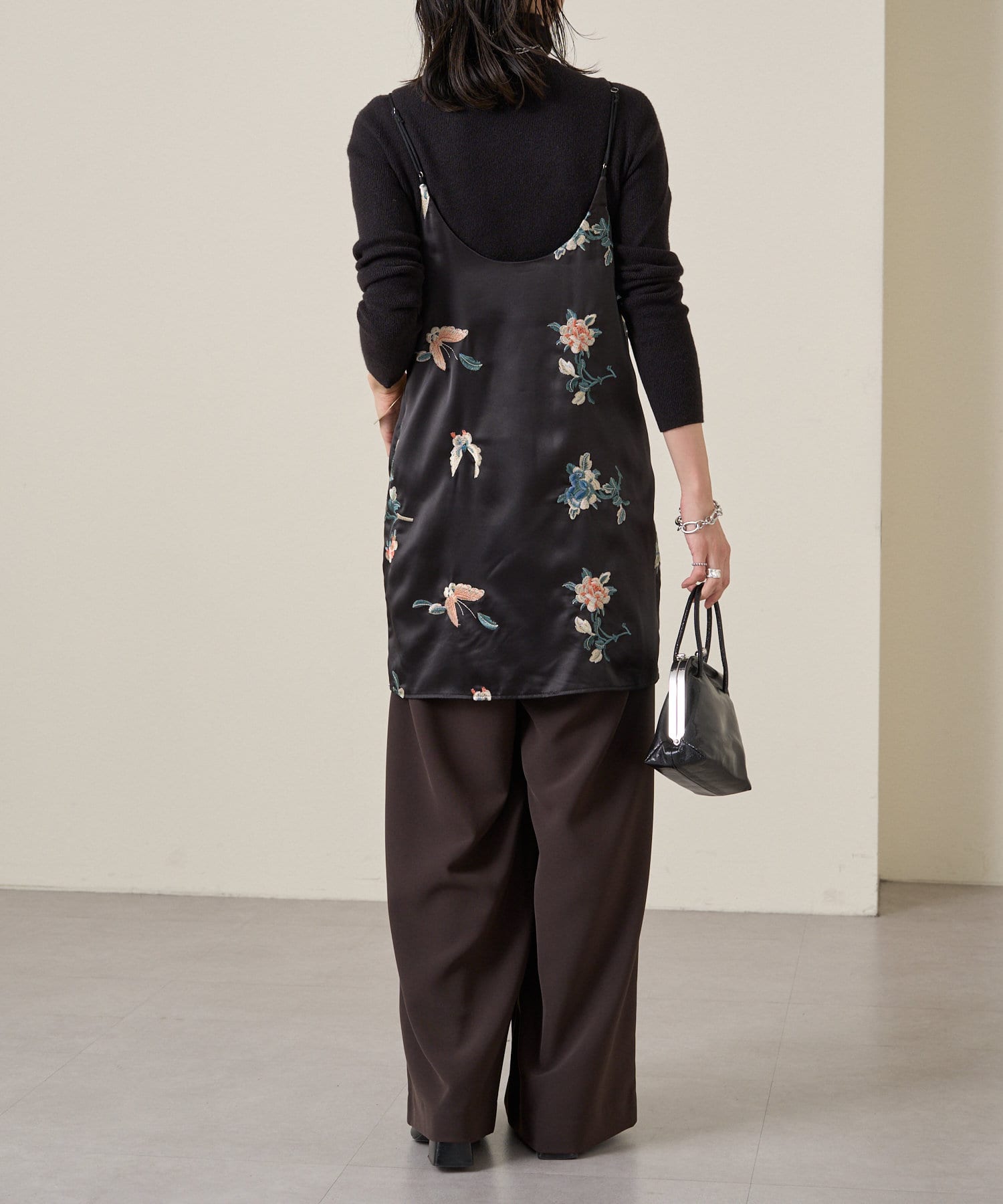 購入場所:パルクローゼットブラックのサテン生地に大人っぽい刺繍が素敵でした。今まで持ってない感じの服で、何より秋冬ムードを満喫できます。