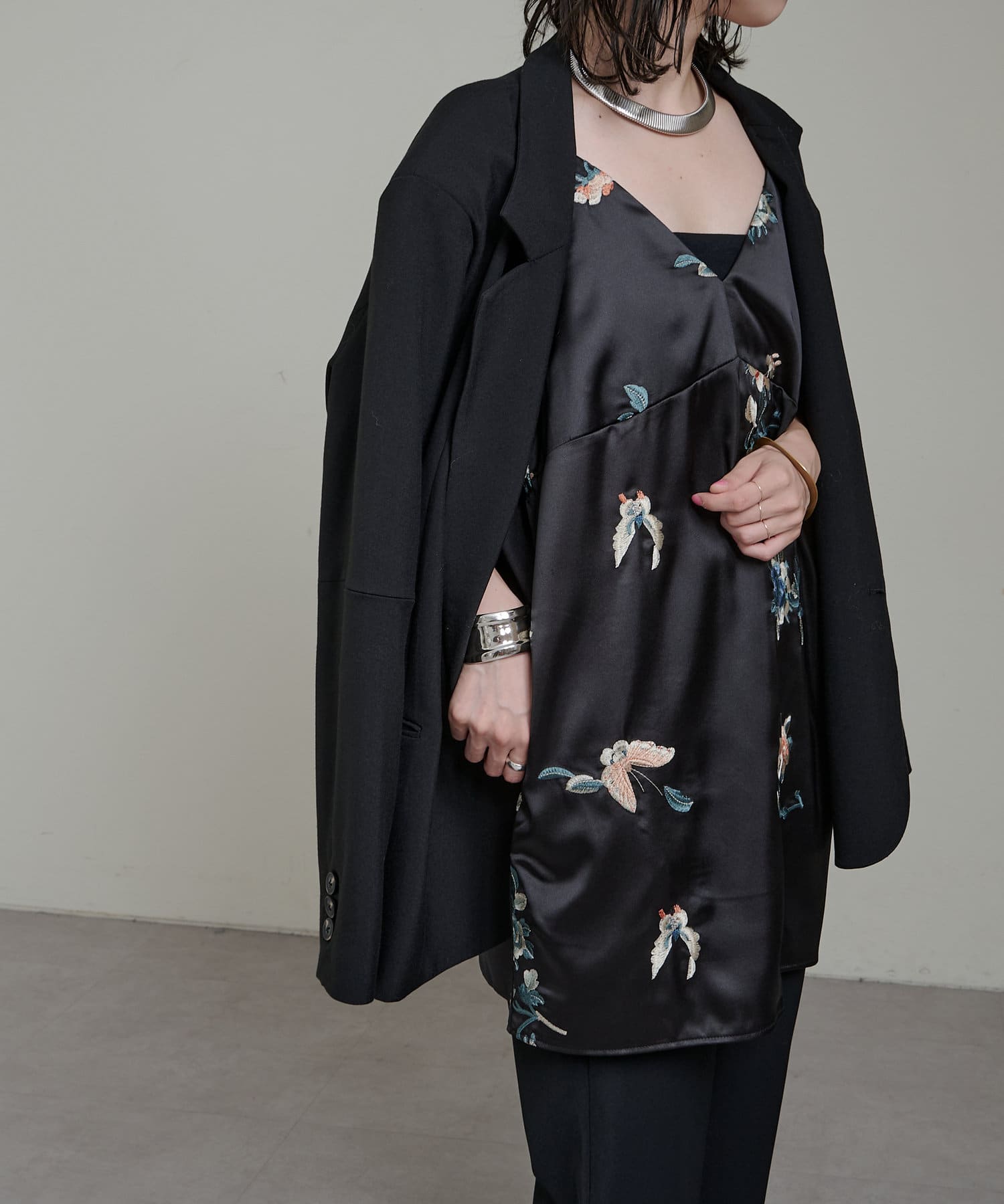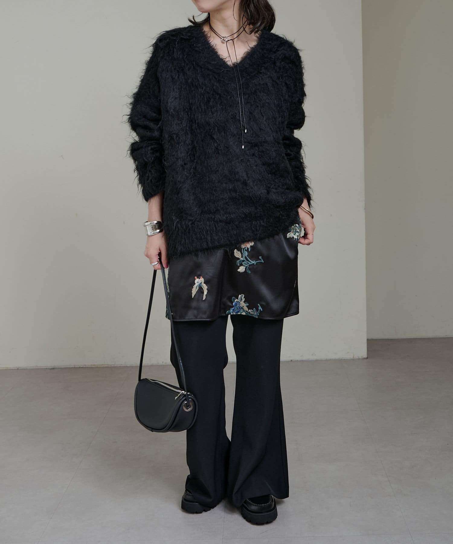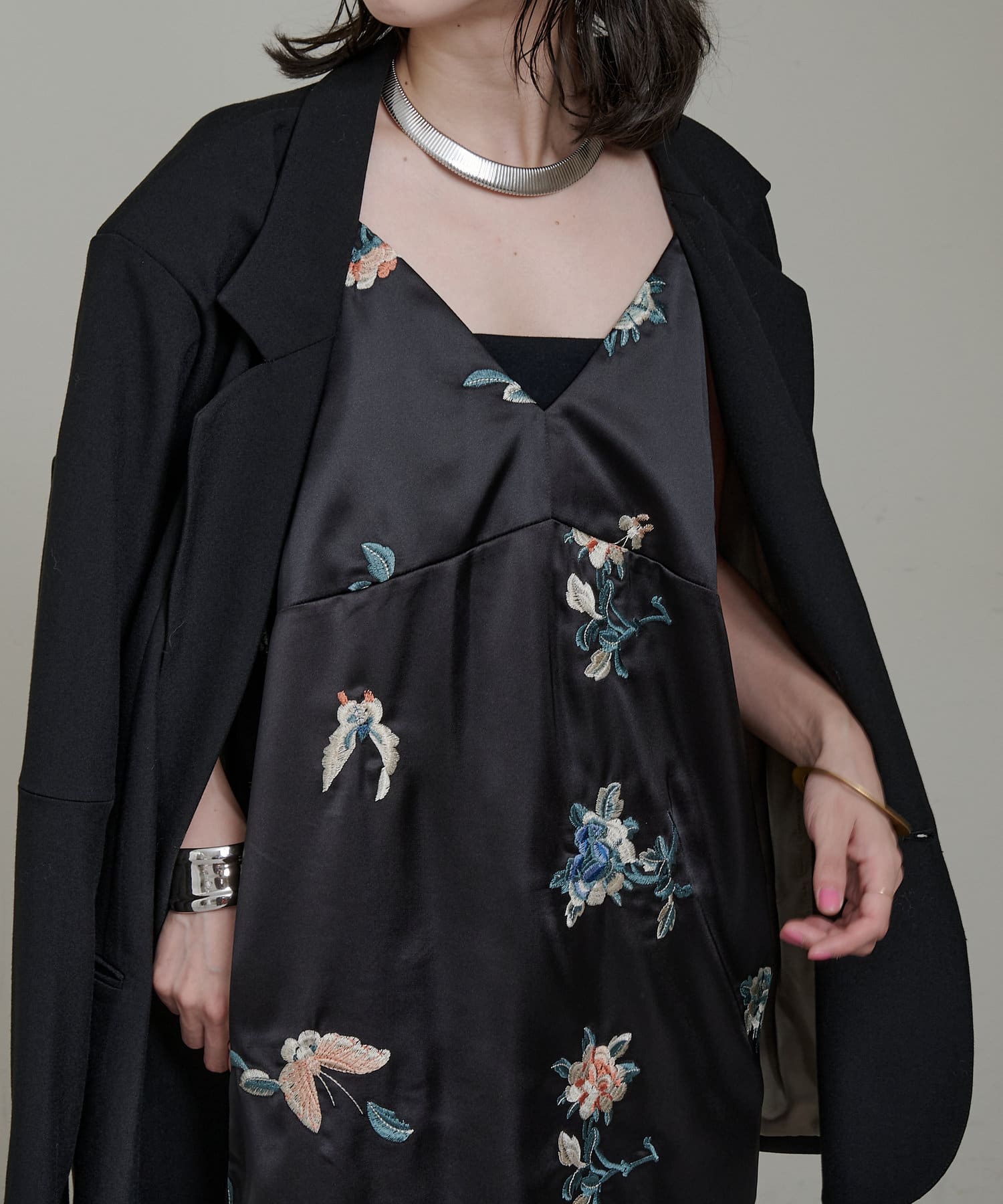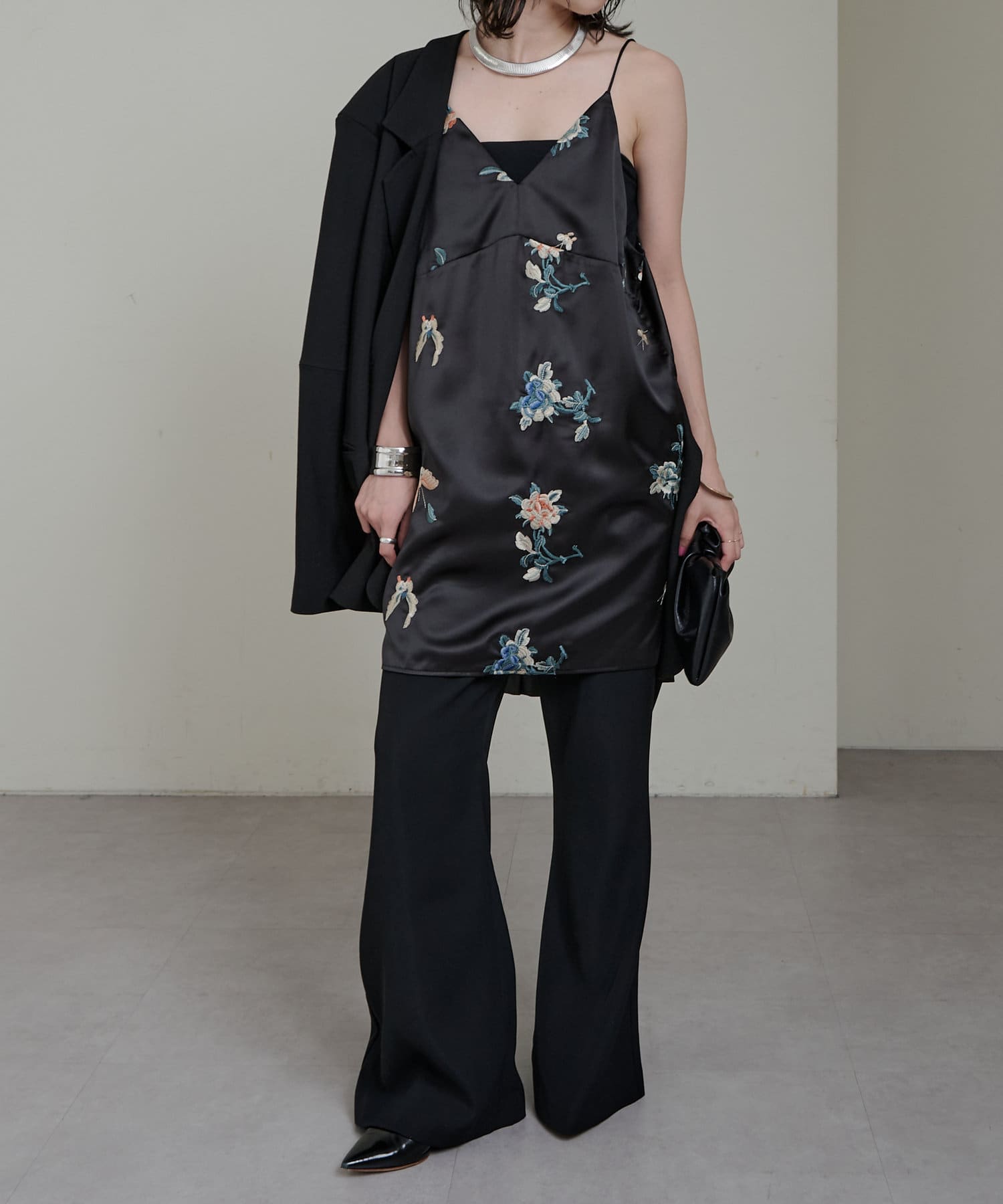 購入場所:パルクローゼットブラックのサテン生地に大人っぽい刺繍が素敵でした。今まで持ってない感じの服で、何より秋冬ムードを満喫できます。