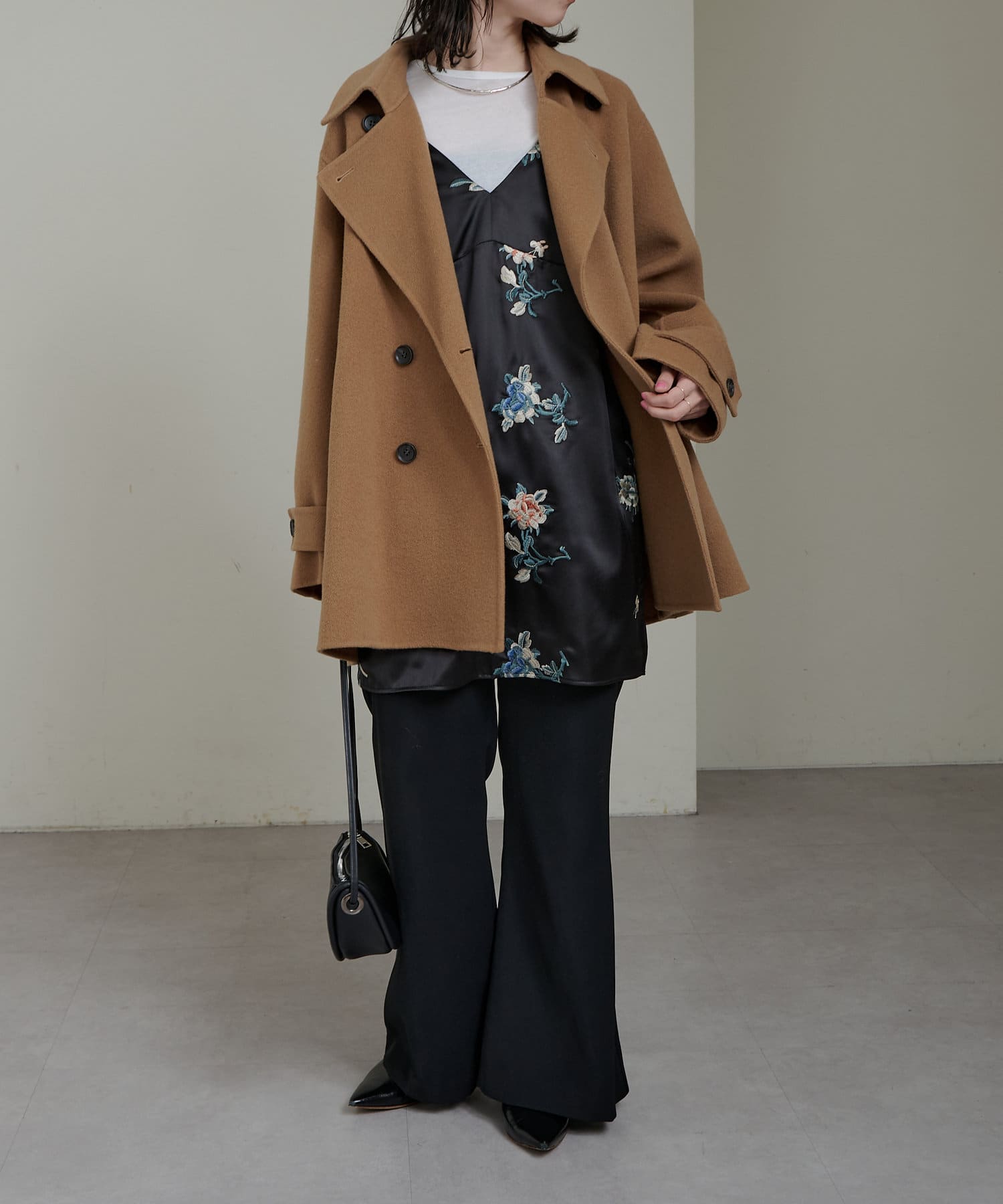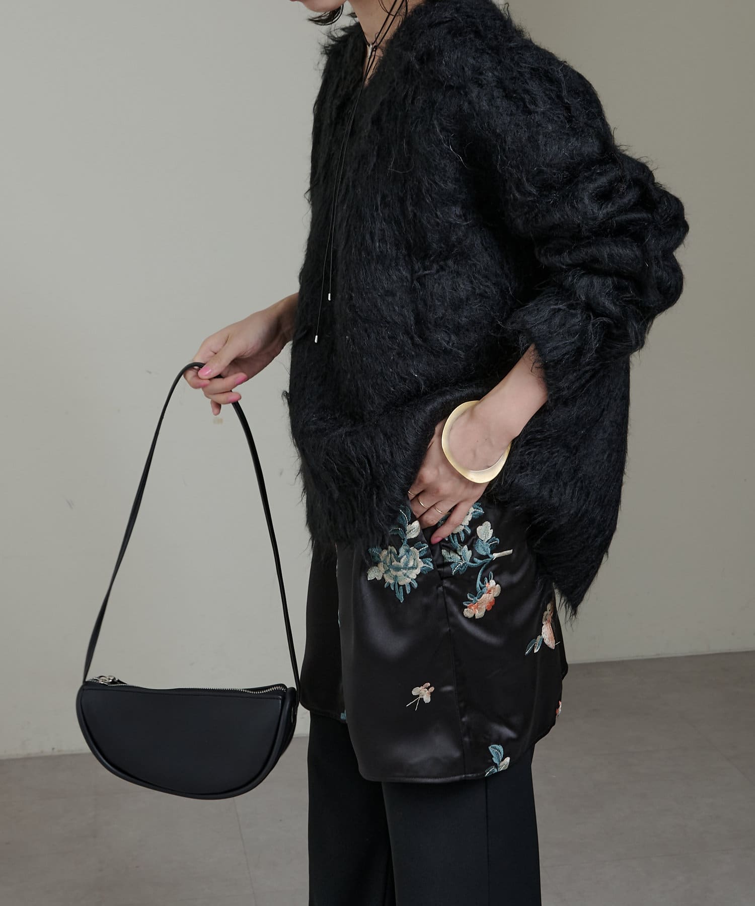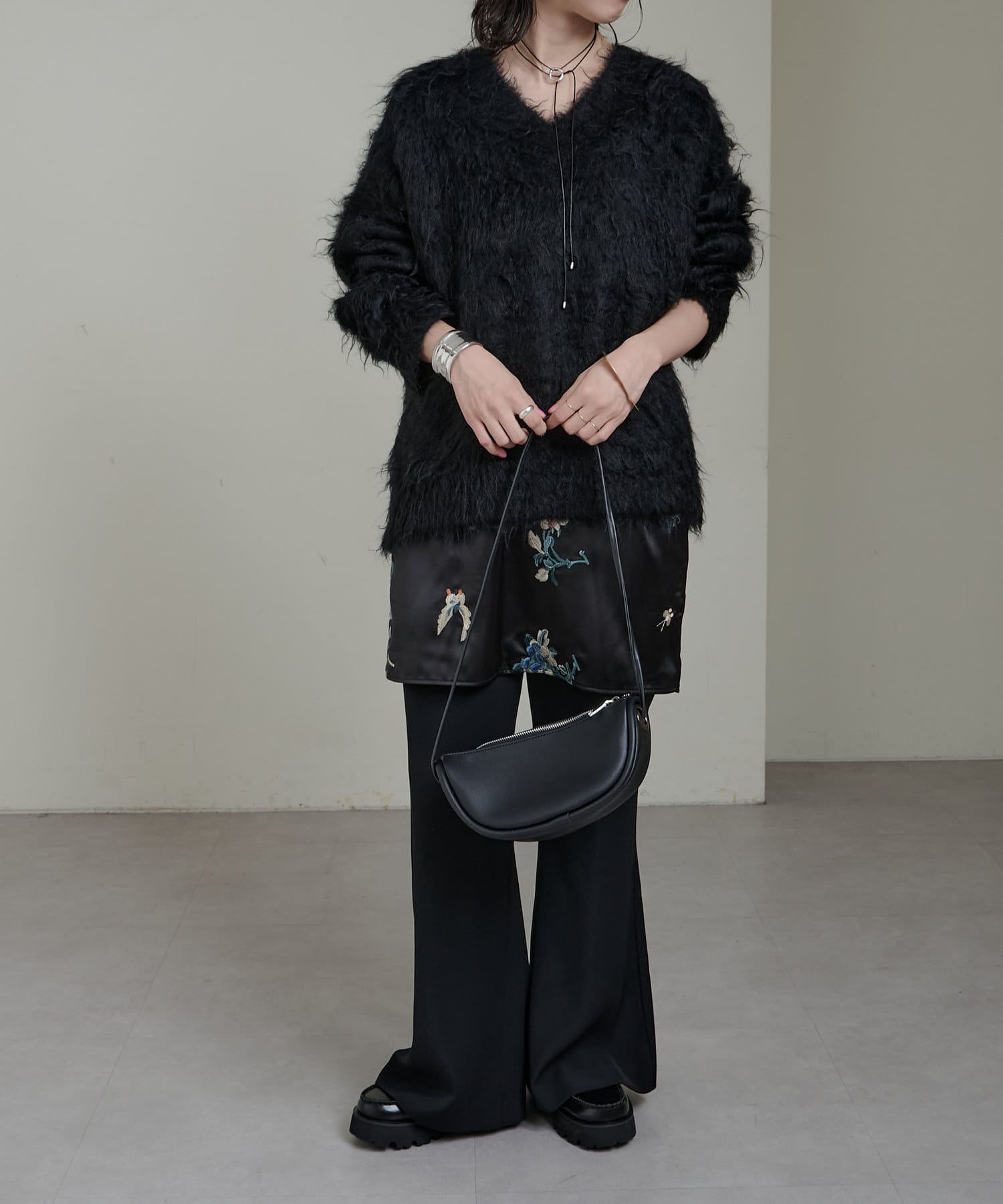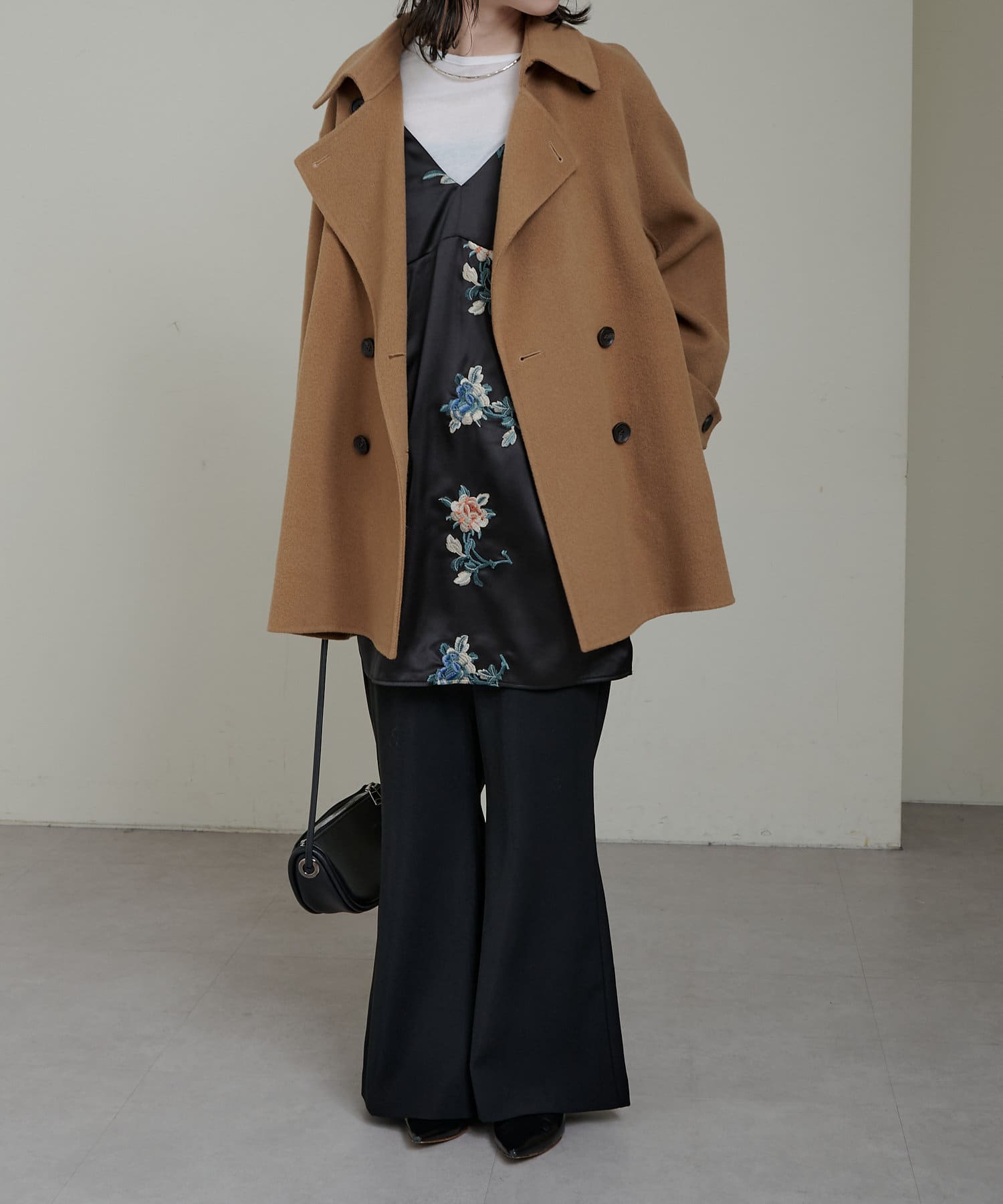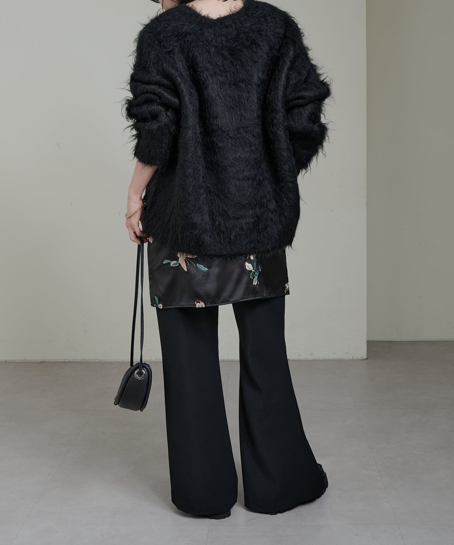 購入場所:パルクローゼットブラックのサテン生地に大人っぽい刺繍が素敵でした。今まで持ってない感じの服で、何より秋冬ムードを満喫できます。
