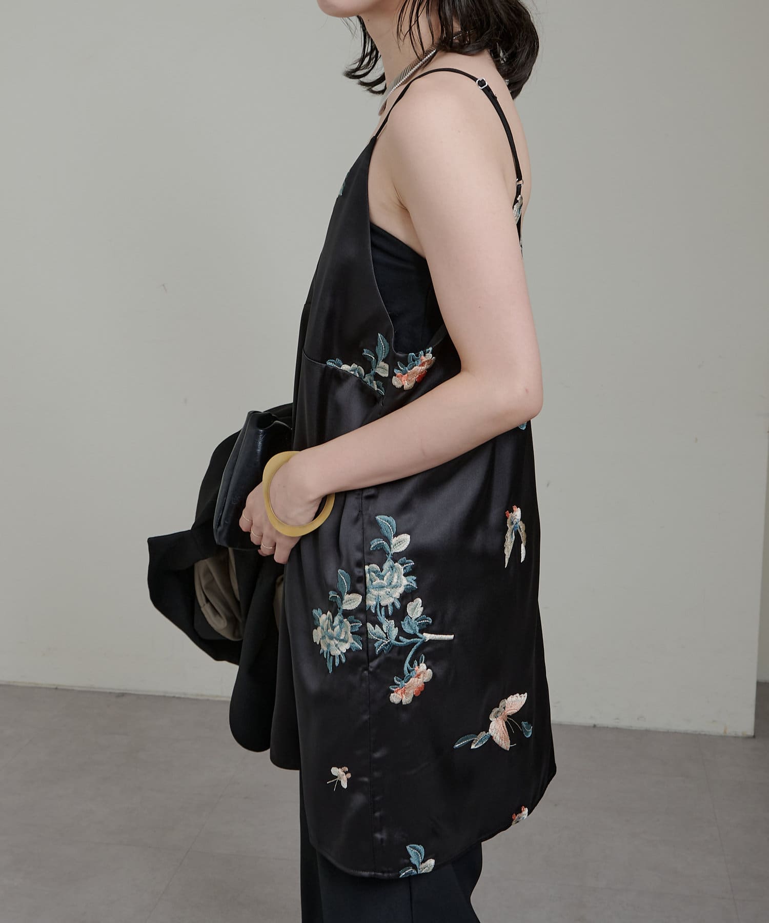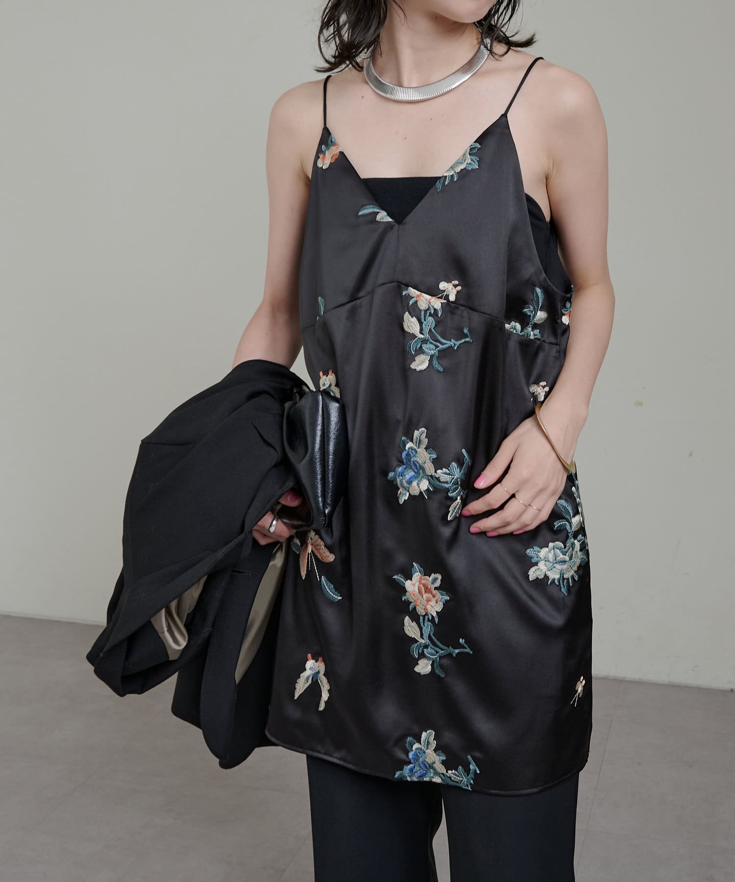 購入場所:パルクローゼット花柄の刺繍がオシャレ見えします!肩紐で調節が出来るので低身長でも着こなせました。色々着回し出来るのも良い!