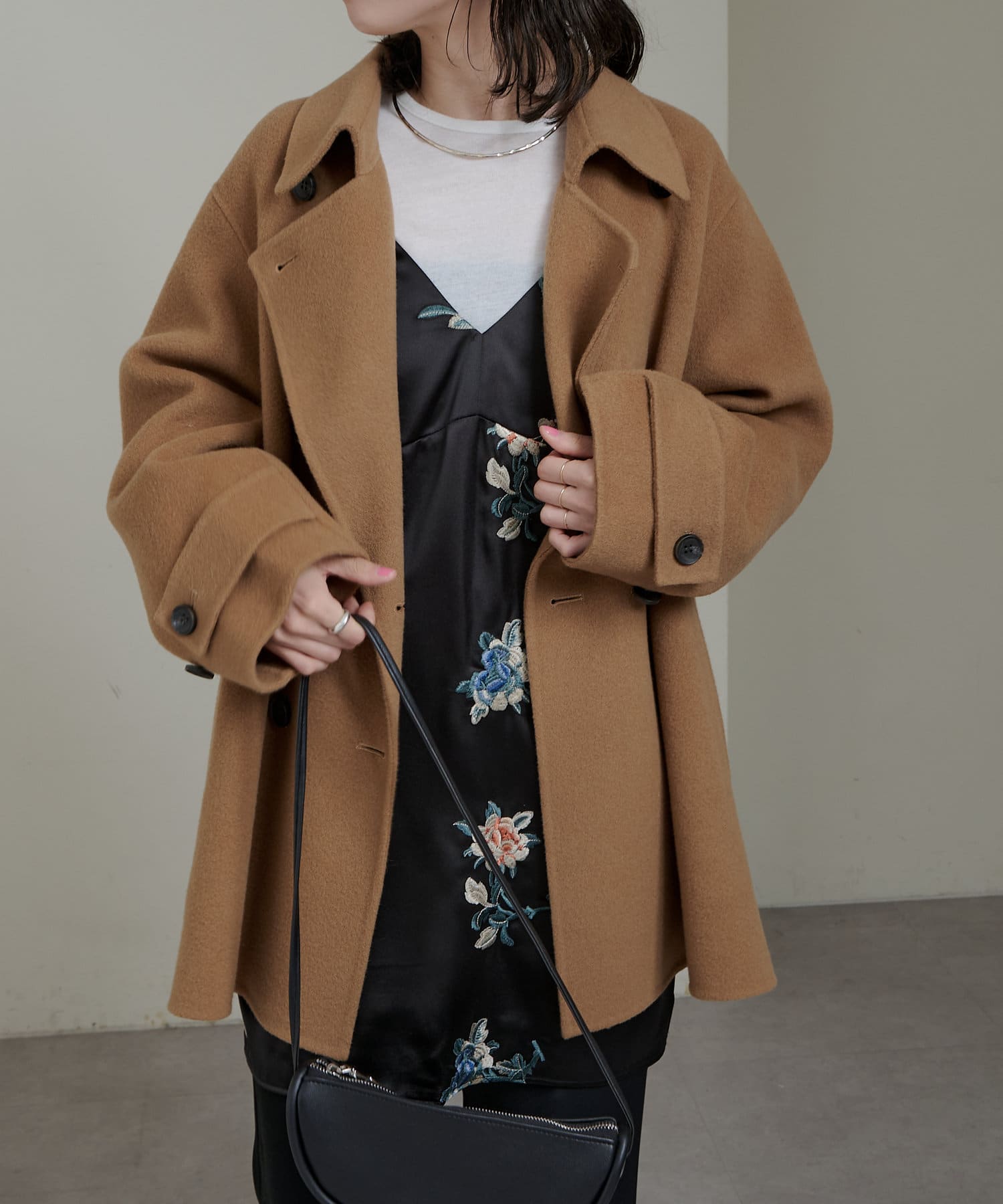 ・広がりにくくタイト過ぎないシルエットで大人らしいレイヤードスタイルが完成。