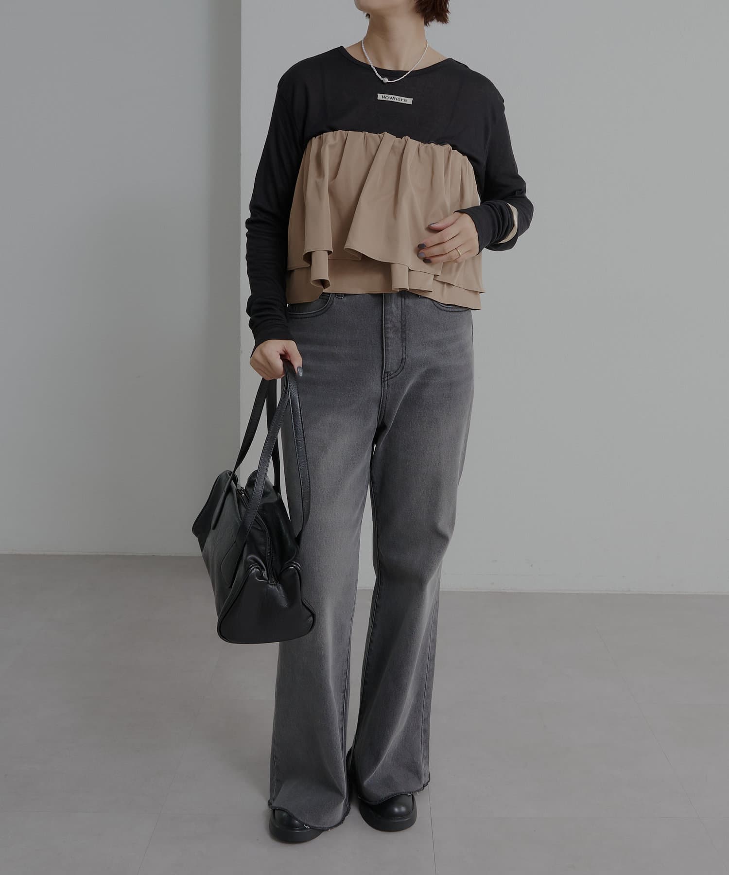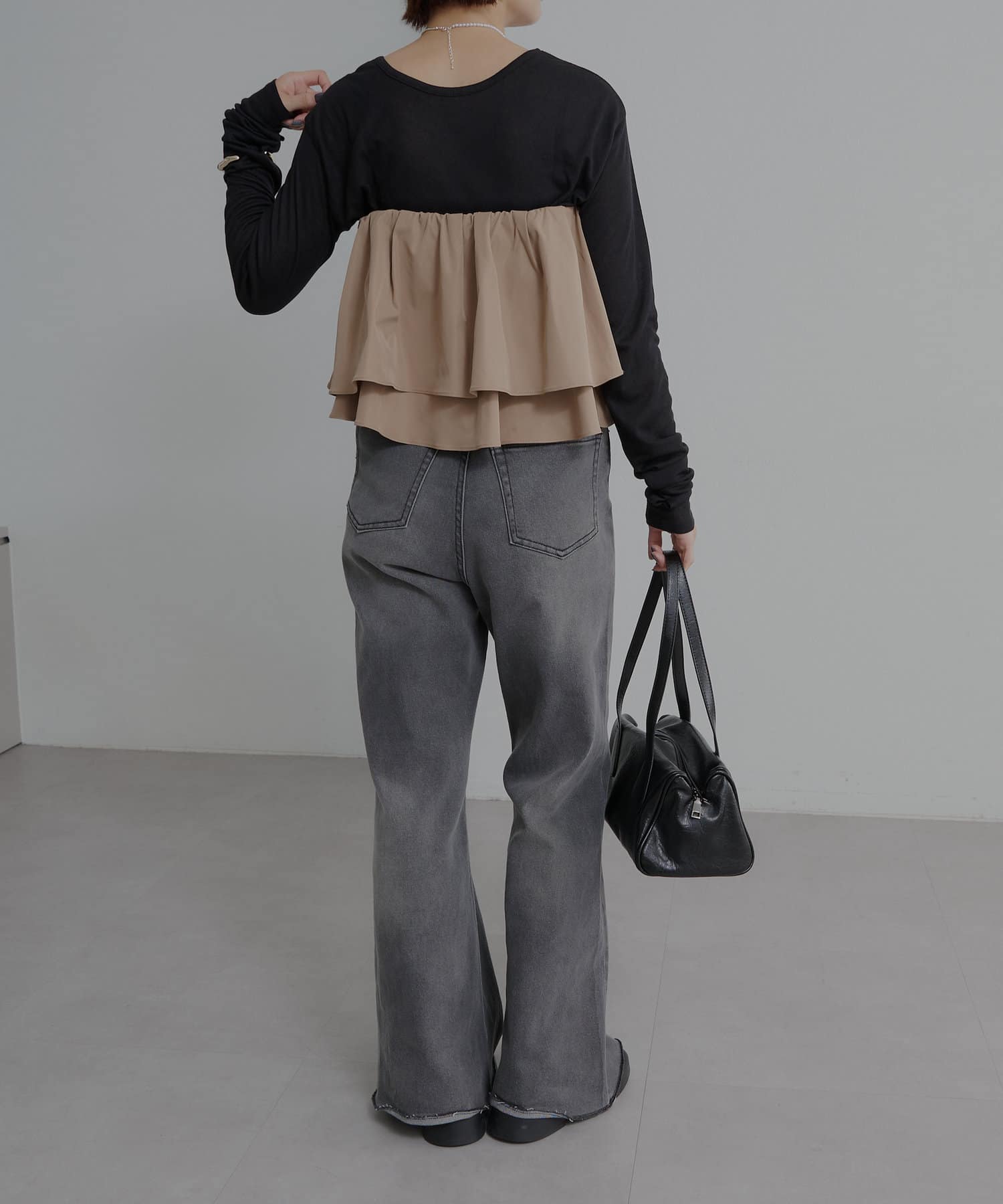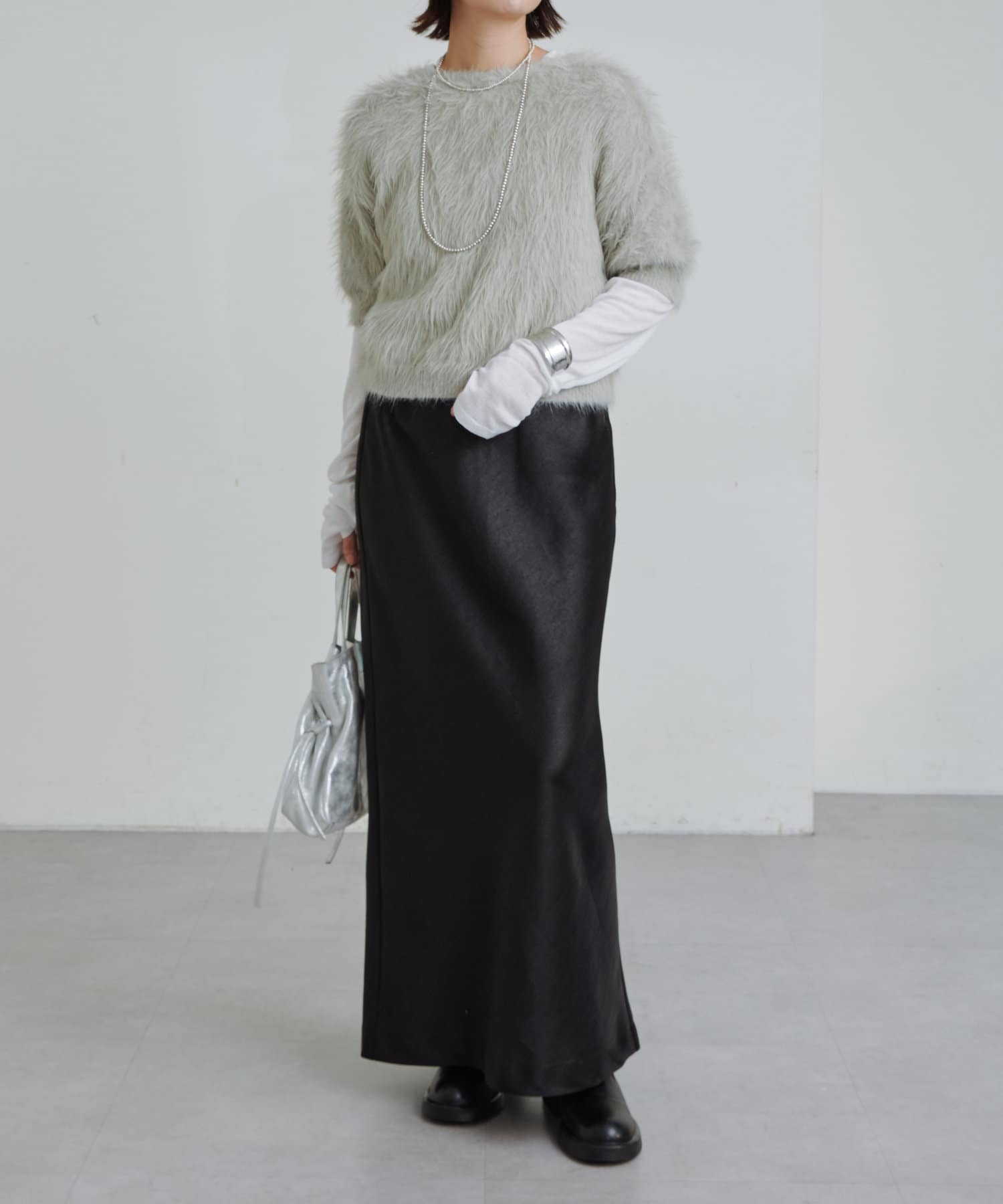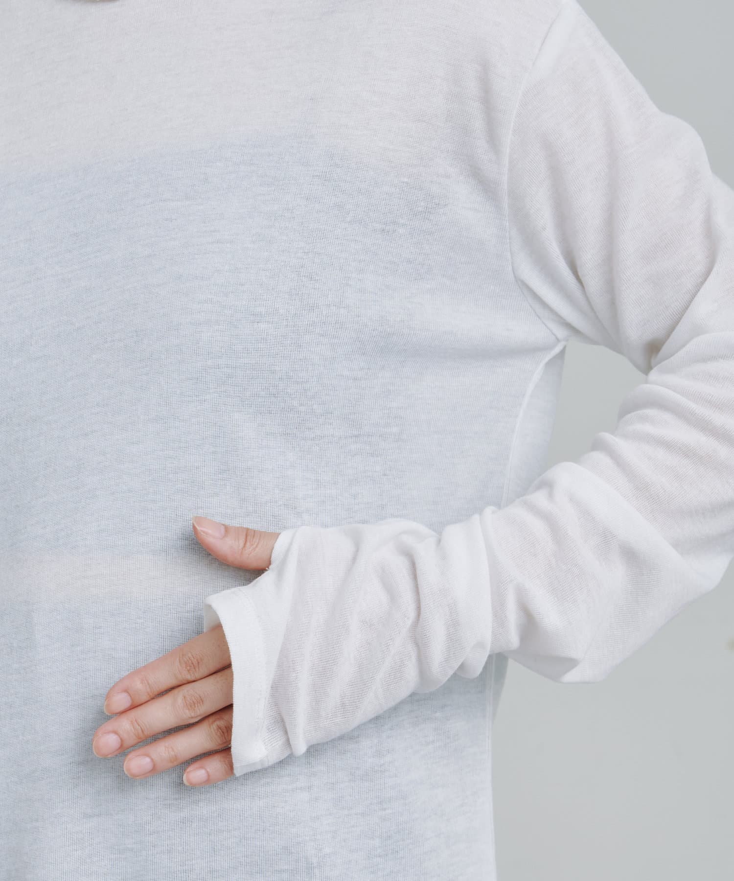 ・ニュアンスのある長めの袖丈で一枚で着ても決まるデザイン。