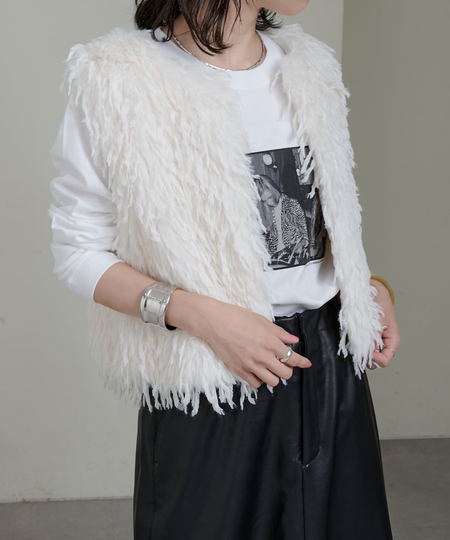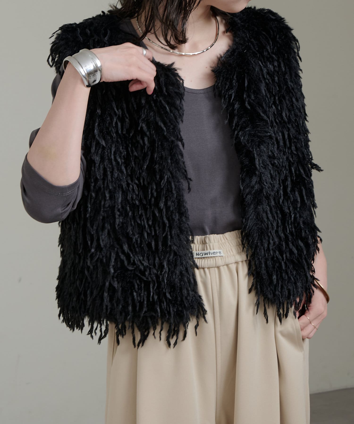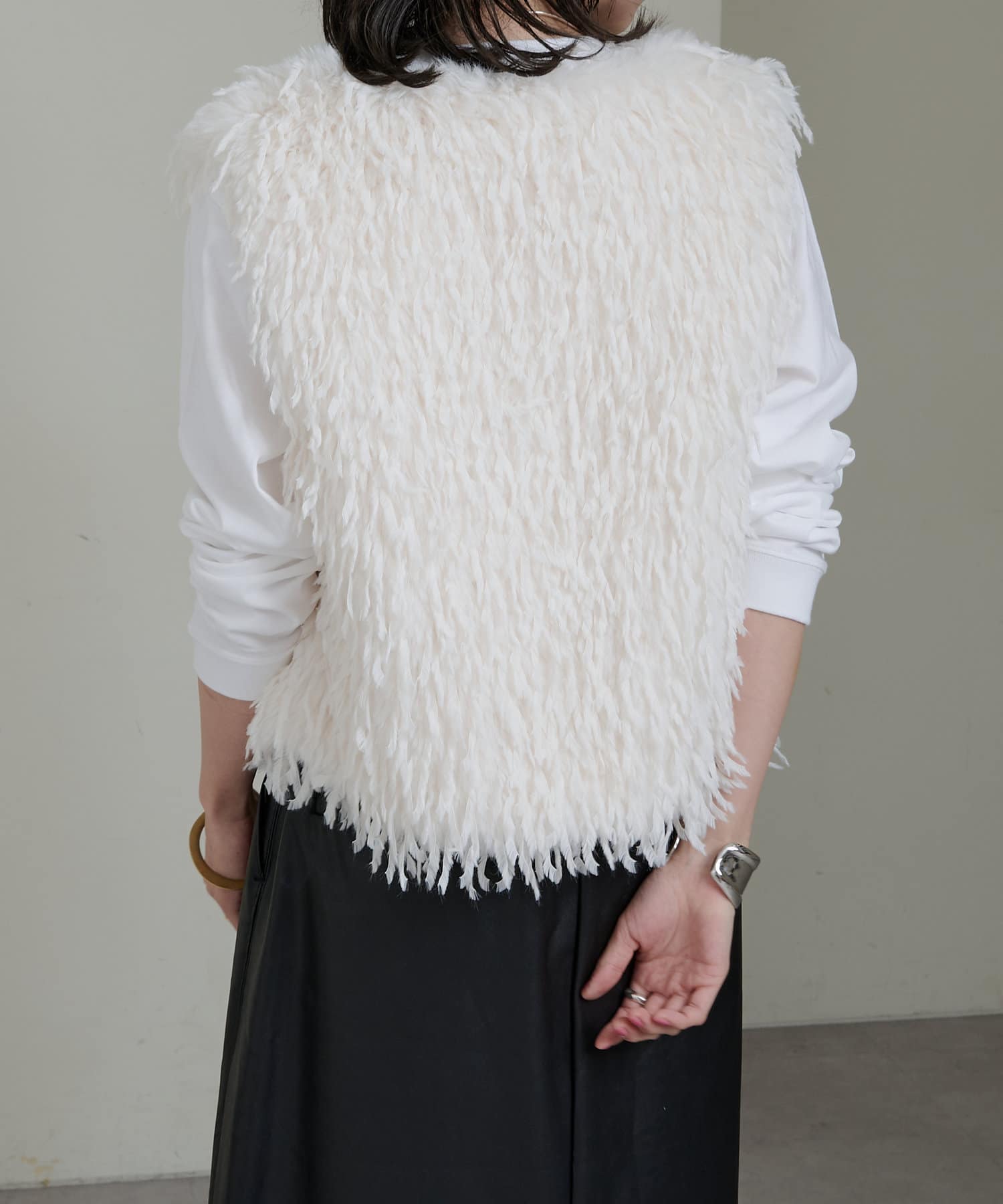 柔らかなファーシャギー素材が目を惹くベストが新登場!