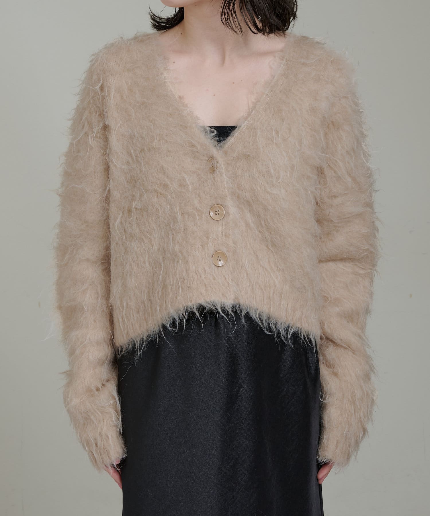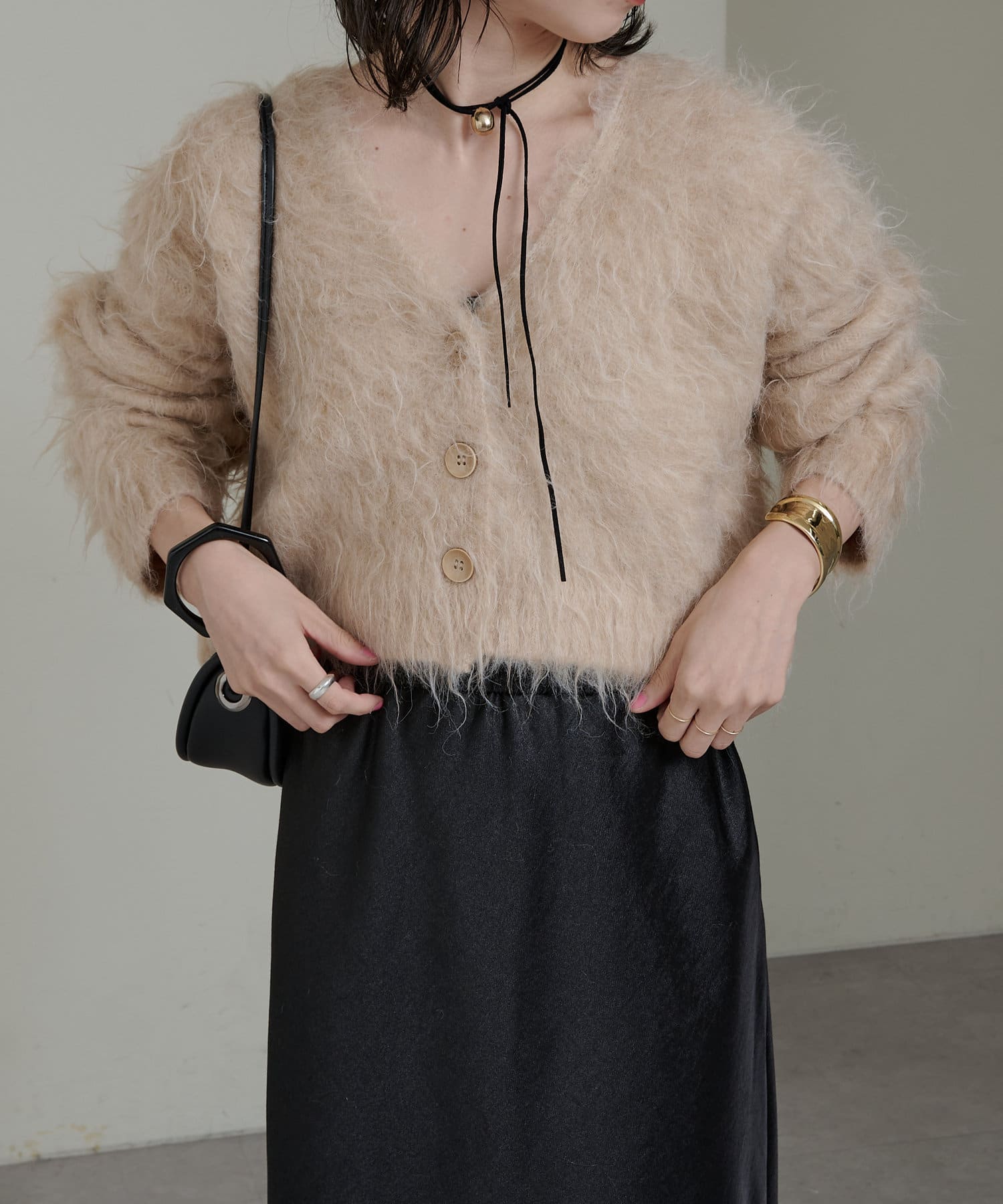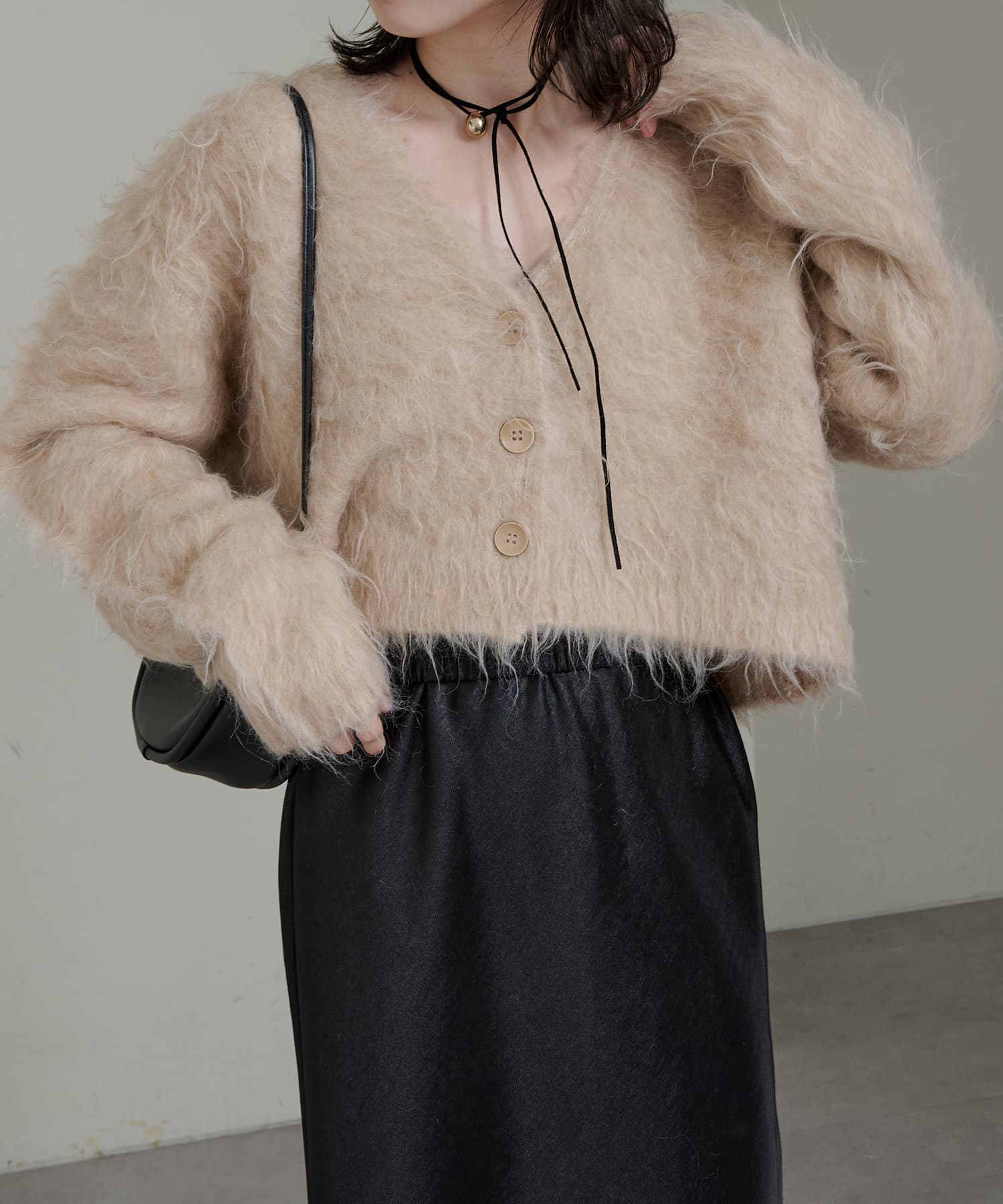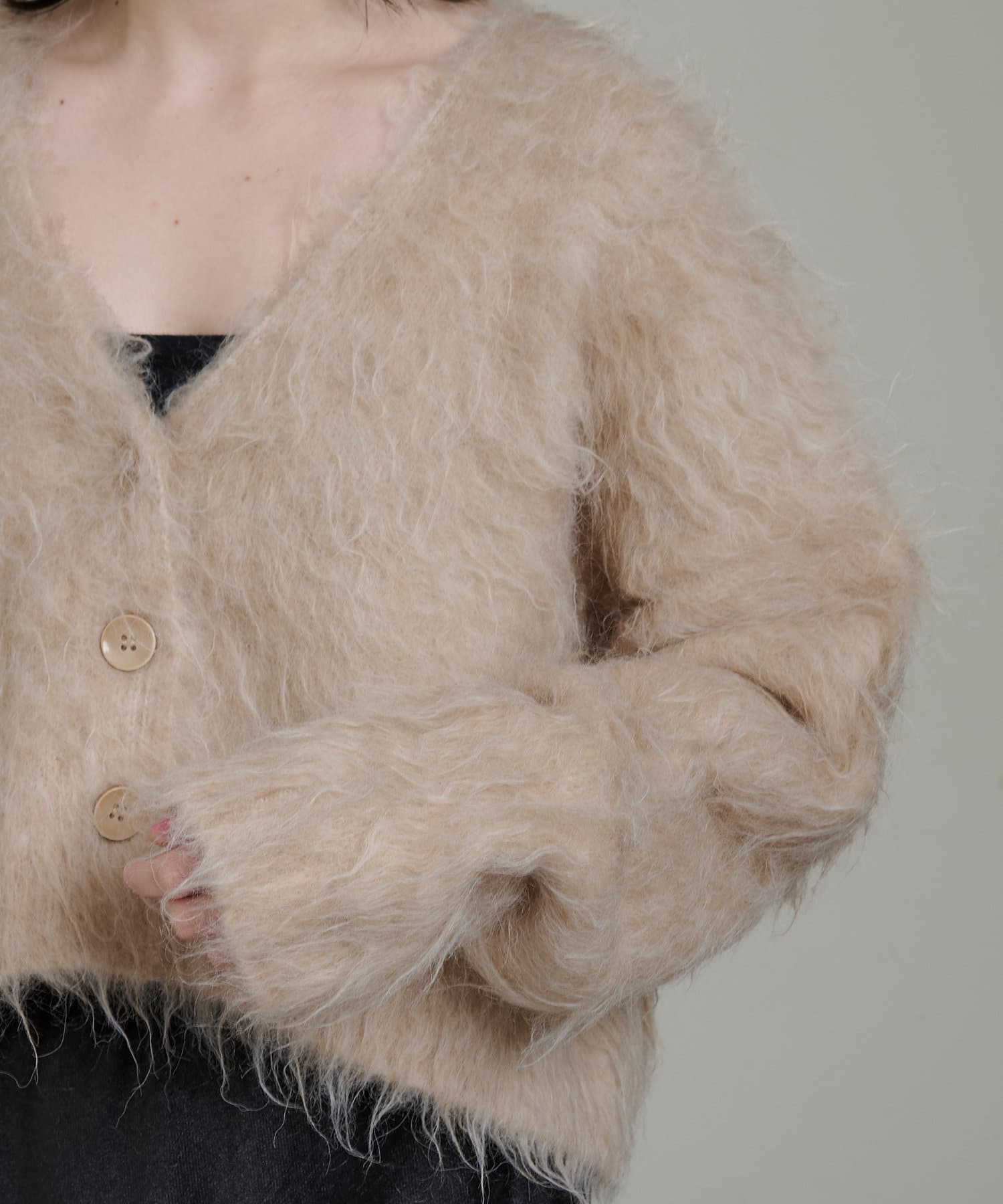 【スタイルアップ効果◎】アルパカモヘヤシャギーショートカーディガン