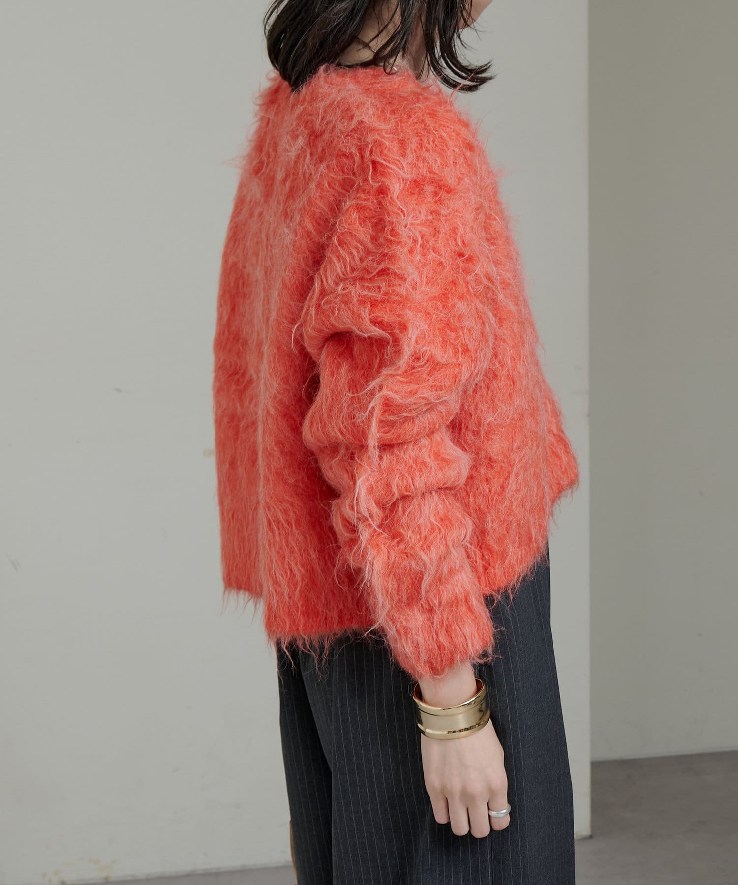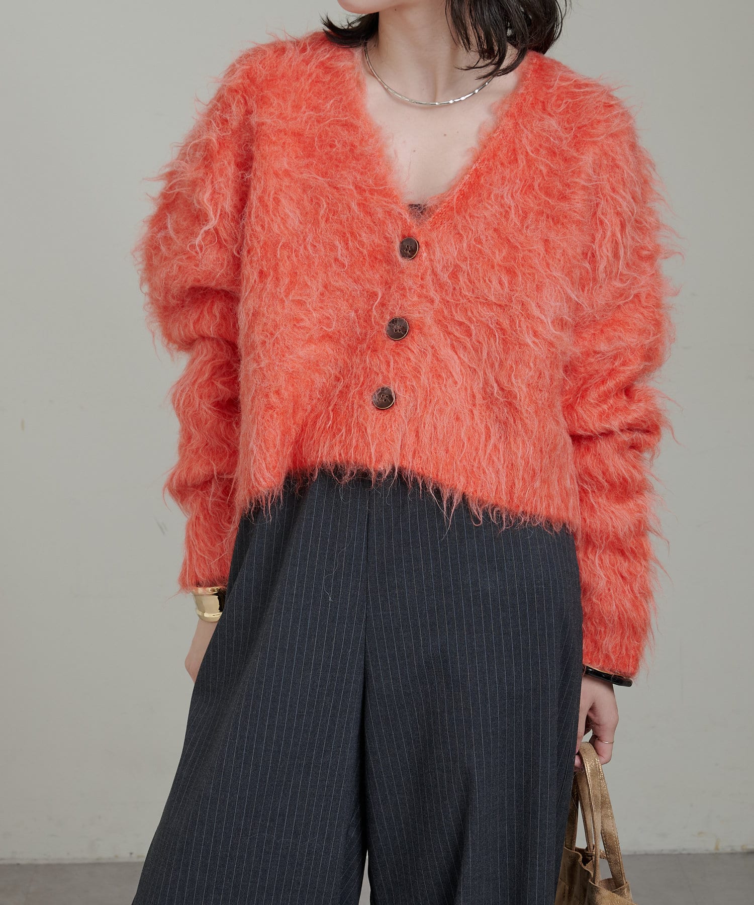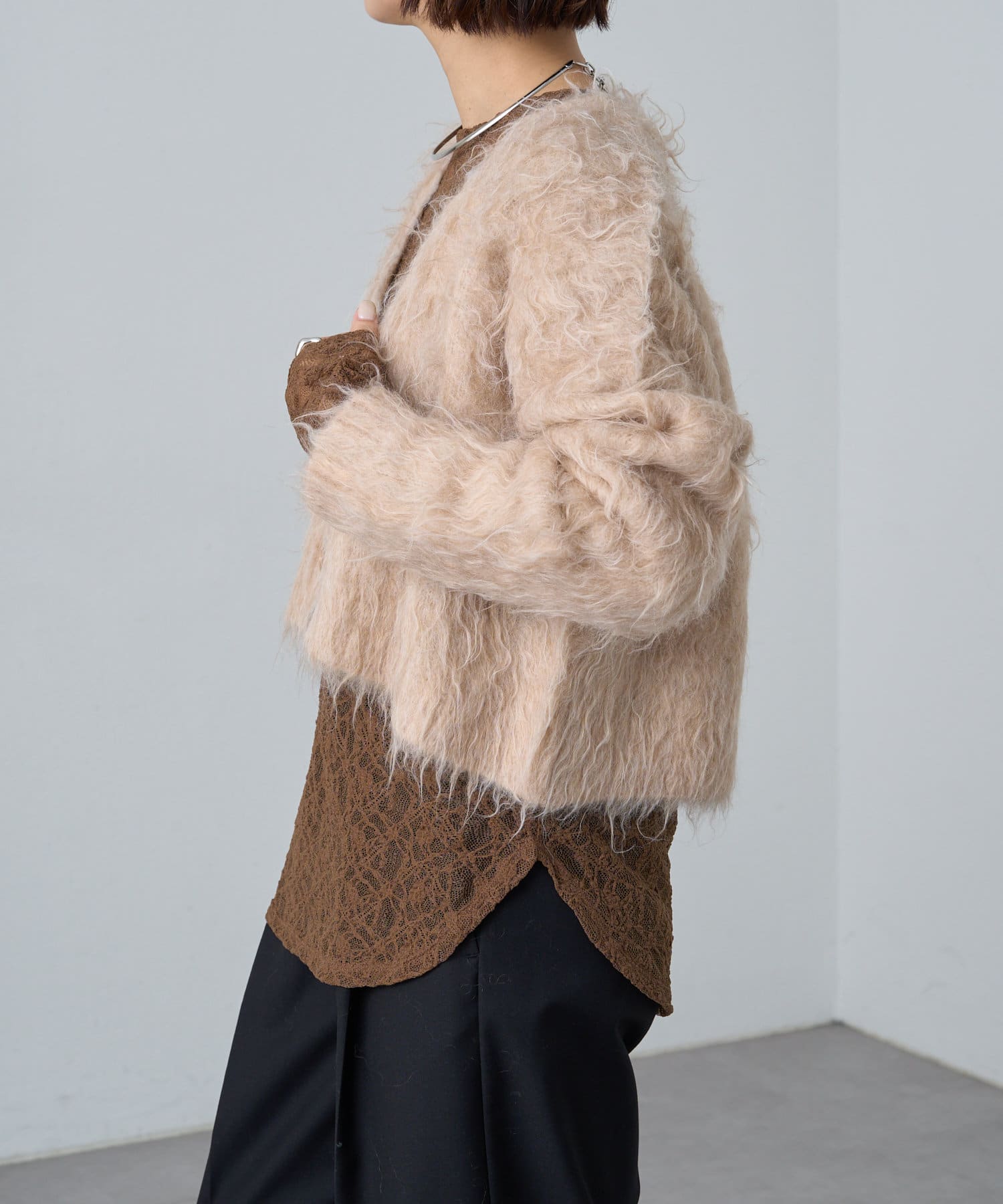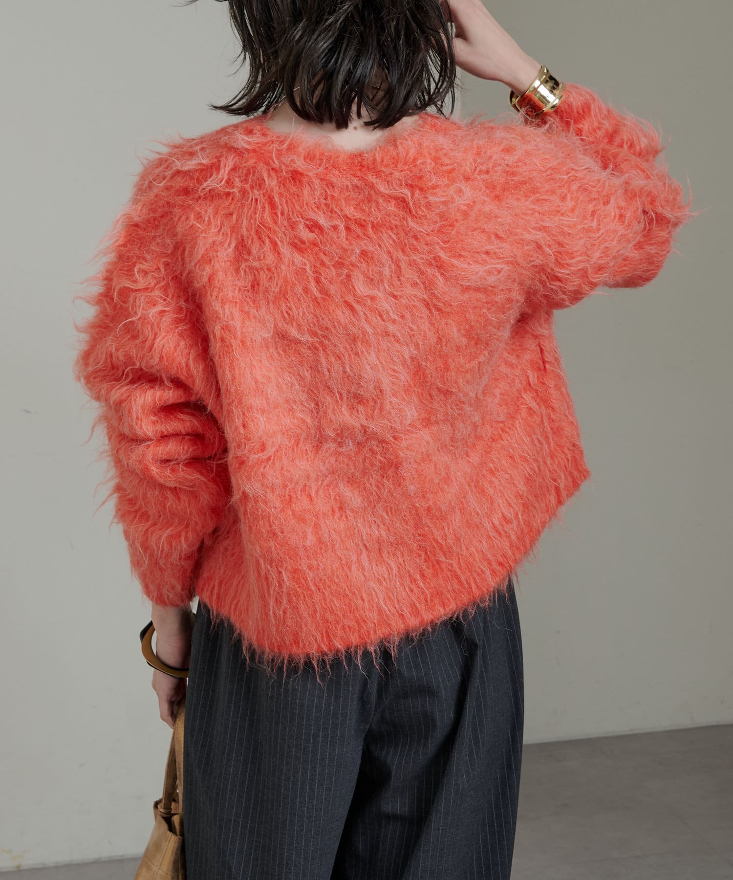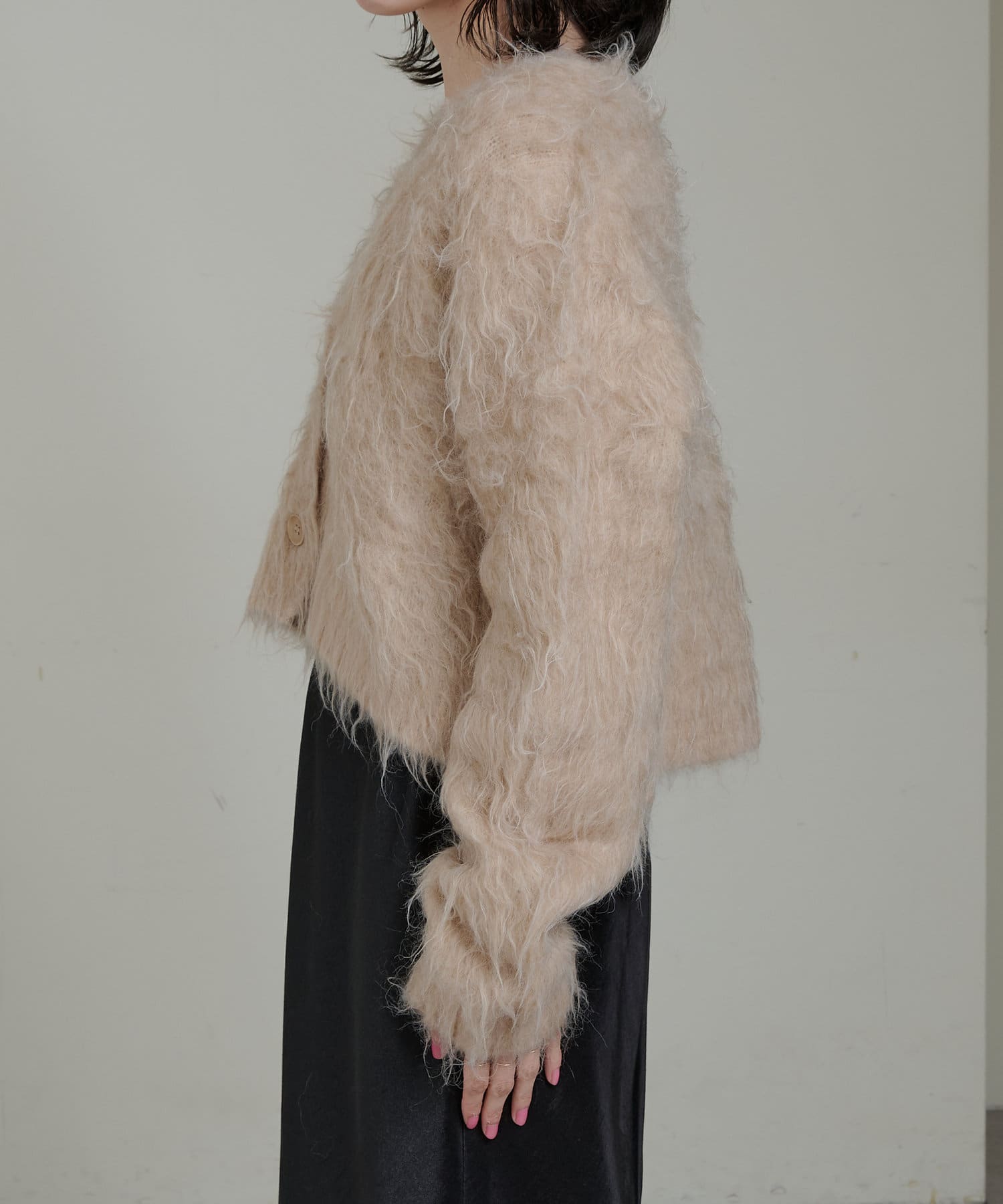 【スタイルアップ効果◎】アルパカモヘヤシャギーショートカーディガン